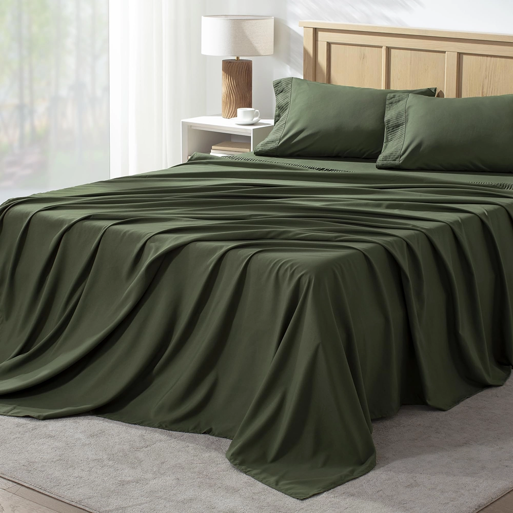 Andency King Size Sheets Set 4 Pieces, Dark Olive Green Super Soft Sheets for King Size Bed, Microfiber King Sheet, Deep Pocket Up to 16″, Hotel Luxury Breathable & Cooling Bed Sheet Set(Black)
