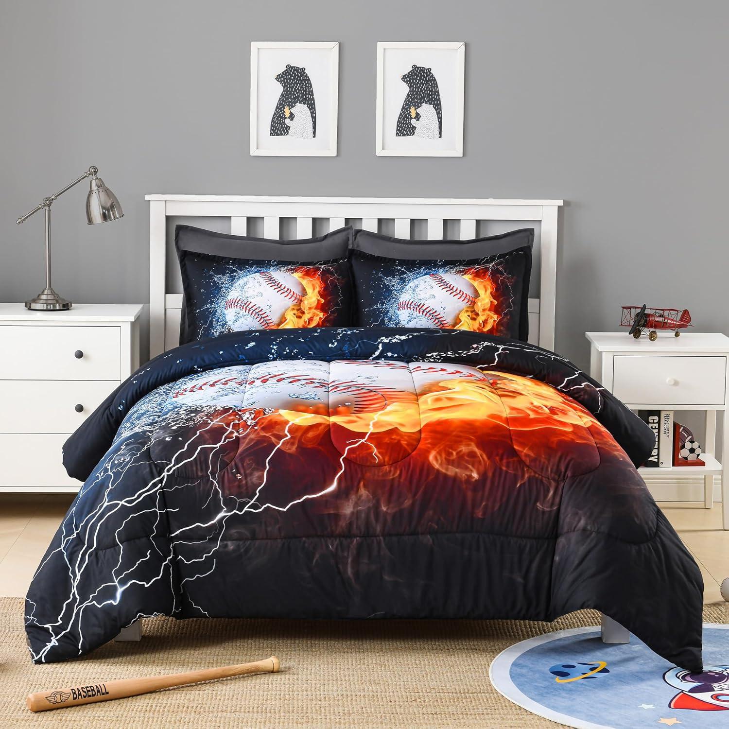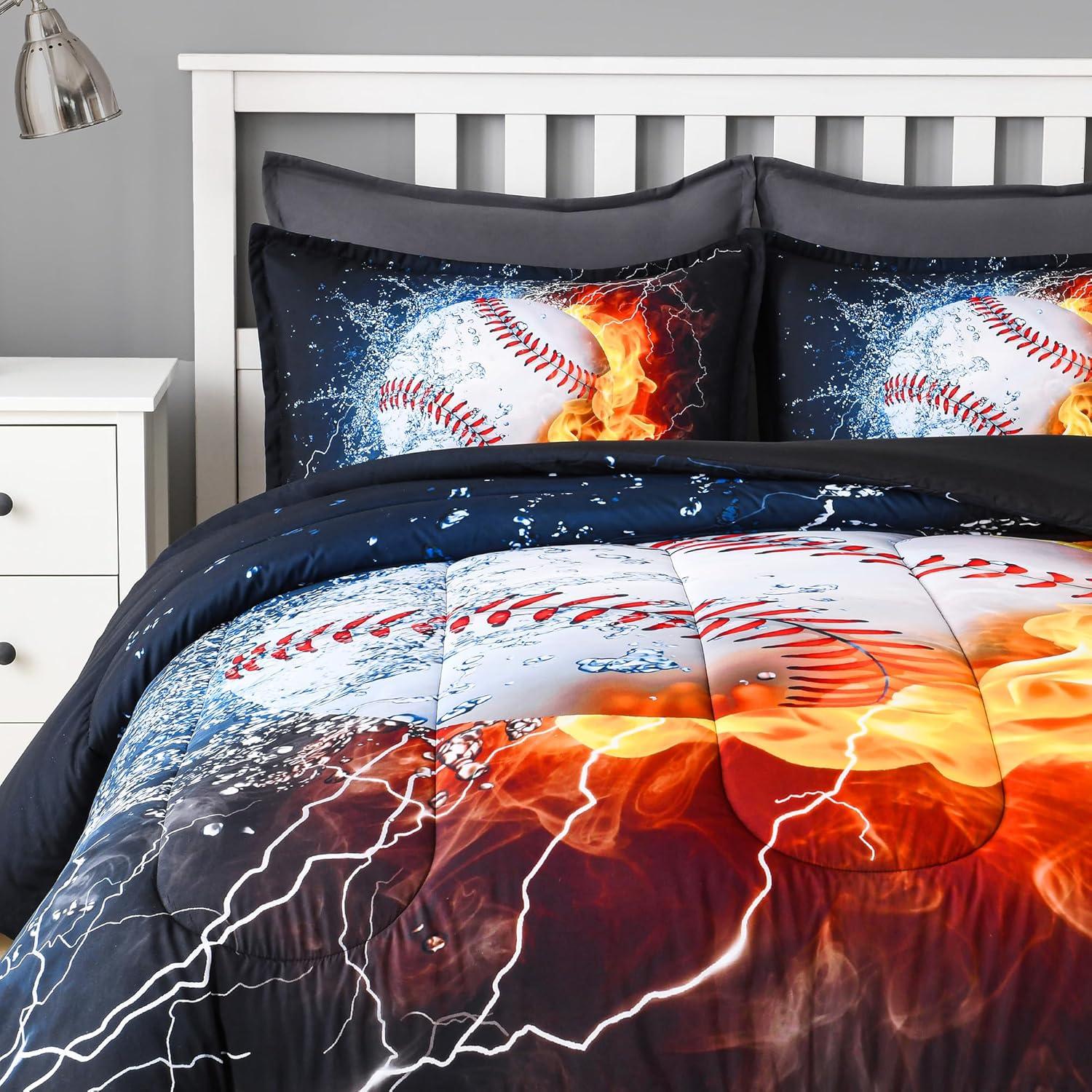 Andency 3D Basketball Comforter Twin(66x90 Inch), 2 Pieces(1 Basketball Comforter, 1 Pillowcase) Sport Microfiber Bedding Set for Kids Boys Teens(3d Baseball)