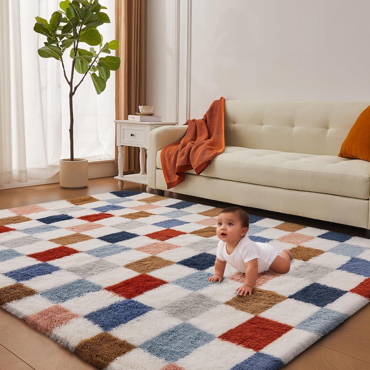 Perfect Home Decor: The soft checkered rug can enhance the ambience of a space and introduce a vibrant hue to the room. It is suitable for bedrooms, living rooms, dormitory, cloakroom and more