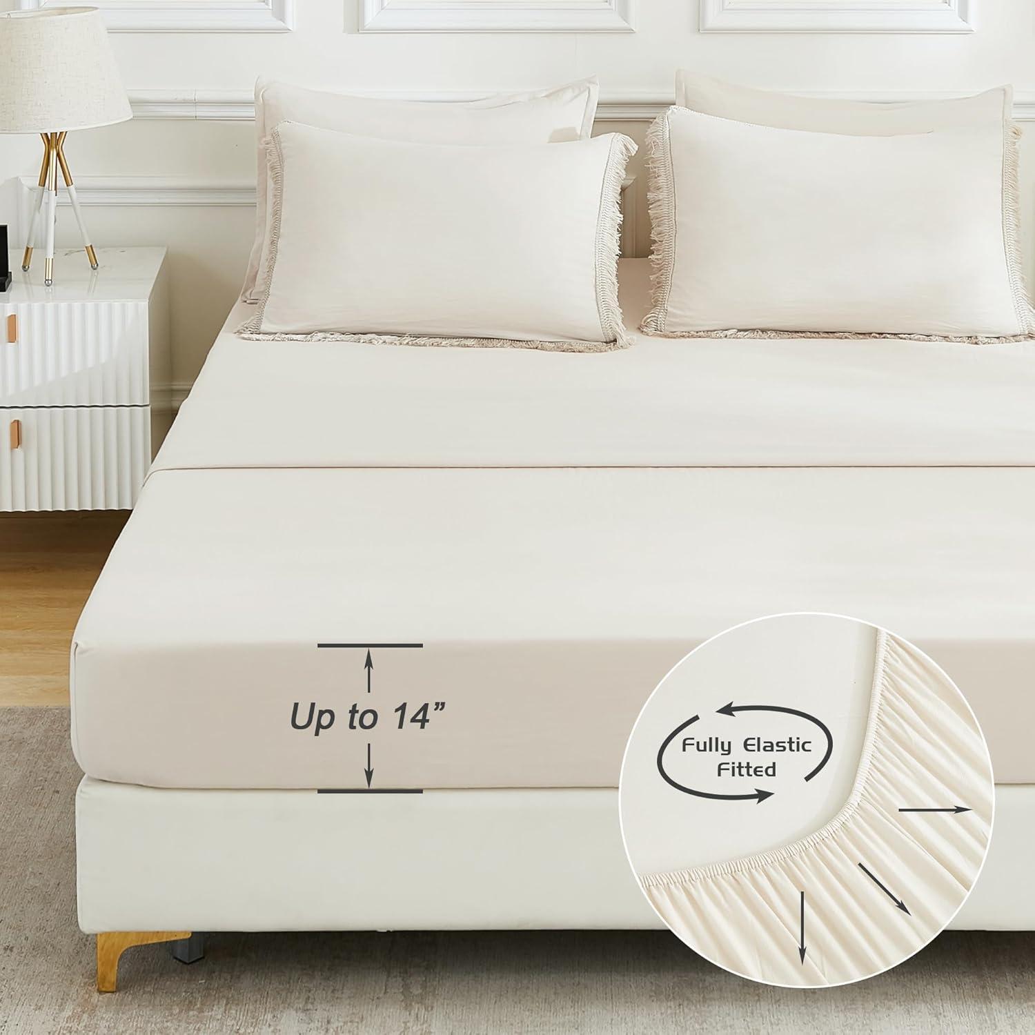 Andency Beige California King Size Comforter Set with Sheets - 7 Pieces Boho Tassel Bed in a Bag Soft Lightweight Bedding Sets, Fringe Bed Set with Comforter, Sheets, Pillowcases & Shams(01 - Beige)