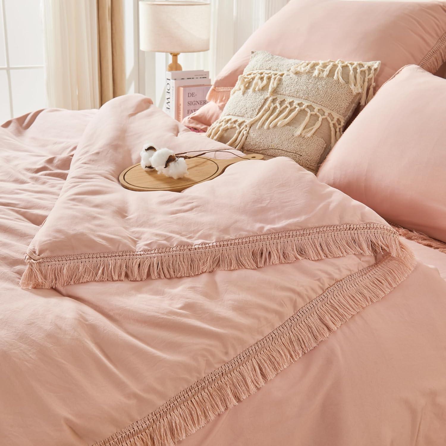 Boho Tassel Style: Andency boho comforter set with tassel edges, which like delicate artwork combines elegance and cuteness perfectly, create simply stylish yet vibrant vibes, bringing a charming and unique attraction to your bedroom. The solid hue of the bedding set conveys a modern minimalist appeal that coordinates with various home decor styles. All gorgeous tassels are meticulously handmade and crafted to ensure a graceful appearance and exceptional quality