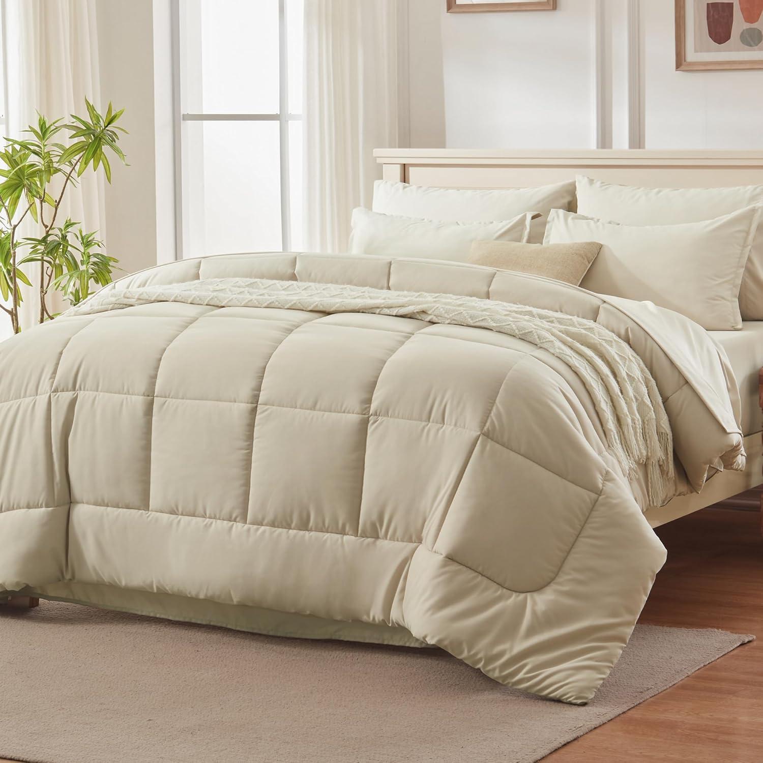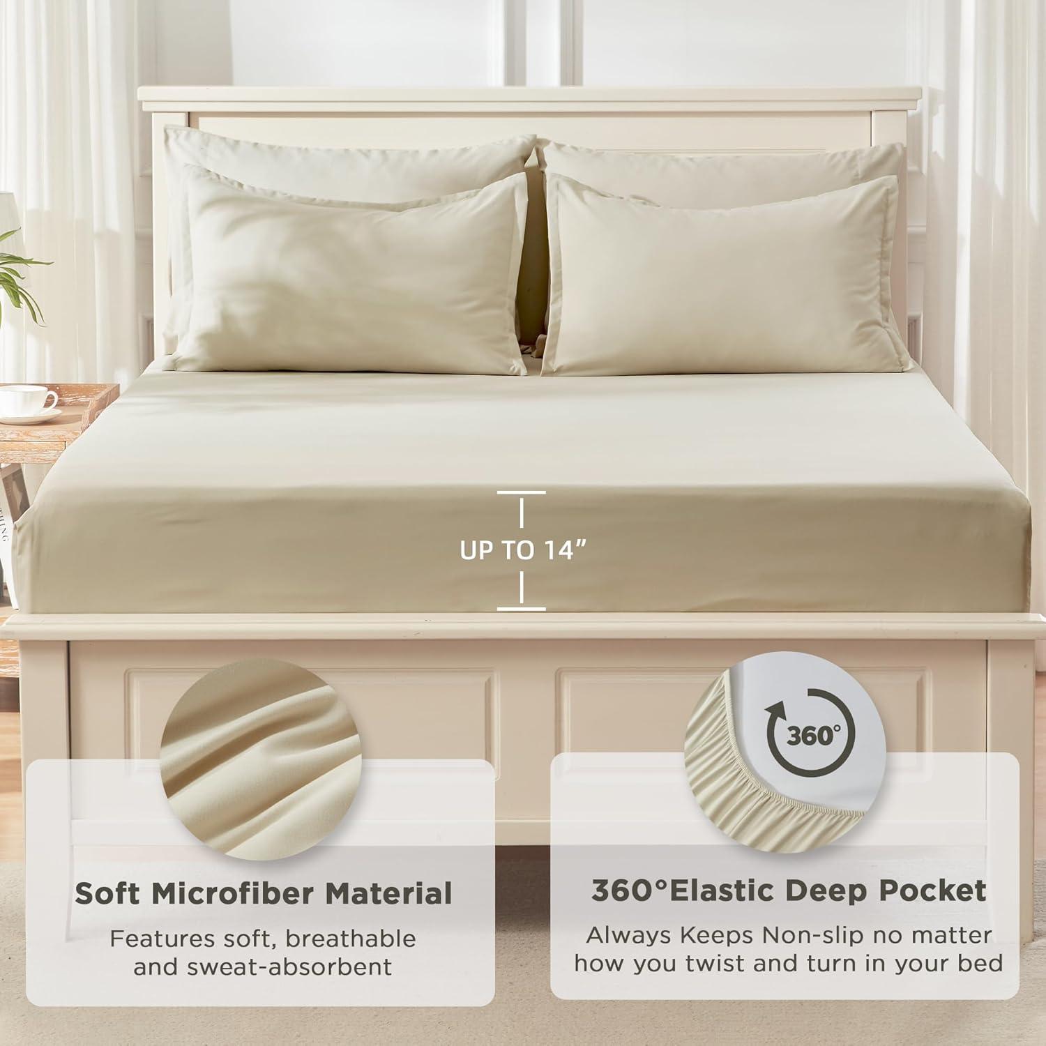 Timeless Design, Enduring Quality: The unique grid pattern of our comforter showcases an elegant and minimalist design philosophy. Meticulous stitching ensures that the filling stays in place, promising enduring durability. The fitted sheet is designed to fit mattresses up to 14 inches, catering to almost all types of beds, and providing you with diverse choices for your bedroom.
