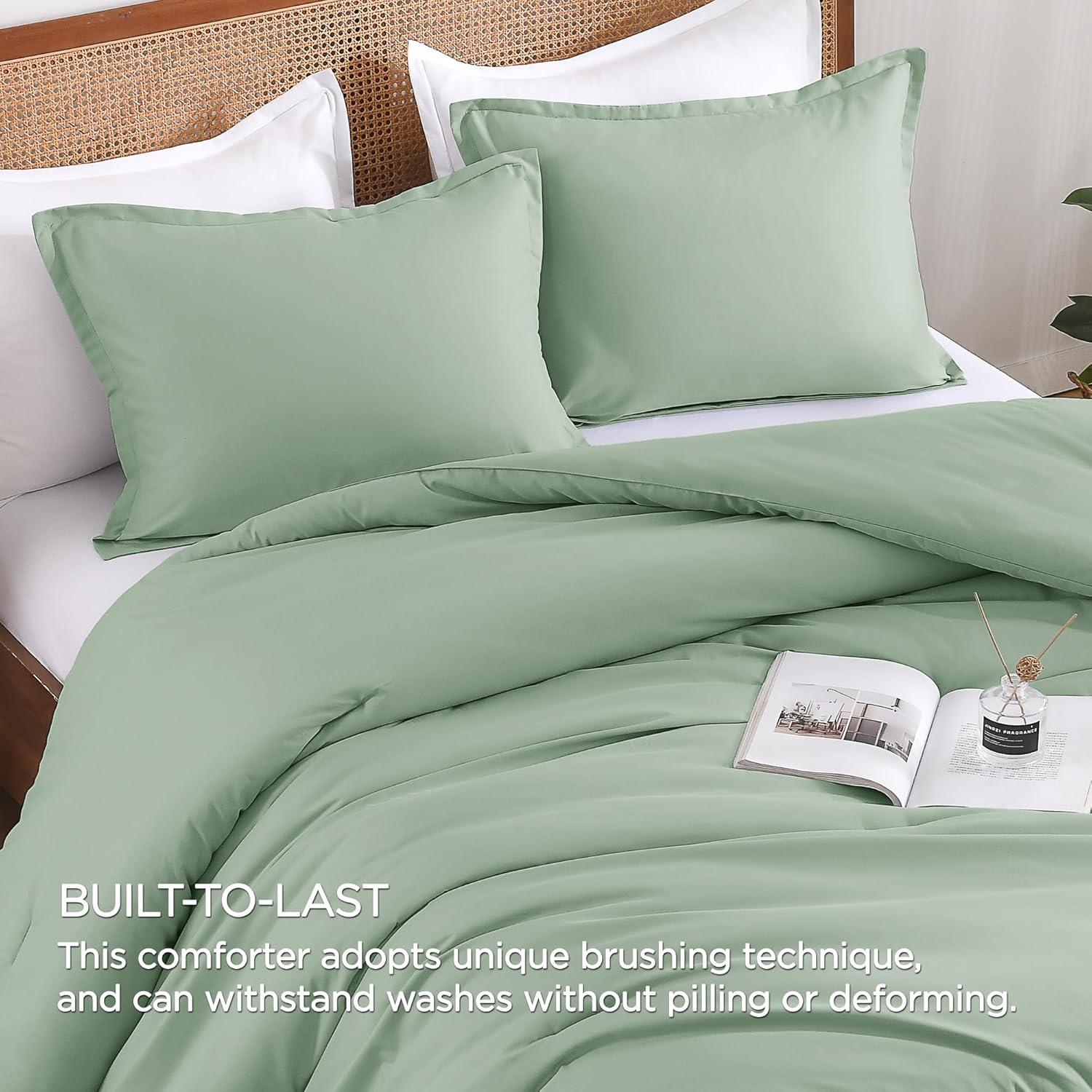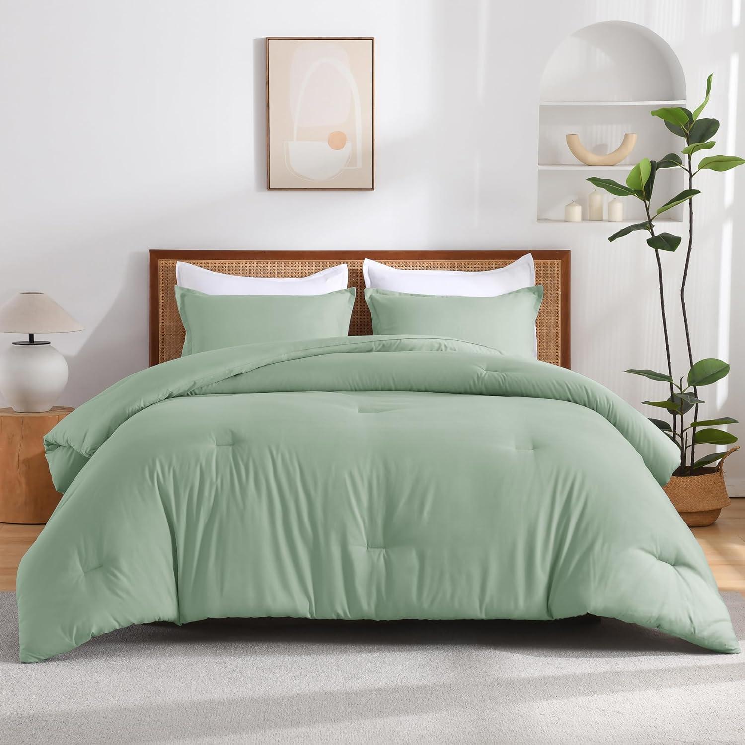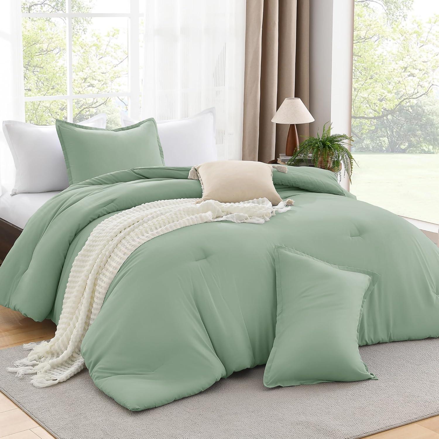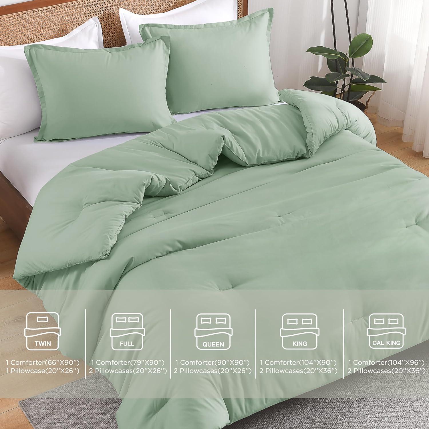 Andency Beige Twin Size Comforter Set, Solid Bed Comforter 2 Pieces (1 Boho Comforter & 1 Pillowcase), Lightweight and Fluffy Plain Beige Bed Comforter Set for All Season(Sage Green)