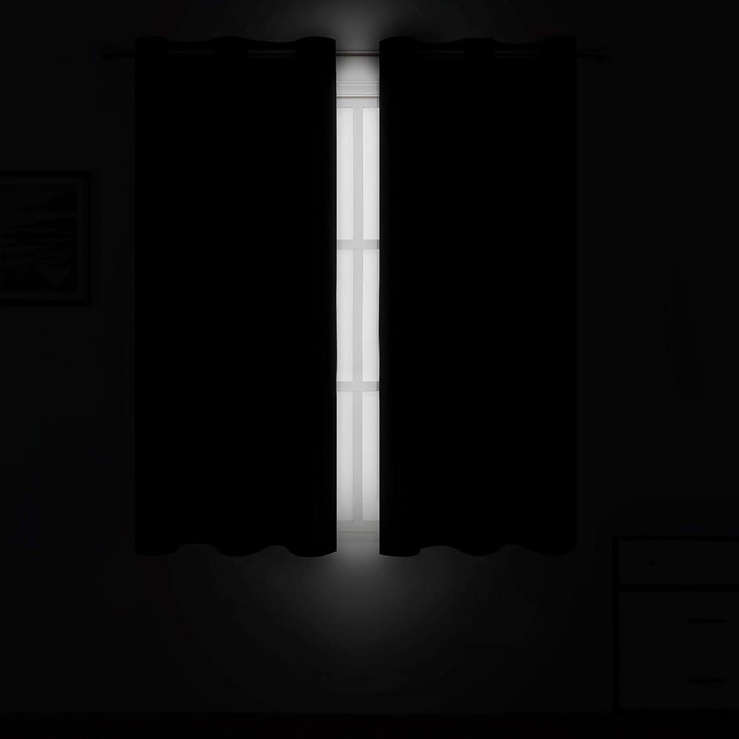 【Package Includes】Each set contains 2 black curtain panels, each measuring 42 inches wide by 68 inches long. Designed with 6 silver metal grommets (1.6-inch inner diameter) at the top, these curtains offer easy installation and smooth functionality.