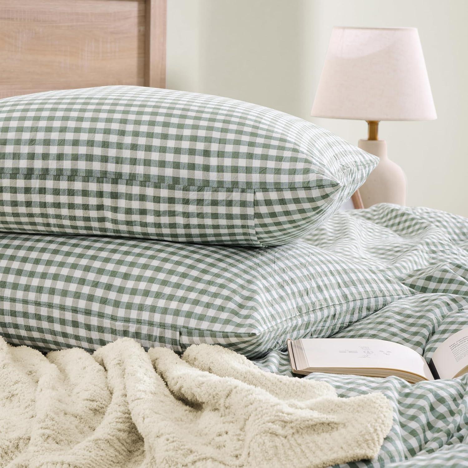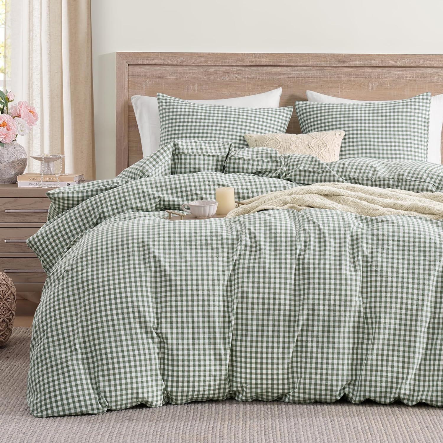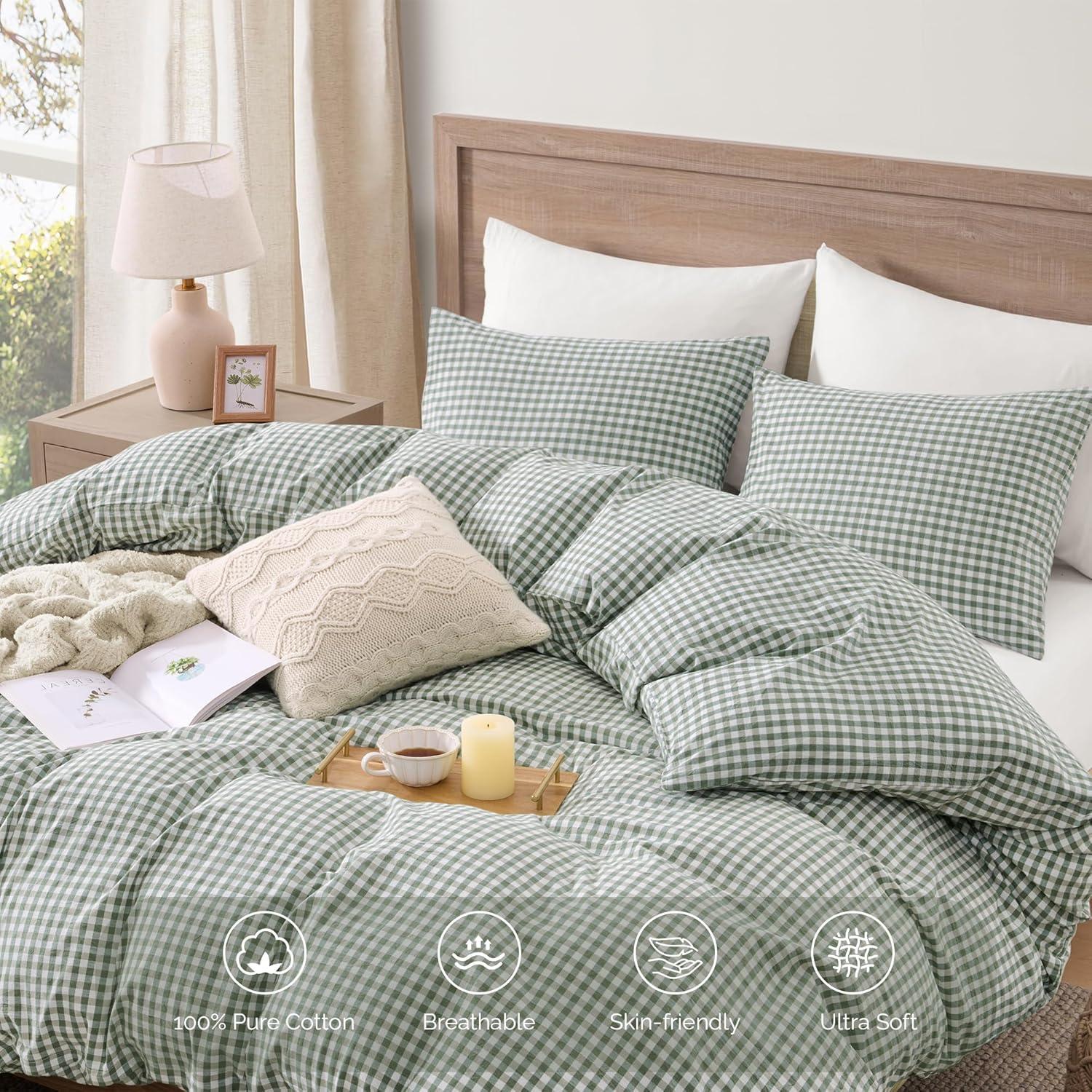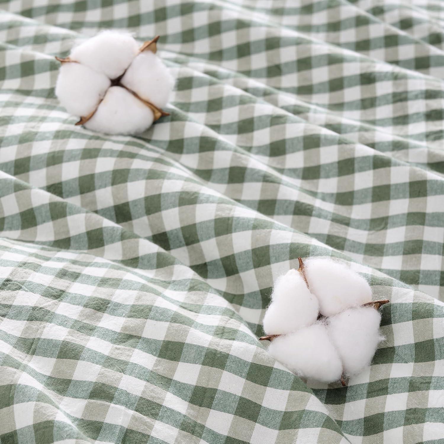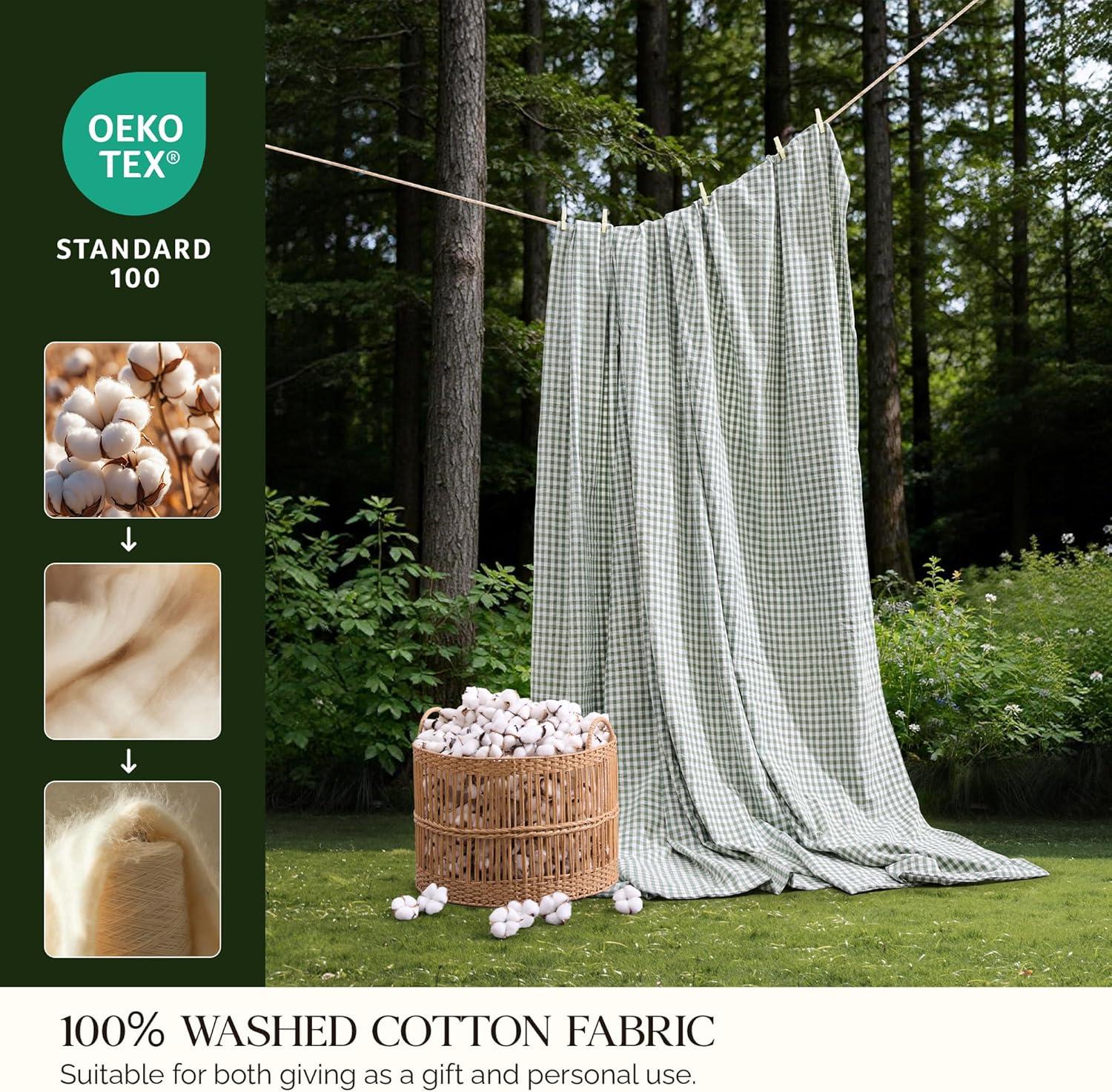 Premium Material: Made from 100% washed cotton, this gingham duvet cover feels refreshingly breathable and cool. Its linen-like texture with slightly crinkled finish, exudes a rustic charm. The washed finish elevates the fabric' s natural softness—growing even softer with every wash.