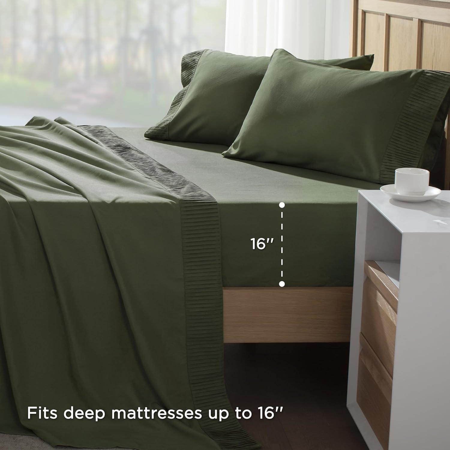 Andency Brown Sheets Queen Set 4 Pieces, Super Soft Sheets for Queen Size Bed, Microfiber Queen Sheet Set, Deep Pocket Up to 16", Hotel Luxury Breathable & Cooling Bedding Sheets & Pillowcases(Olive Green)