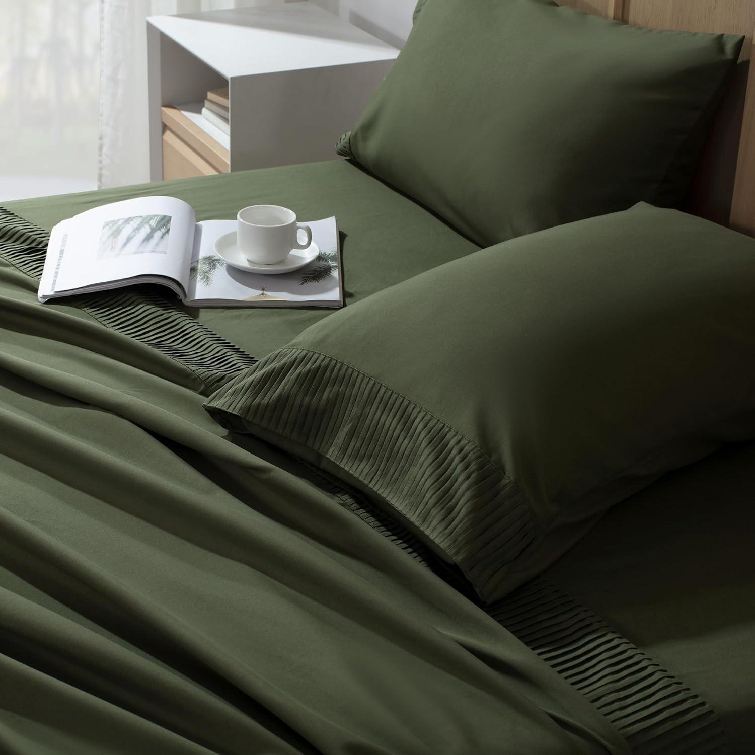 Andency Brown Sheets Queen Set 4 Pieces, Super Soft Sheets for Queen Size Bed, Microfiber Queen Sheet Set, Deep Pocket Up to 16″, Hotel Luxury Breathable & Cooling Bedding Sheets & Pillowcases(Olive Green)