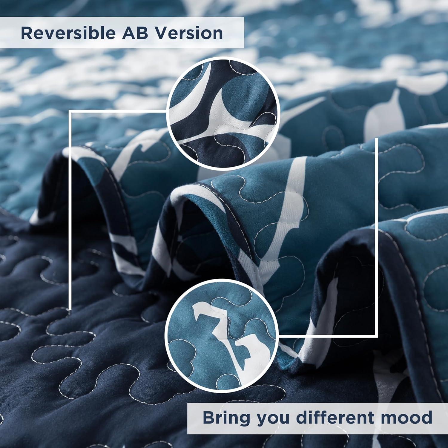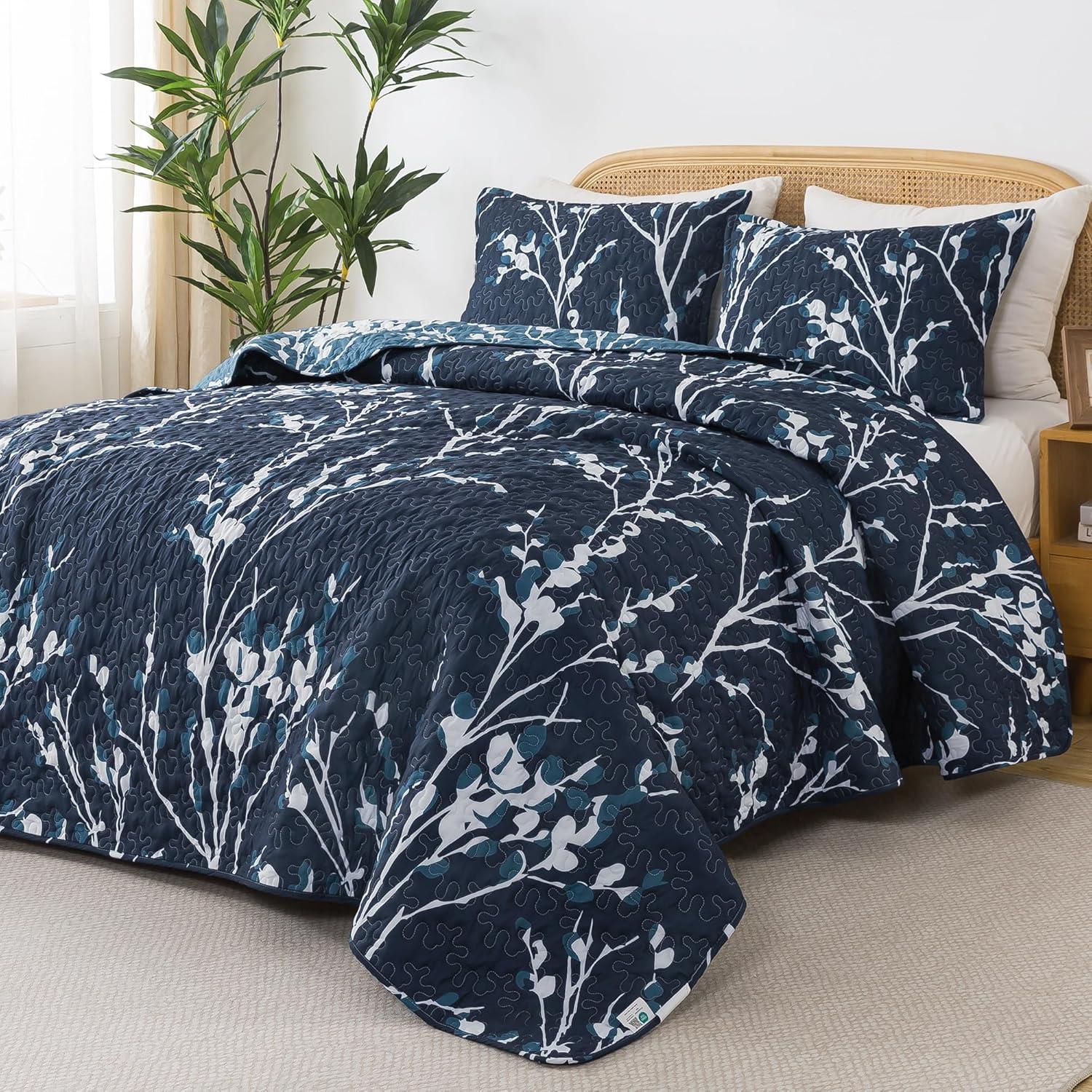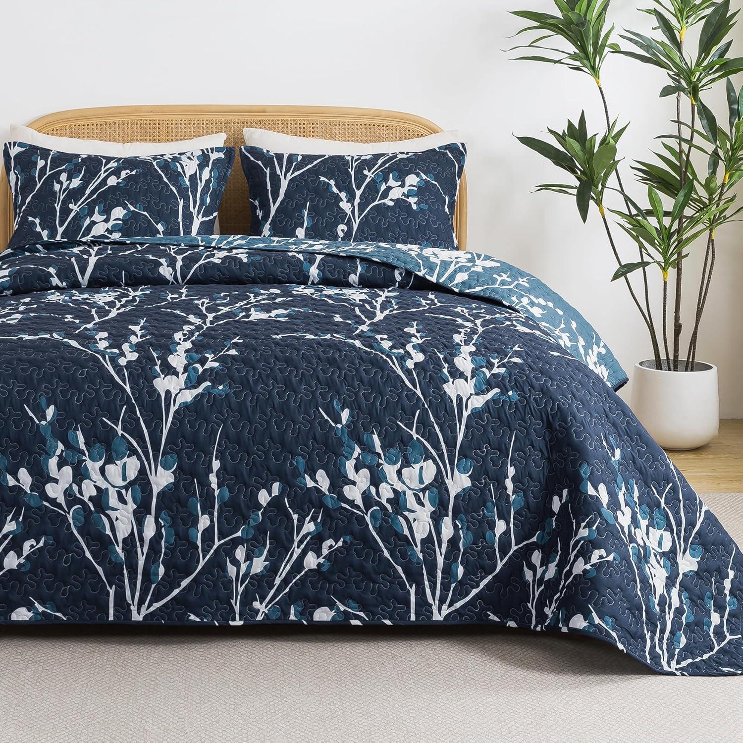 Andency Burgundy Red Quilt King Size (106x96 Inch), 3 Pieces Floral Lightweight Bedding Set, Microfiber Reversible Flower Quilted Bedspread Coverlet with 2 Pillowcases for Men Women(Navy)