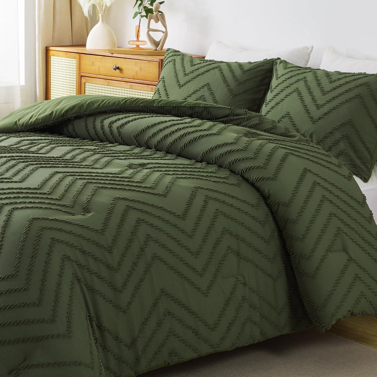 Andency Burnt Orange King Size Comforter, Boho Terracotta Soft Warm Bedding Comforter Sets for King Bed, 3 Pieces Rust Chevron Tufted Aesthetic Microfiber Lightweight Comforter Set(04 – Olive Green)