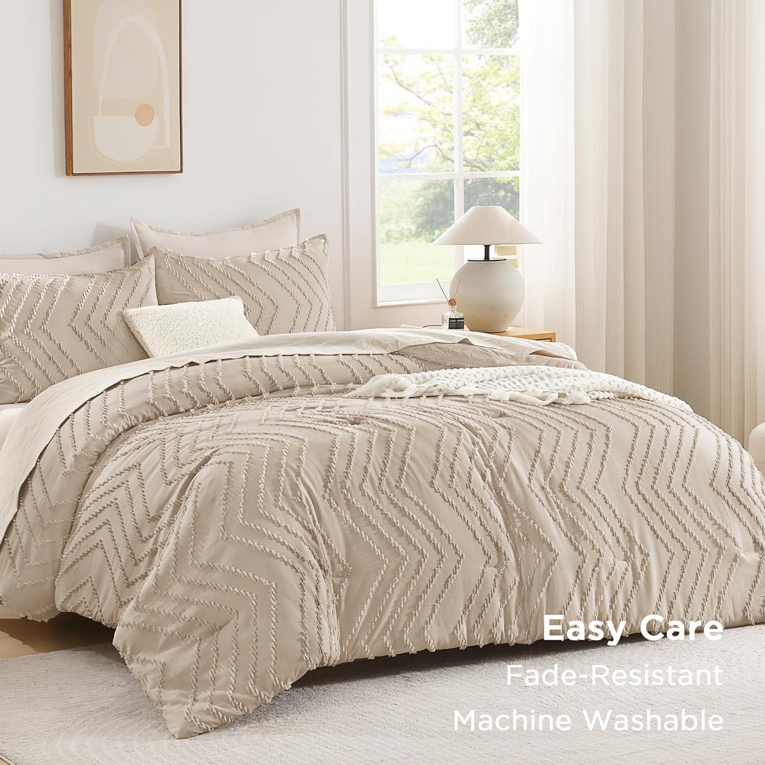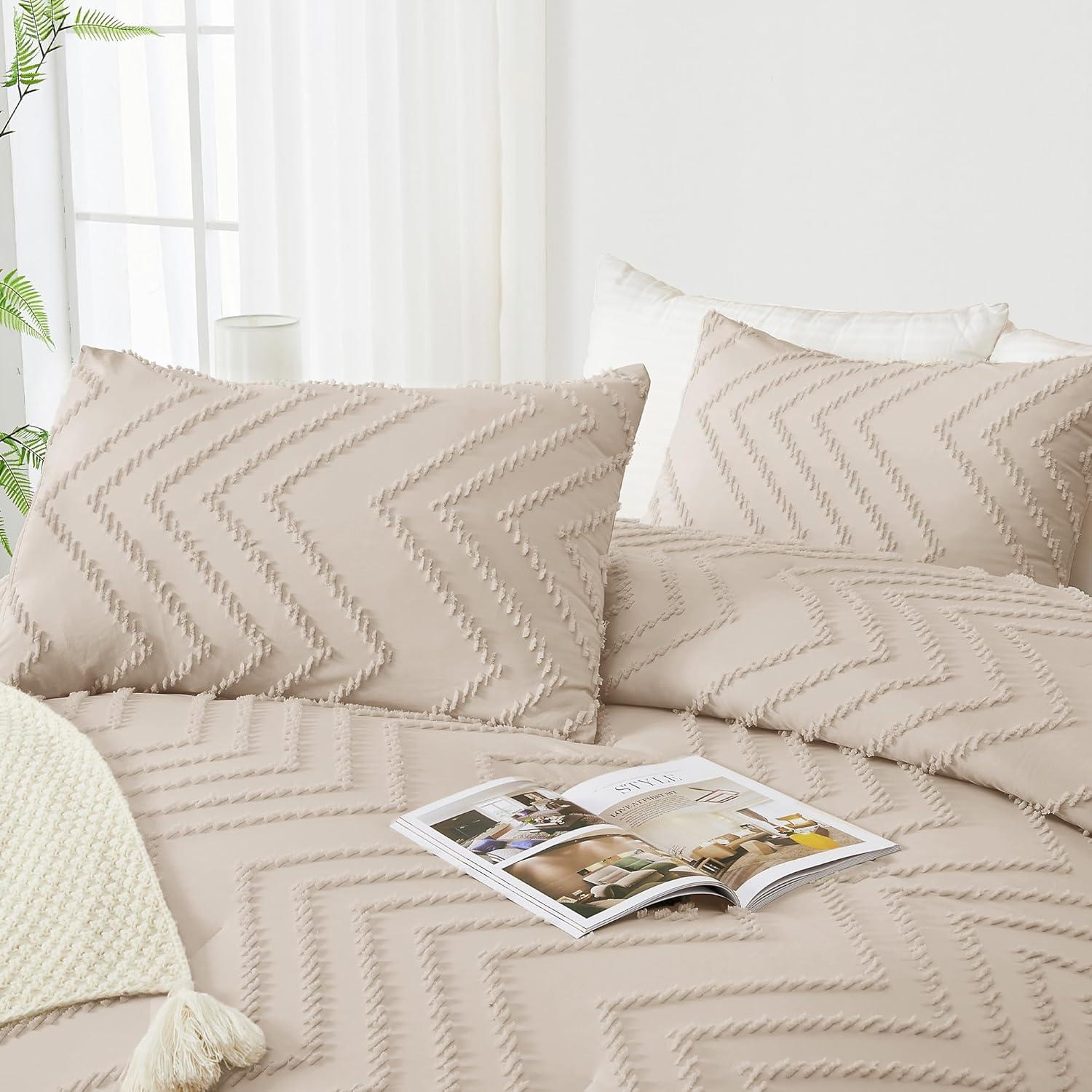 Andency Burnt Orange King Size Comforter, Boho Terracotta Soft Warm Bedding Comforter Sets for King Bed, 3 Pieces Rust Chevron Tufted Aesthetic Microfiber Lightweight Comforter Set(09 - Khaki)