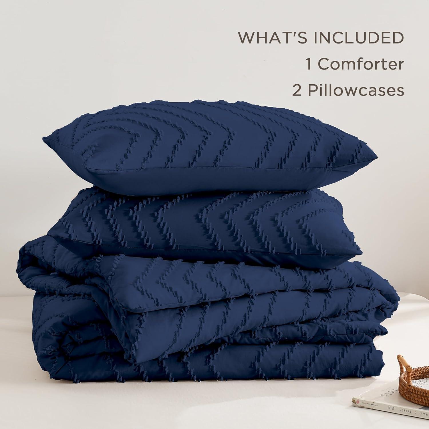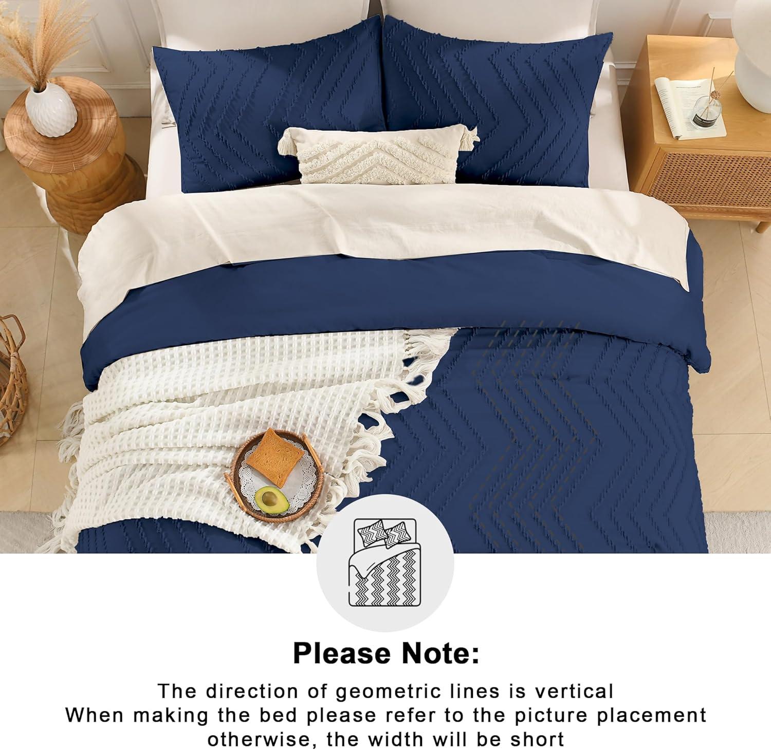 Andency Burnt Orange King Size Comforter, Boho Terracotta Soft Warm Bedding Comforter Sets for King Bed, 3 Pieces Rust Chevron Tufted Aesthetic Microfiber Lightweight Comforter Set(12 - Navy Blue)