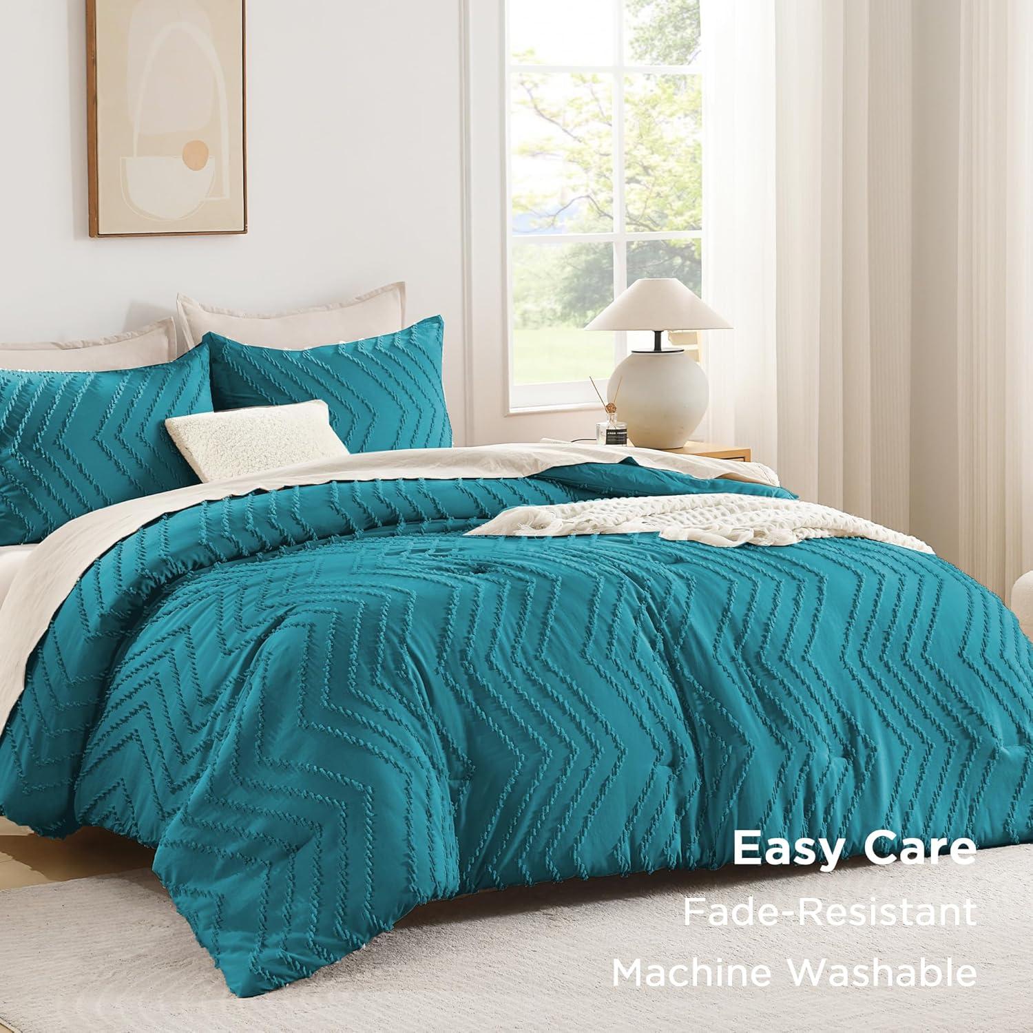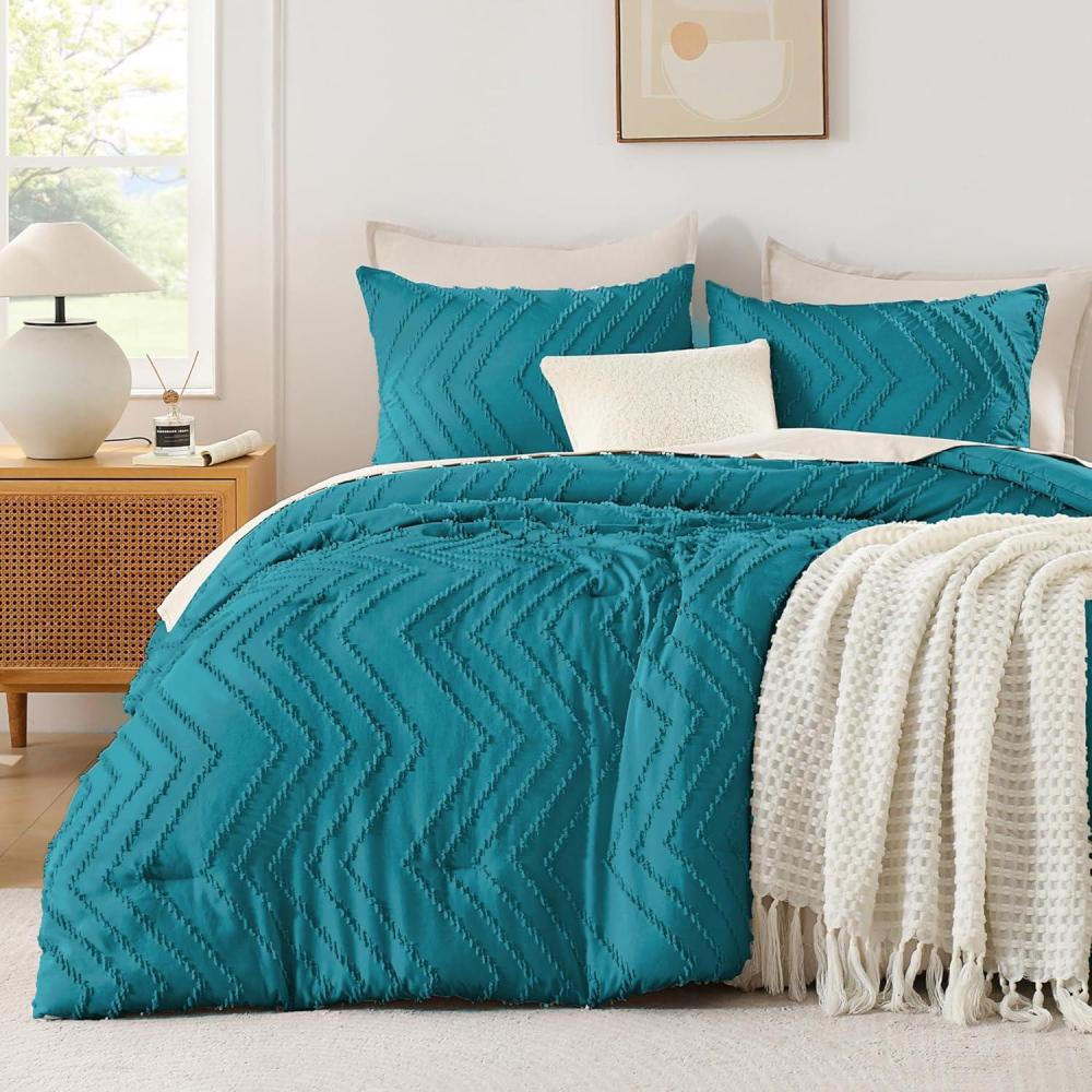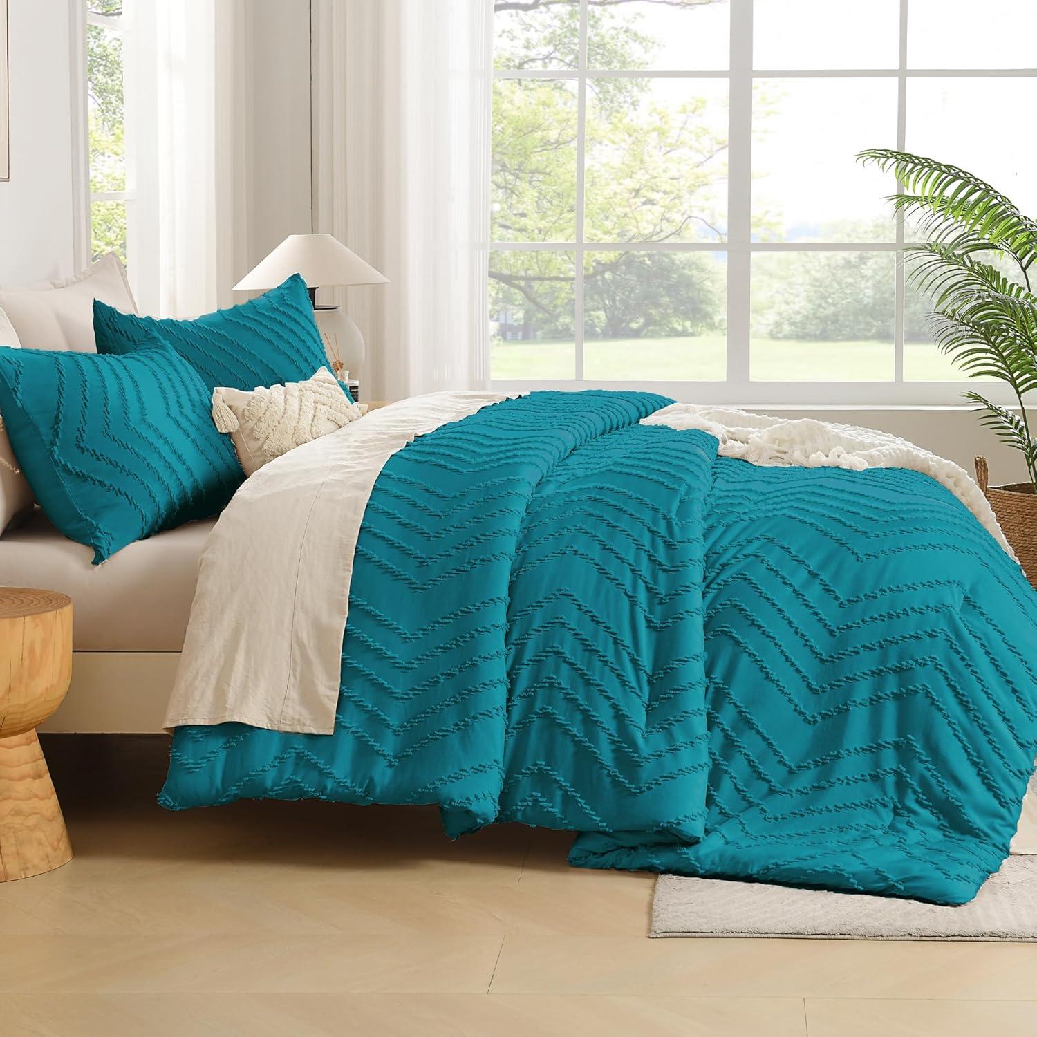 Andency Burnt Orange King Size Comforter, Boho Terracotta Soft Warm Bedding Comforter Sets for King Bed, 3 Pieces Rust Chevron Tufted Aesthetic Microfiber Lightweight Comforter Set(17 – Turquoise)