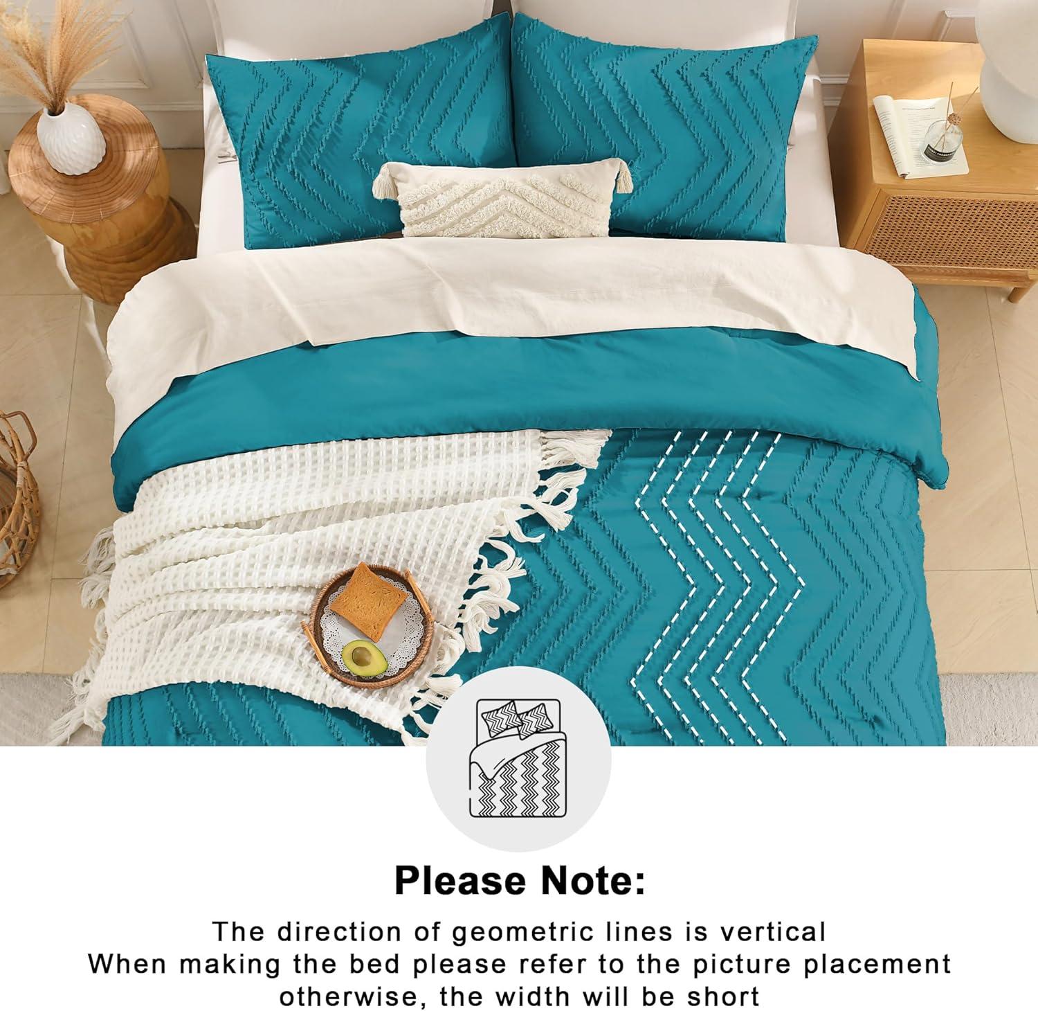 Andency Burnt Orange King Size Comforter, Boho Terracotta Soft Warm Bedding Comforter Sets for King Bed, 3 Pieces Rust Chevron Tufted Aesthetic Microfiber Lightweight Comforter Set(17 - Turquoise)