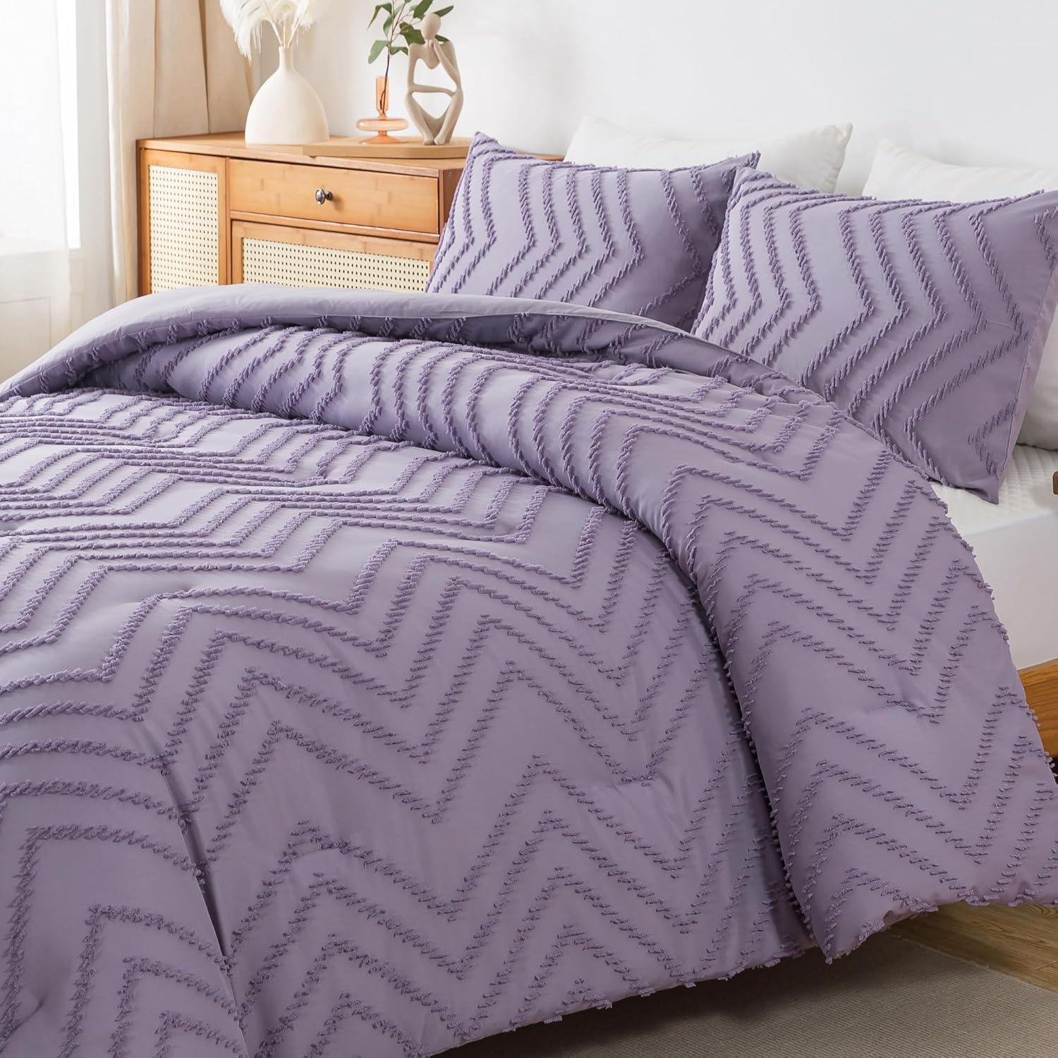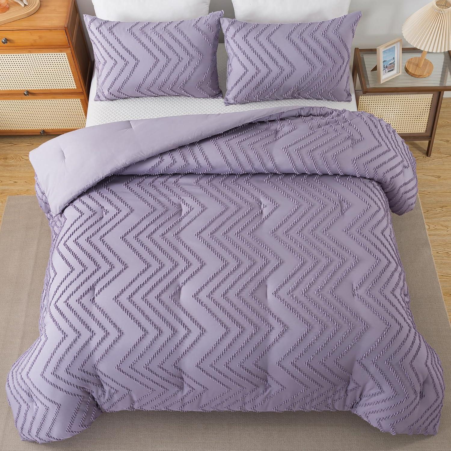 Andency Burnt Orange King Size Comforter, Boho Terracotta Soft Warm Bedding Comforter Sets for King Bed, 3 Pieces Rust Chevron Tufted Aesthetic Microfiber Lightweight Comforter Set(21 - Purple)