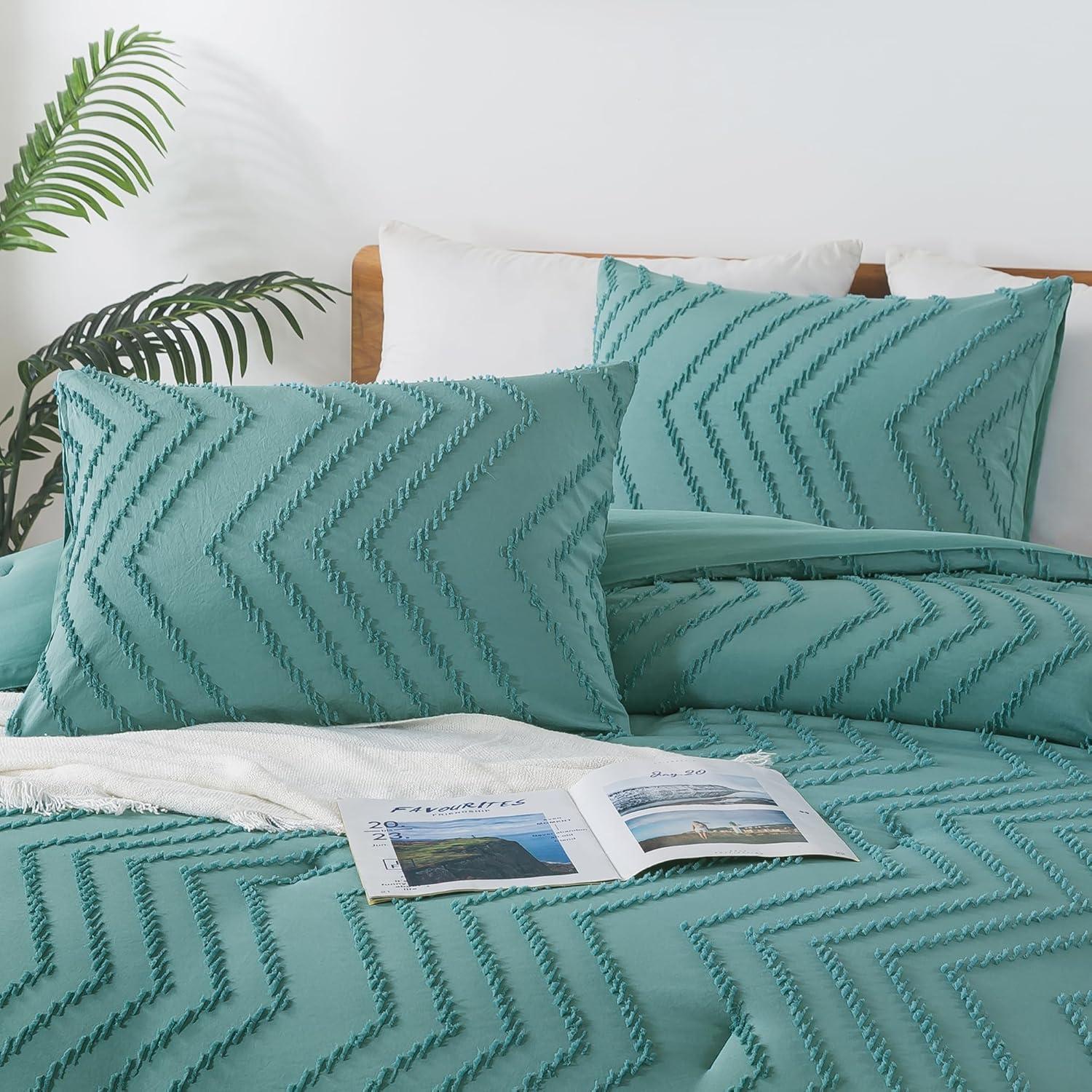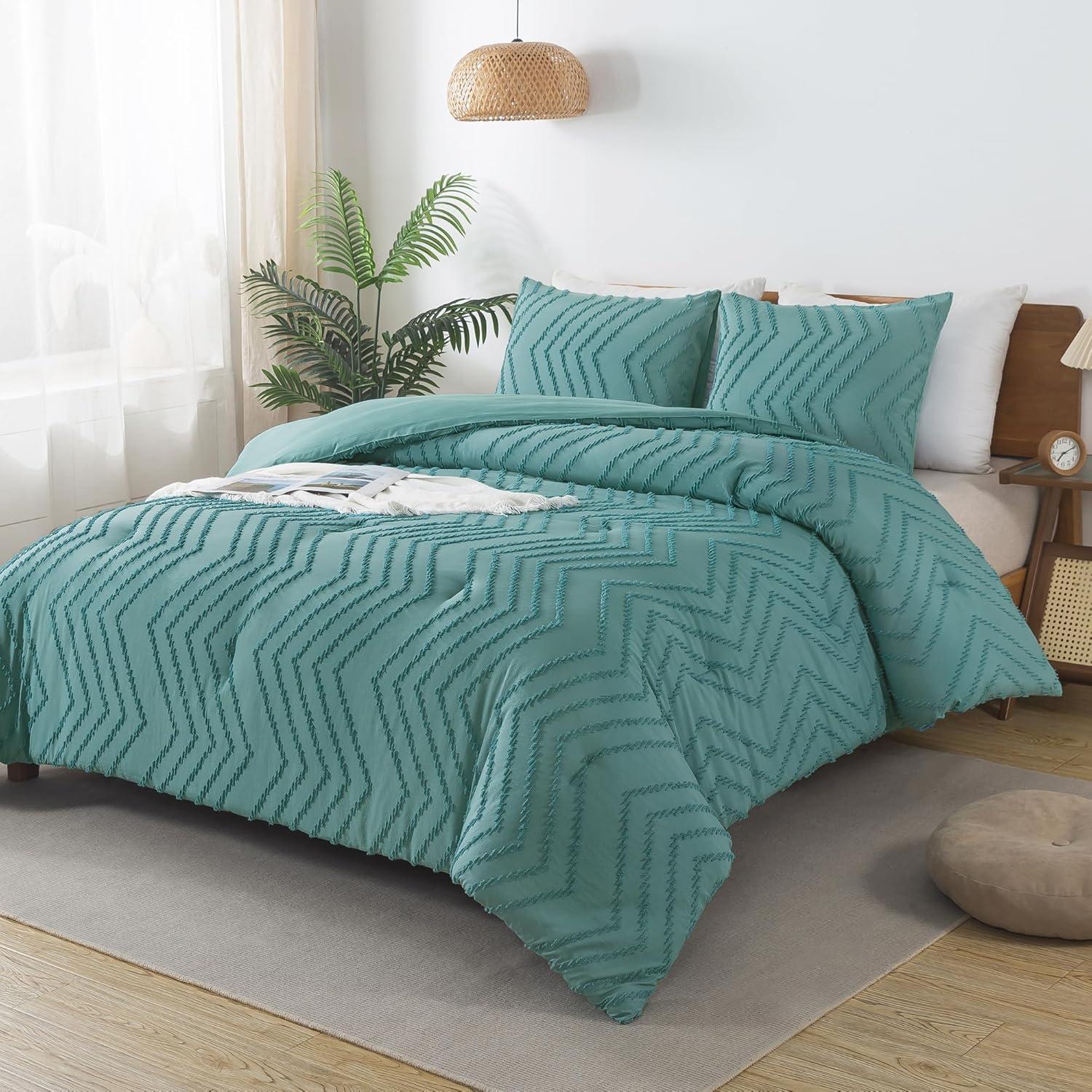 Andency Burnt Orange King Size Comforter, Boho Terracotta Soft Warm Bedding Comforter Sets for King Bed, 3 Pieces Rust Chevron Tufted Aesthetic Microfiber Lightweight Comforter Set(22 – Grayish Teal)