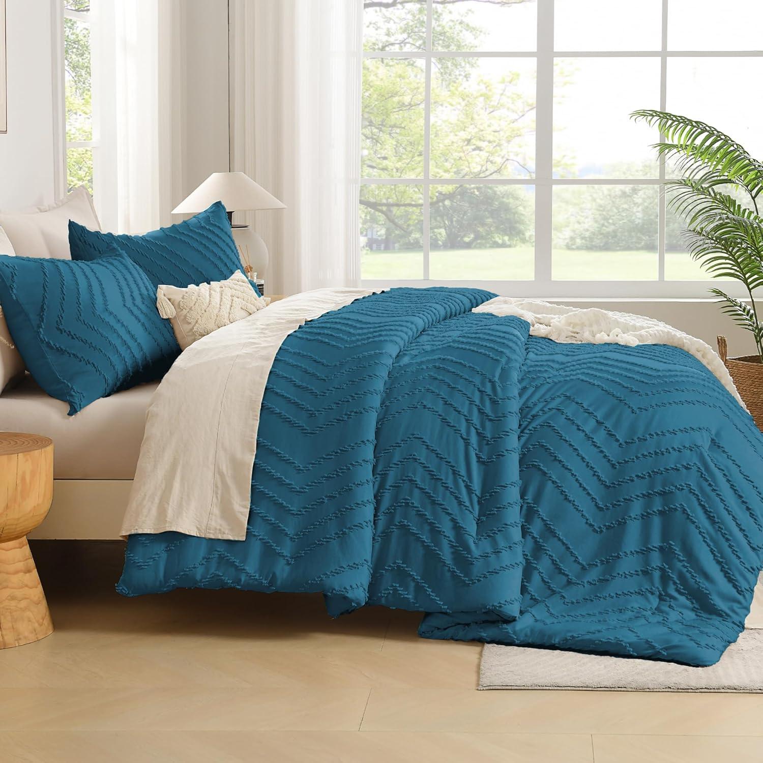Andency Burnt Orange King Size Comforter, Boho Terracotta Soft Warm Bedding Comforter Sets for King Bed, 3 Pieces Rust Chevron Tufted Aesthetic Microfiber Lightweight Comforter Set(23 – Teal)