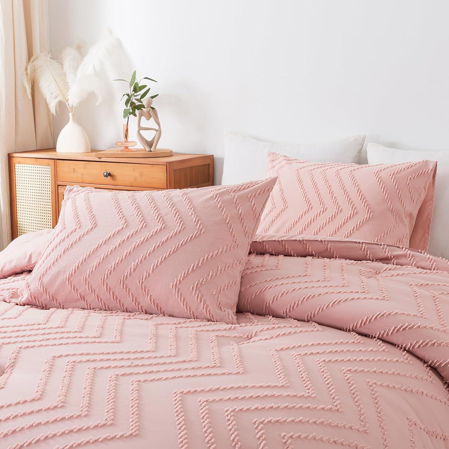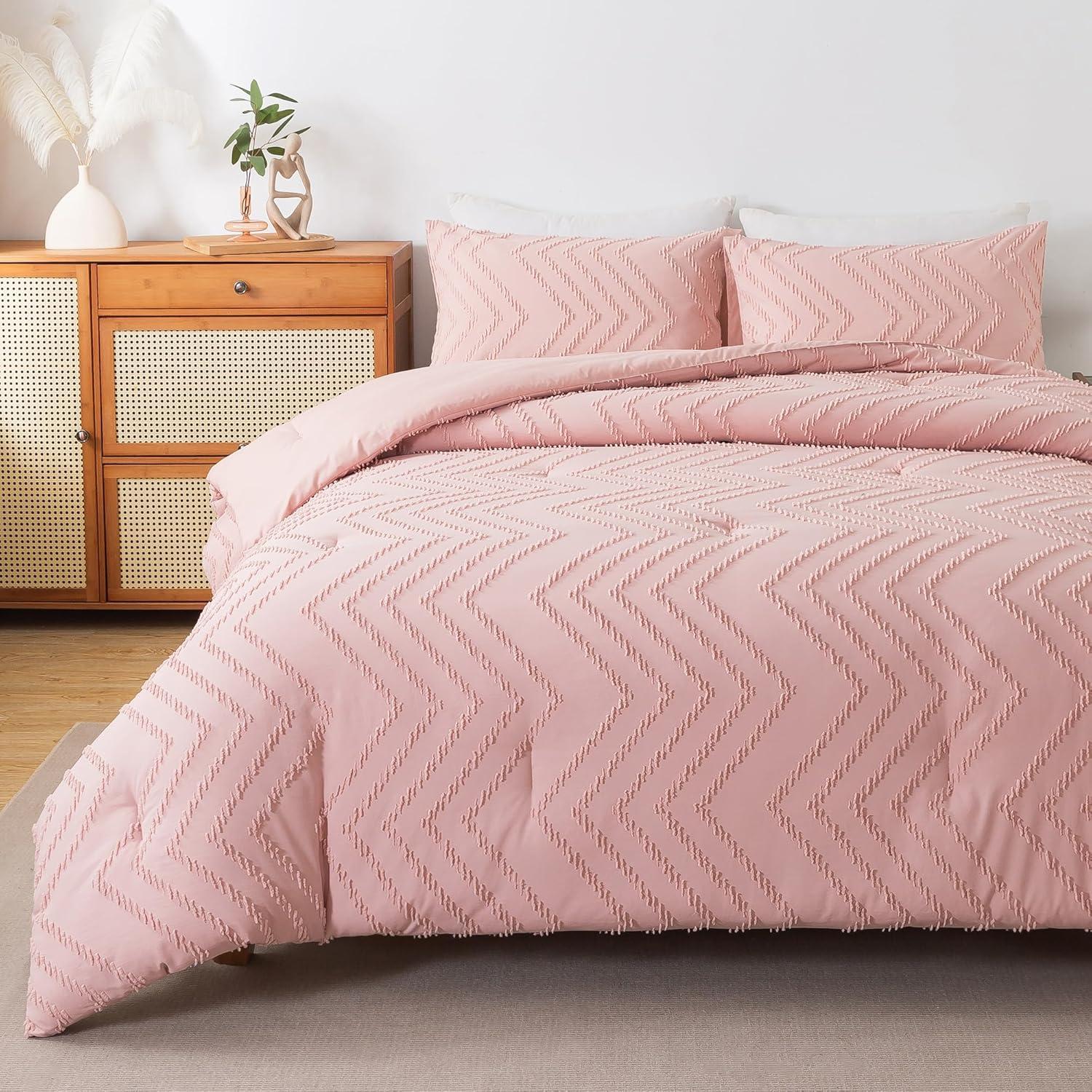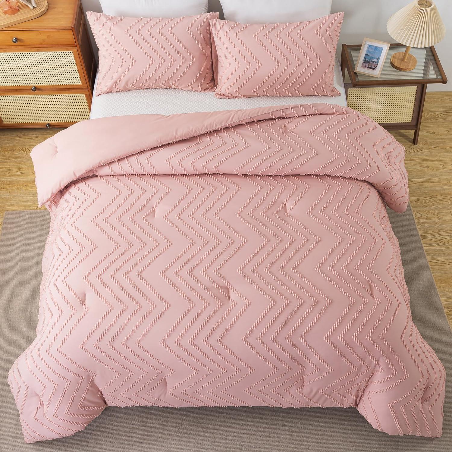 Andency Burnt Orange King Size Comforter, Boho Terracotta Soft Warm Bedding Comforter Sets for King Bed, 3 Pieces Rust Chevron Tufted Aesthetic Microfiber Lightweight Comforter Set(24 – Blush Pink)