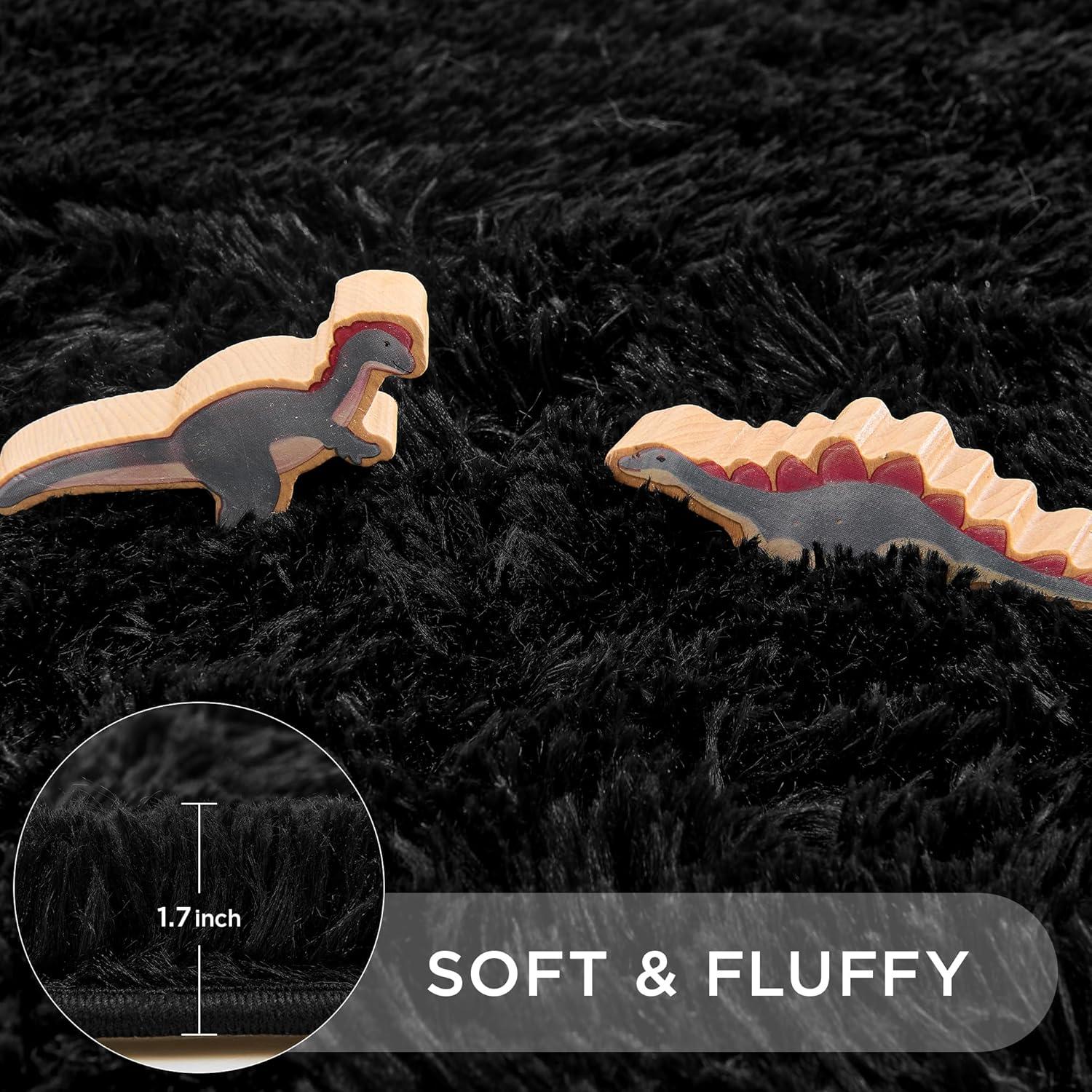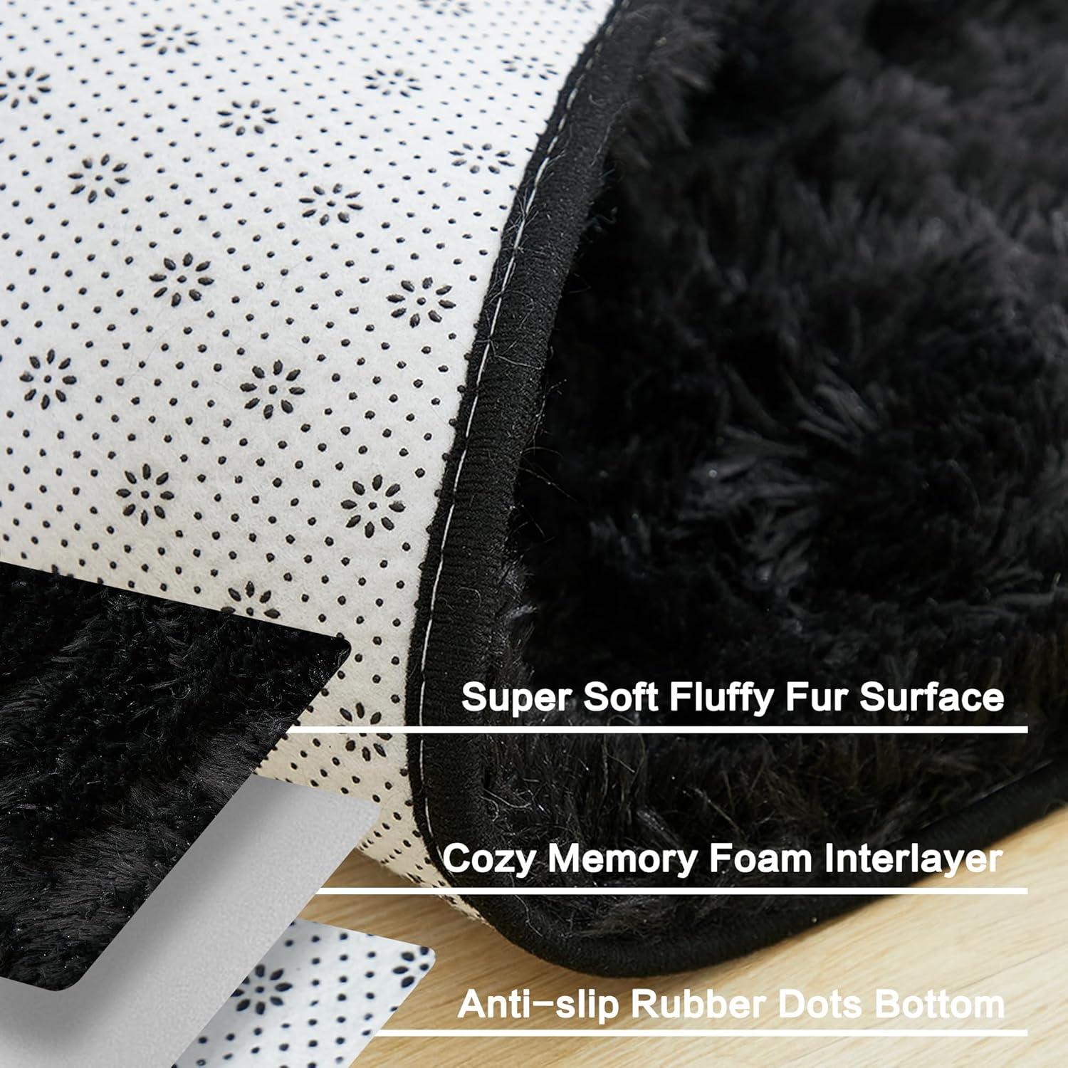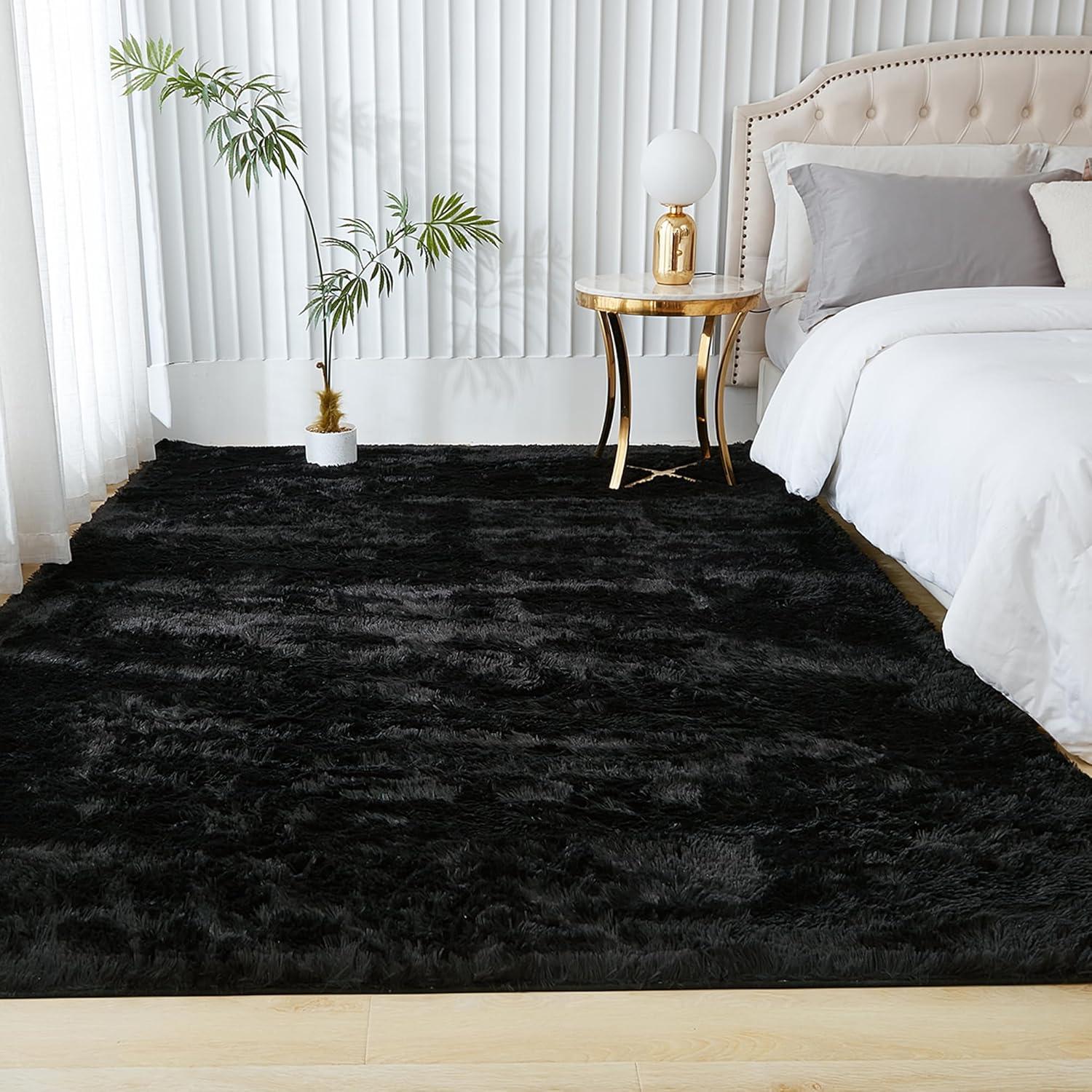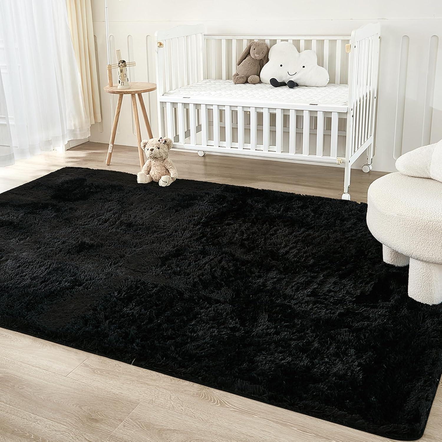 Andency Cream Soft Area Rugs for Living Room Bedroom, 4×6 Fluffy Shaggy Bedside Rug, Non-Slip Large Shag Fuzzy Plush Carpets for Bedroom Kids Dorm Nursery Home Decor Aesthetic(Black)