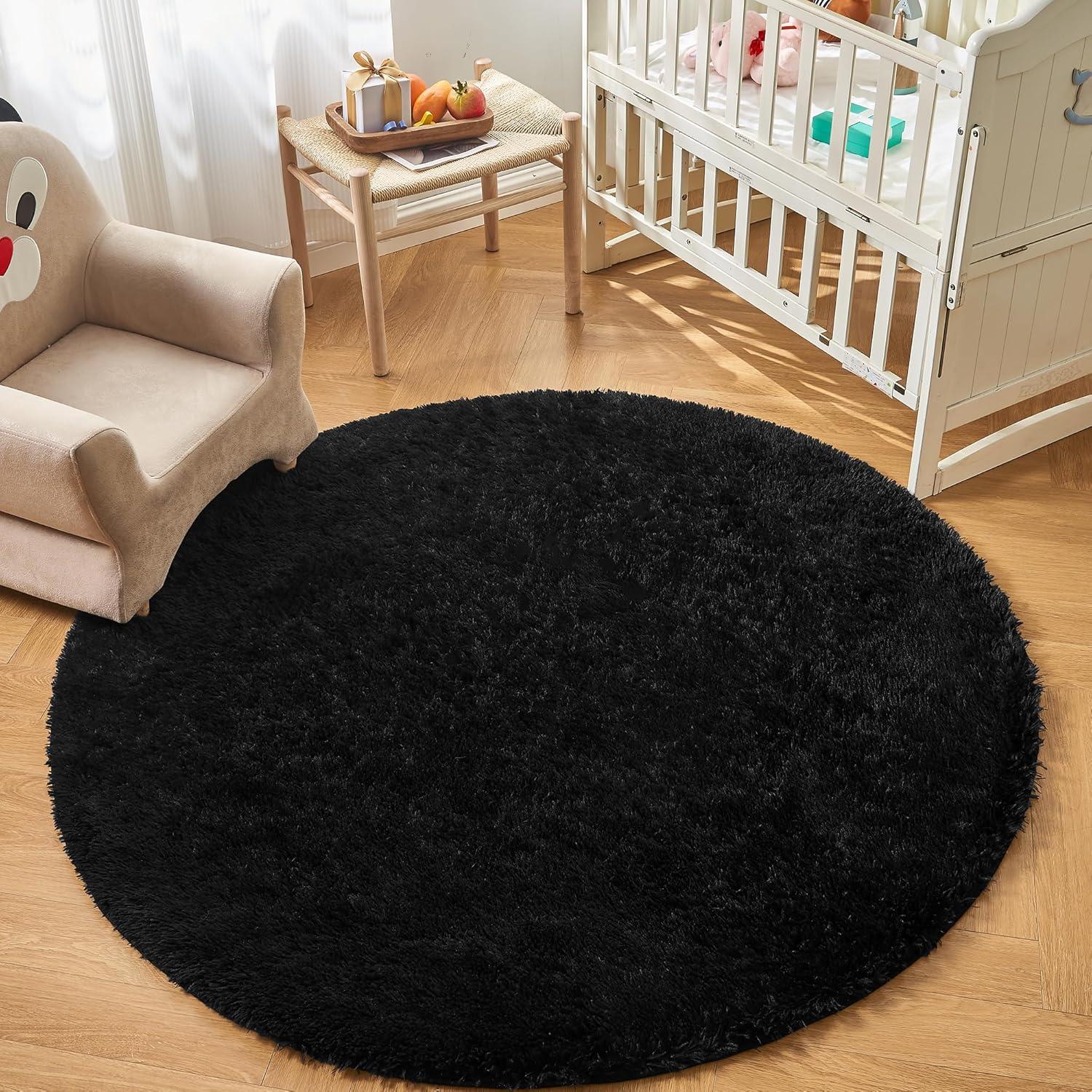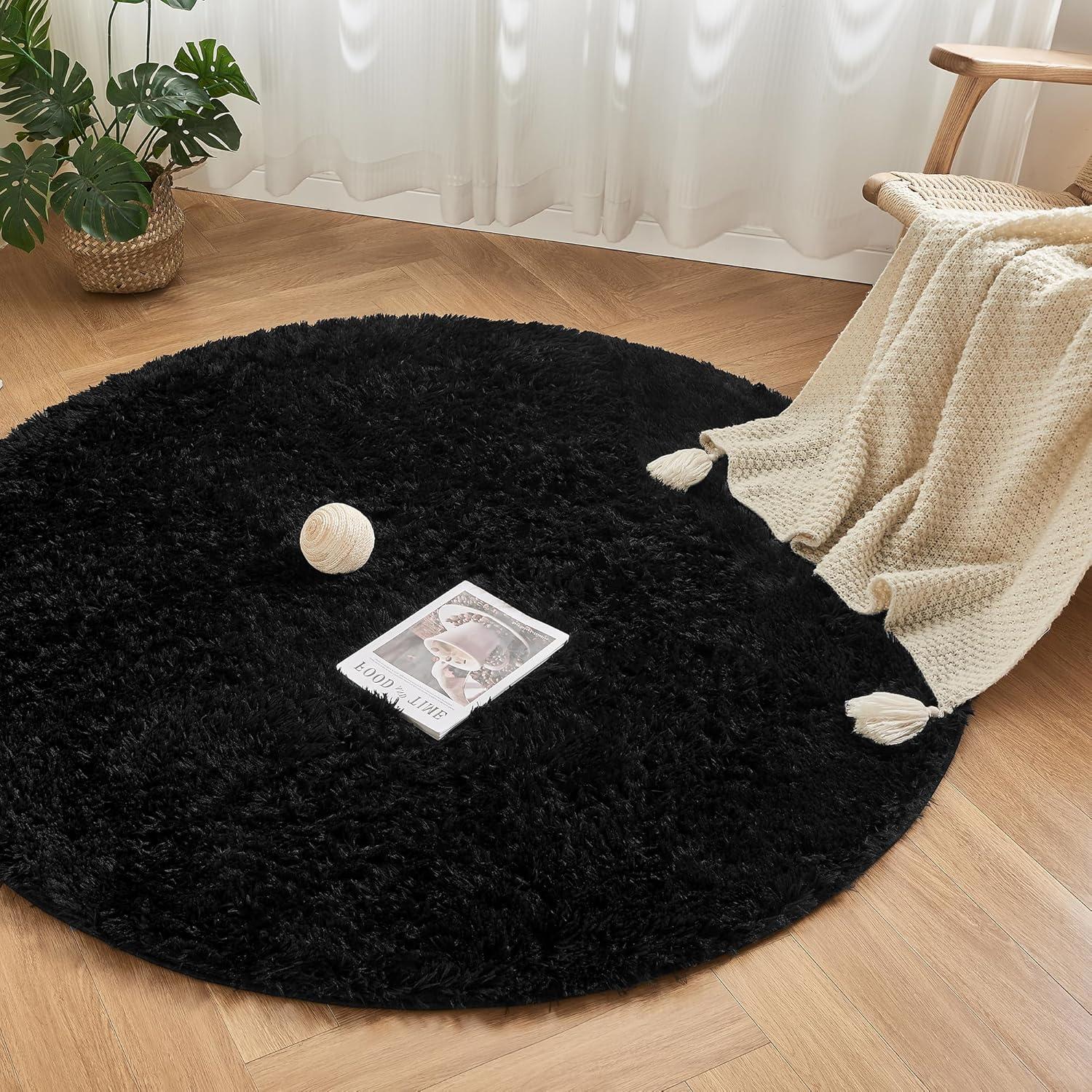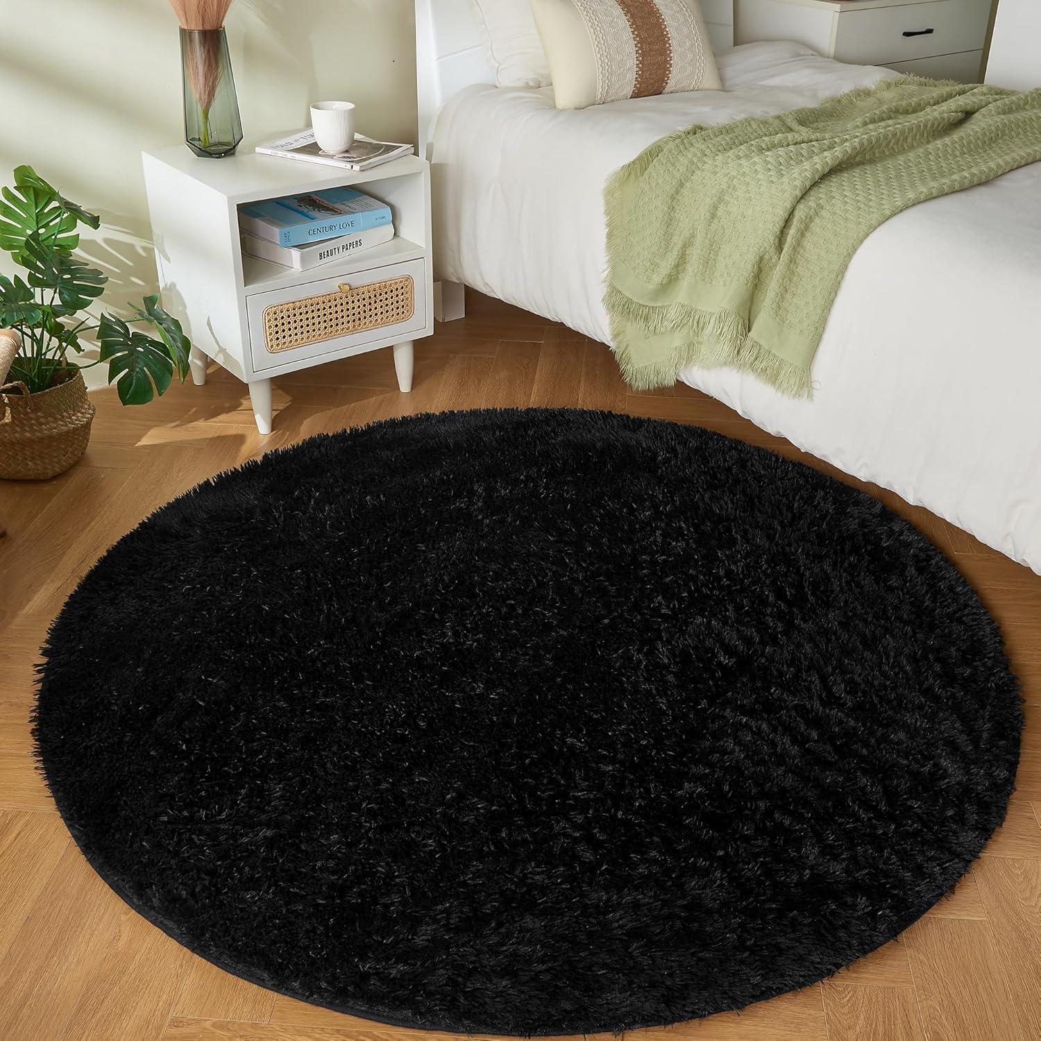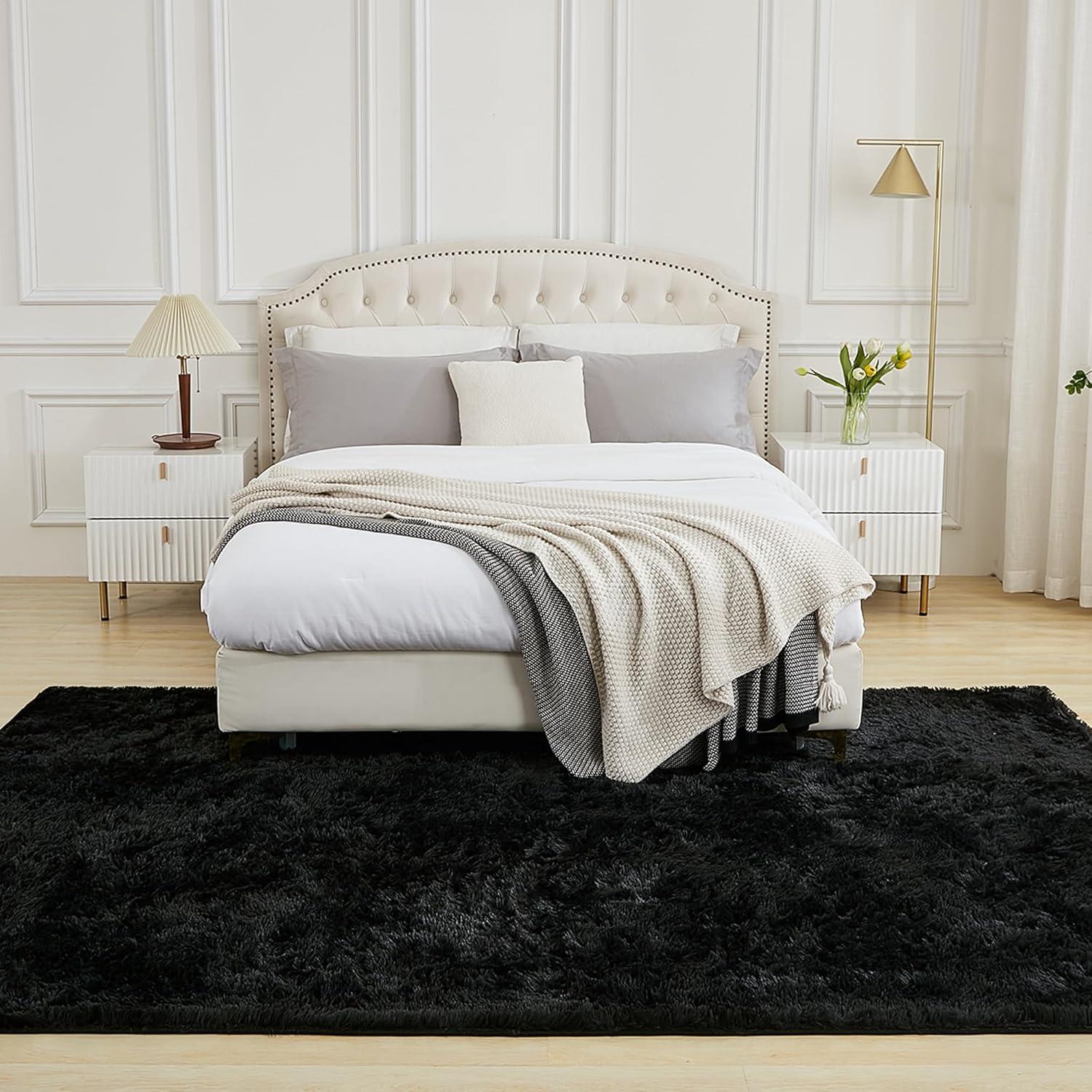 Andency Cream Soft Area Rugs for Living Room Bedroom, 4×6 Fluffy Shaggy Bedside Rug, Non-Slip Large Shag Fuzzy Plush Carpets for Bedroom Kids Dorm Nursery Home Decor Aesthetic(Black)