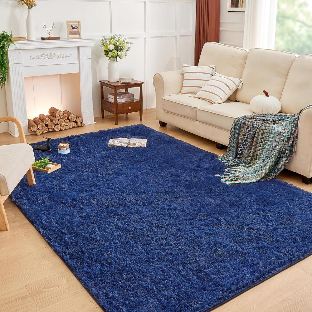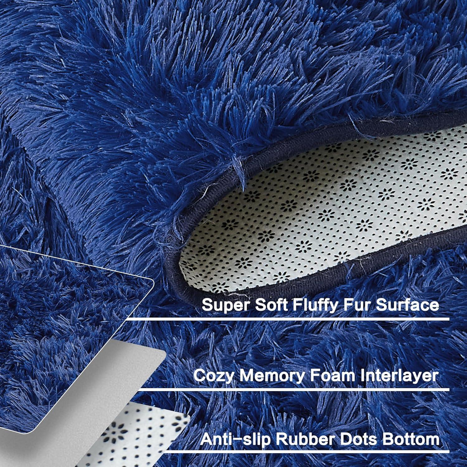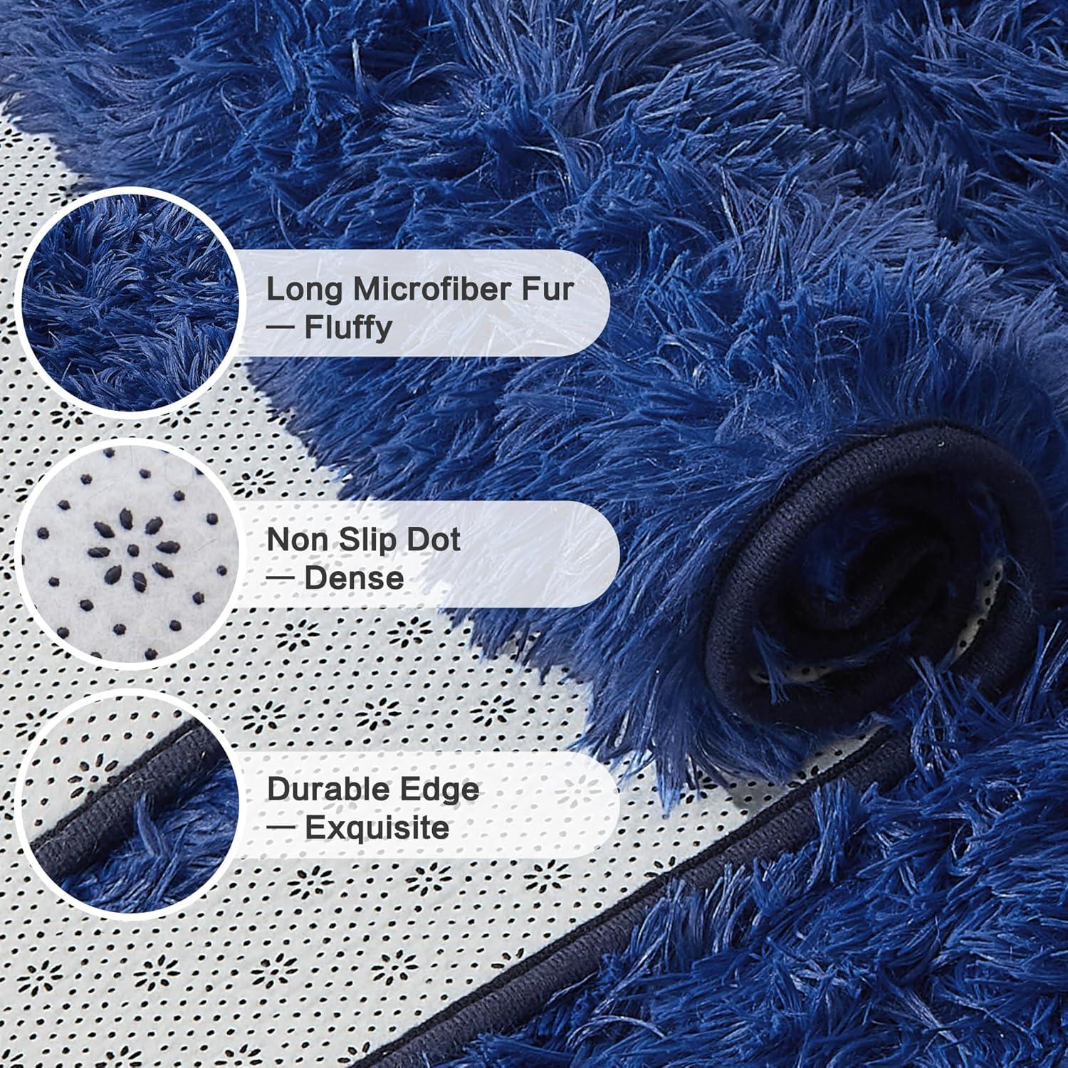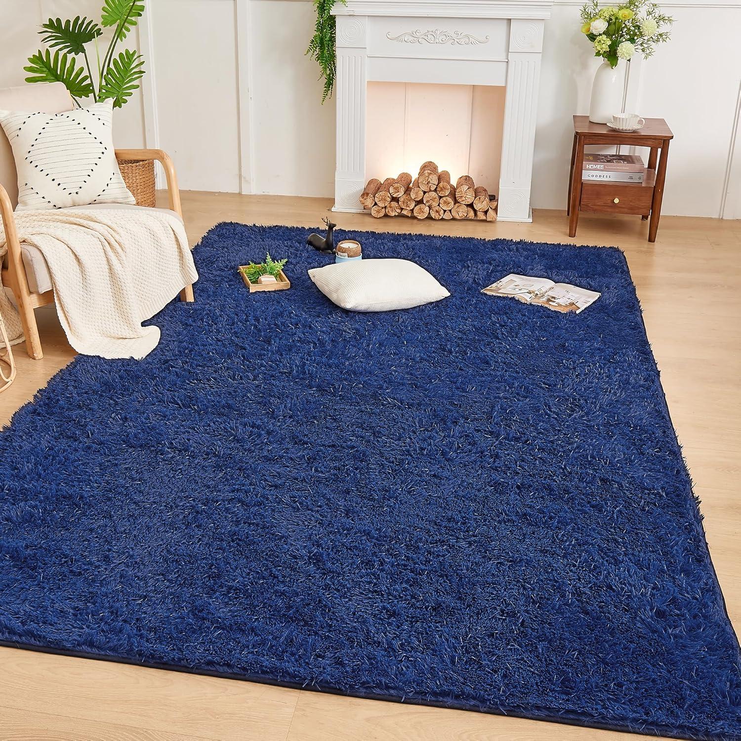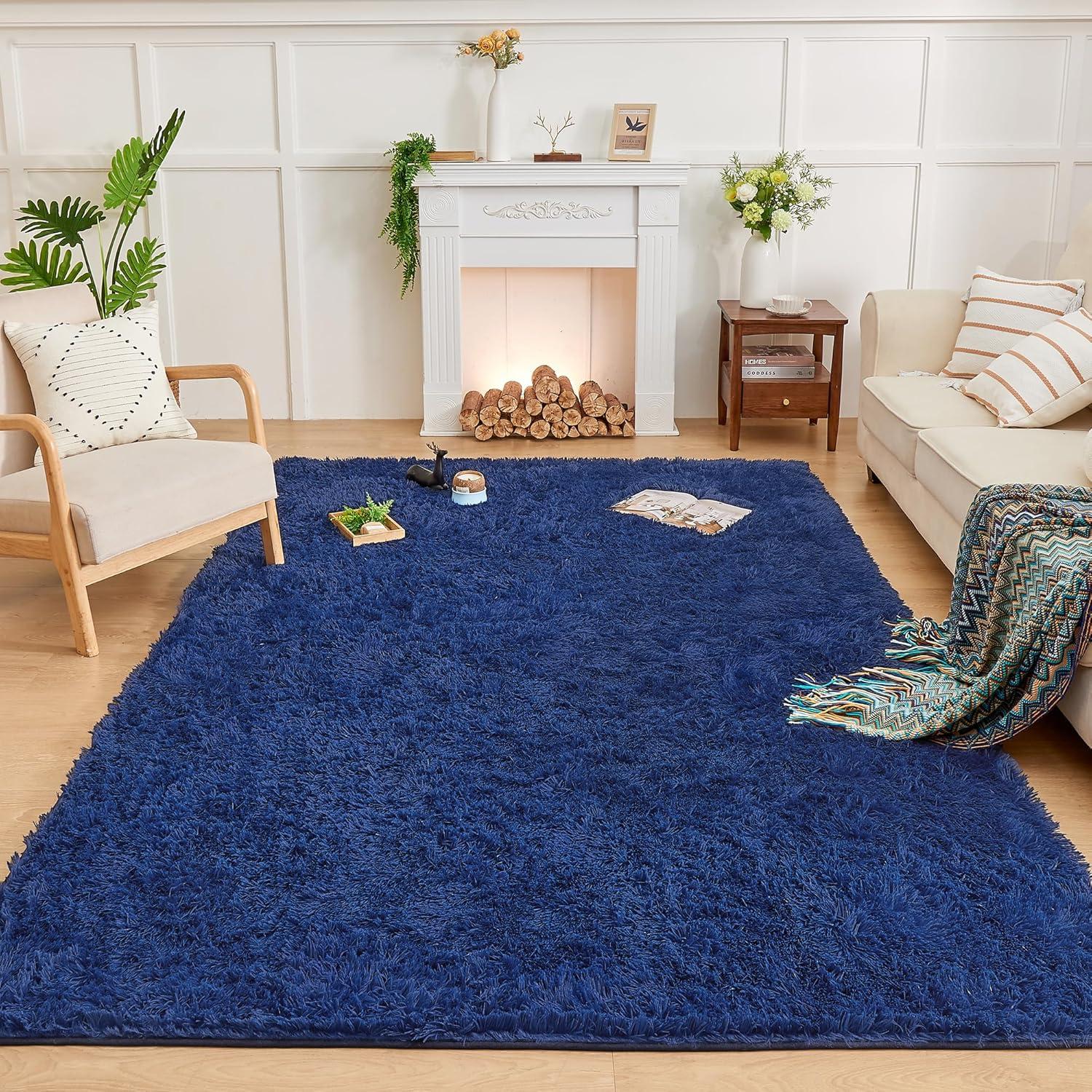 Andency Cream Soft Area Rugs for Living Room Bedroom, 4×6 Fluffy Shaggy Bedside Rug, Non-Slip Large Shag Fuzzy Plush Carpets for Bedroom Kids Dorm Nursery Home Decor Aesthetic(Navy Blue)