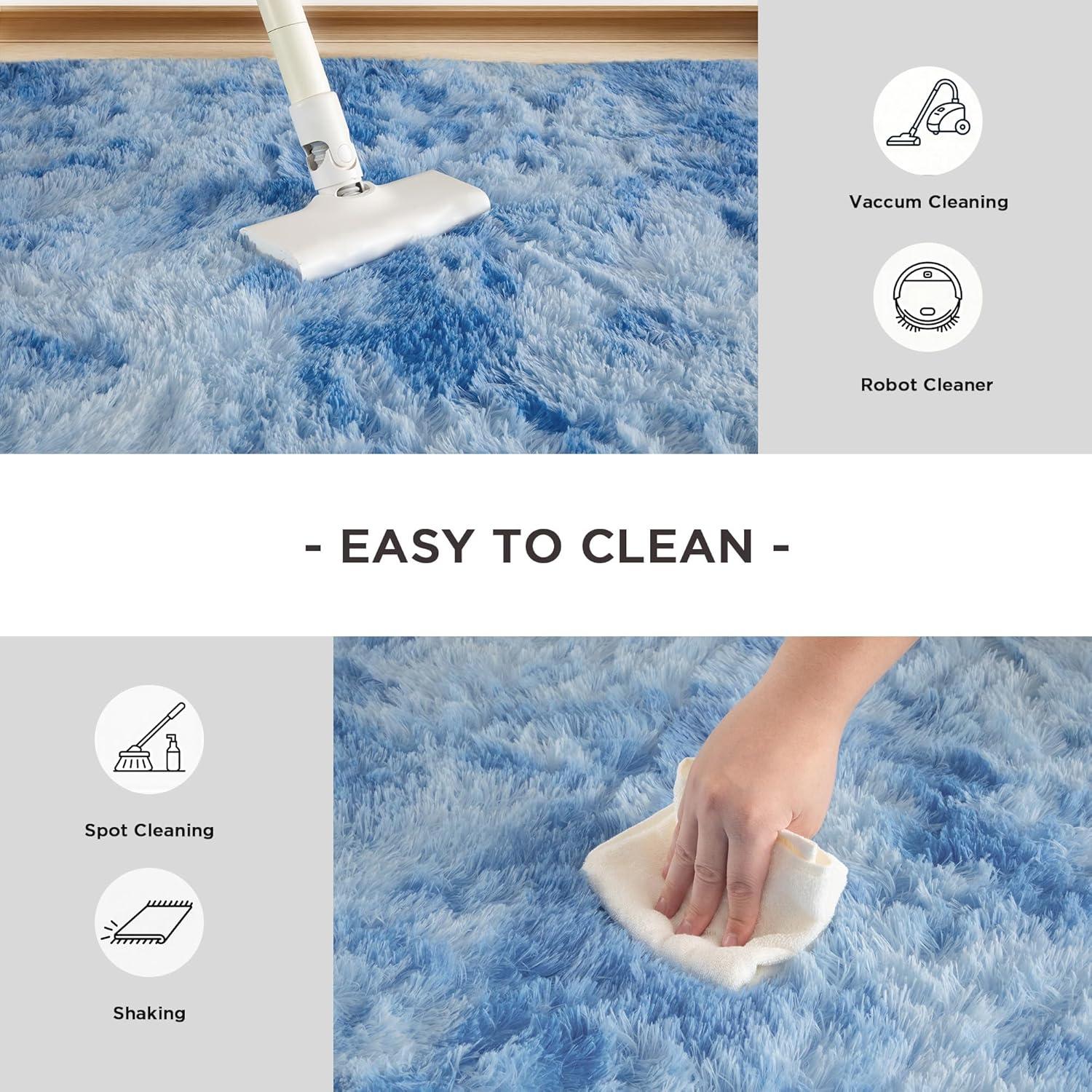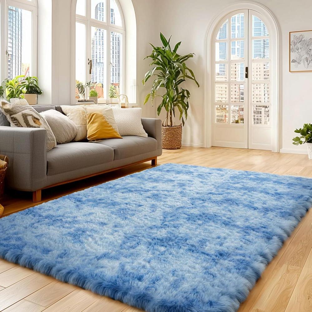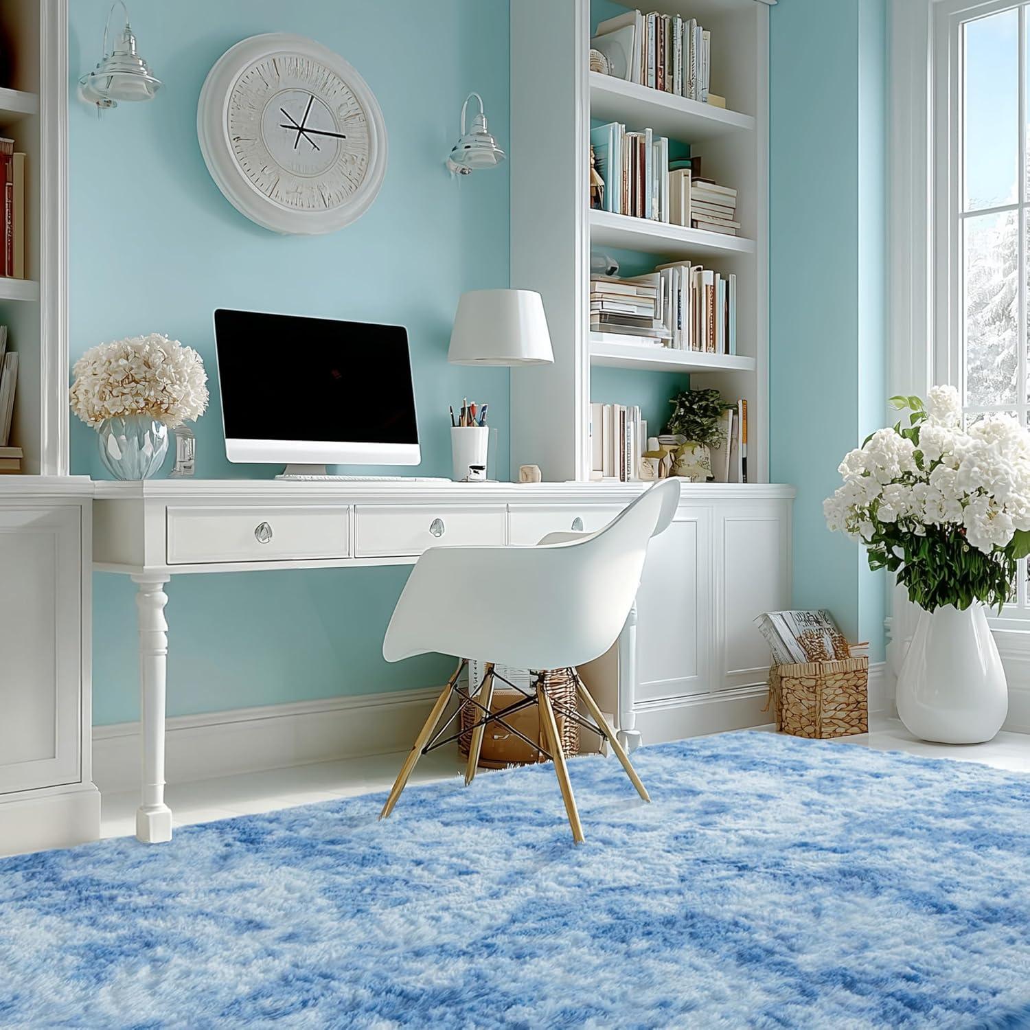 Andency Cream Soft Area Rugs for Living Room Bedroom, 4×6 Fluffy Shaggy Bedside Rug, Non-Slip Large Shag Fuzzy Plush Carpets for Bedroom Kids Dorm Nursery Home Decor Aesthetic(Tie-dyed Blue)