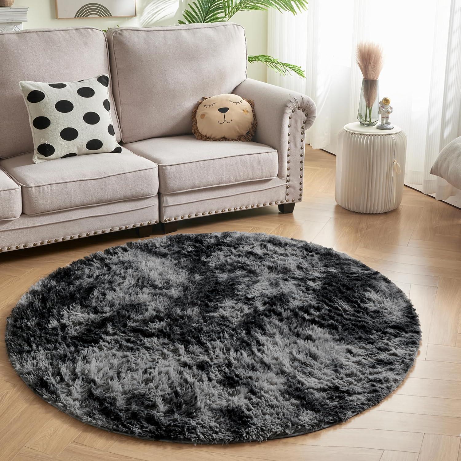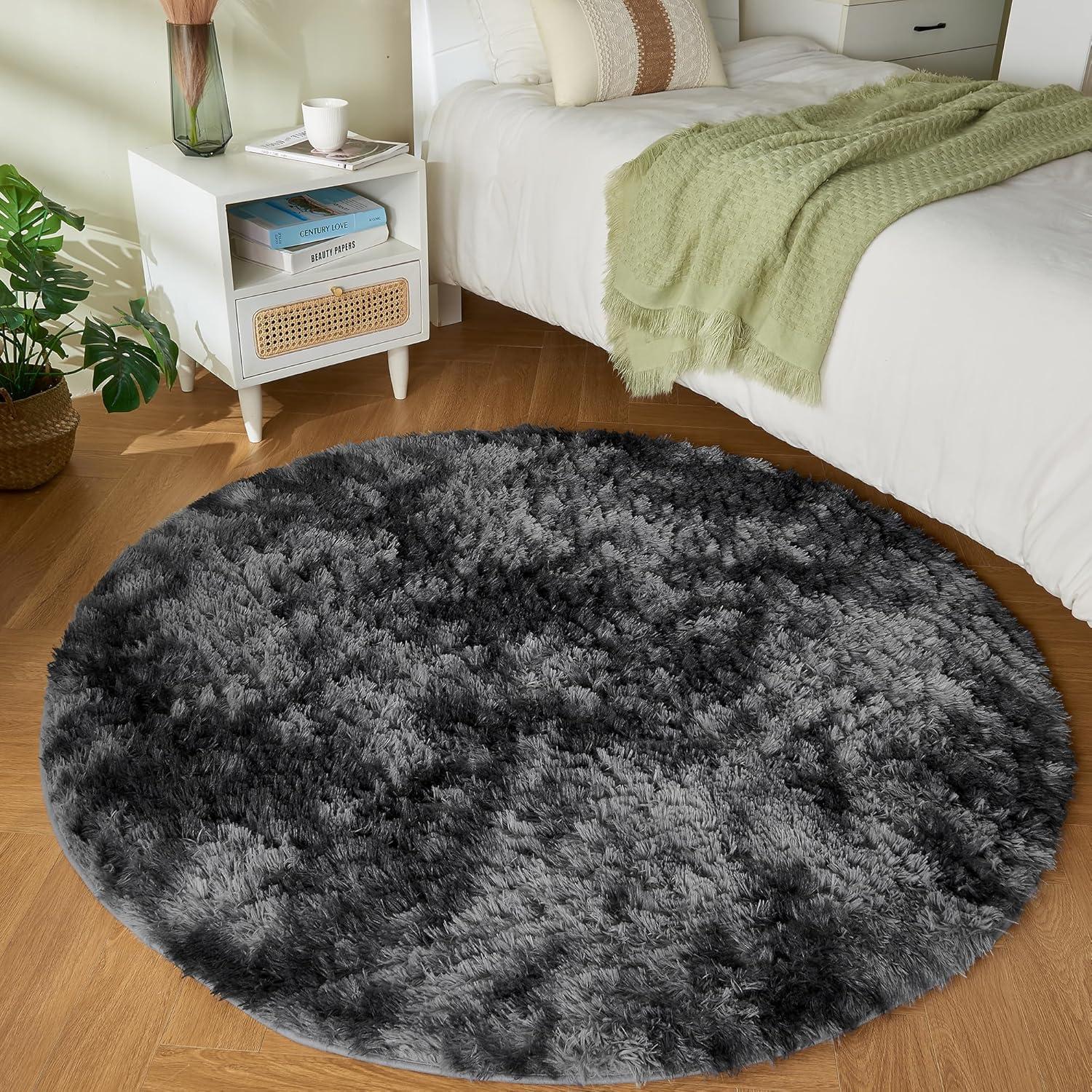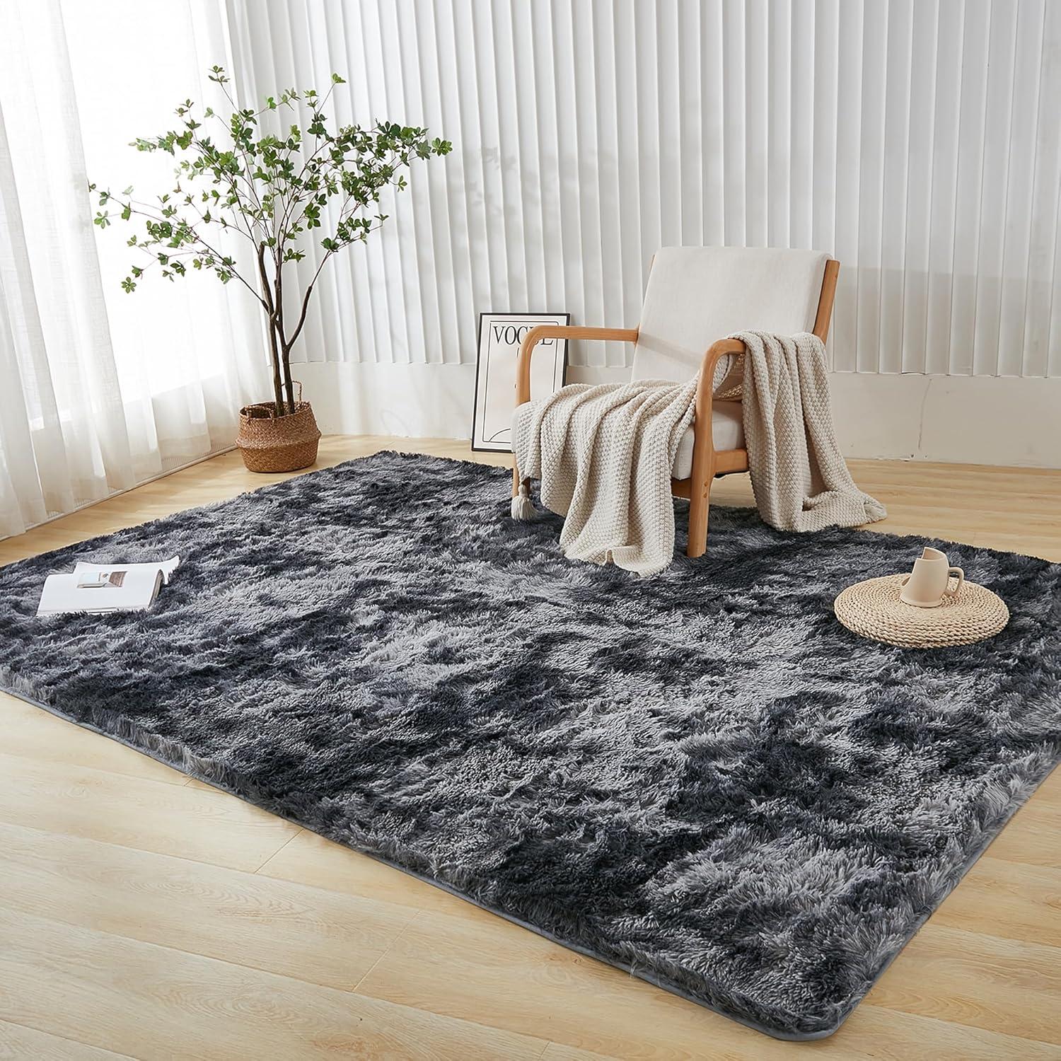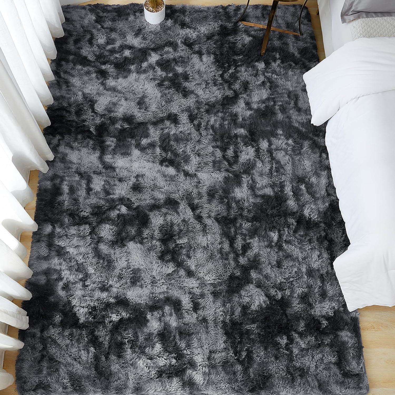 Andency Cream Soft Area Rugs for Living Room Bedroom, 4x6 Fluffy Shaggy Bedside Rug, Non-Slip Large Shag Fuzzy Plush Carpets for Bedroom Kids Dorm Nursery Home Decor Aesthetic(Tie-dyed Dark Grey)