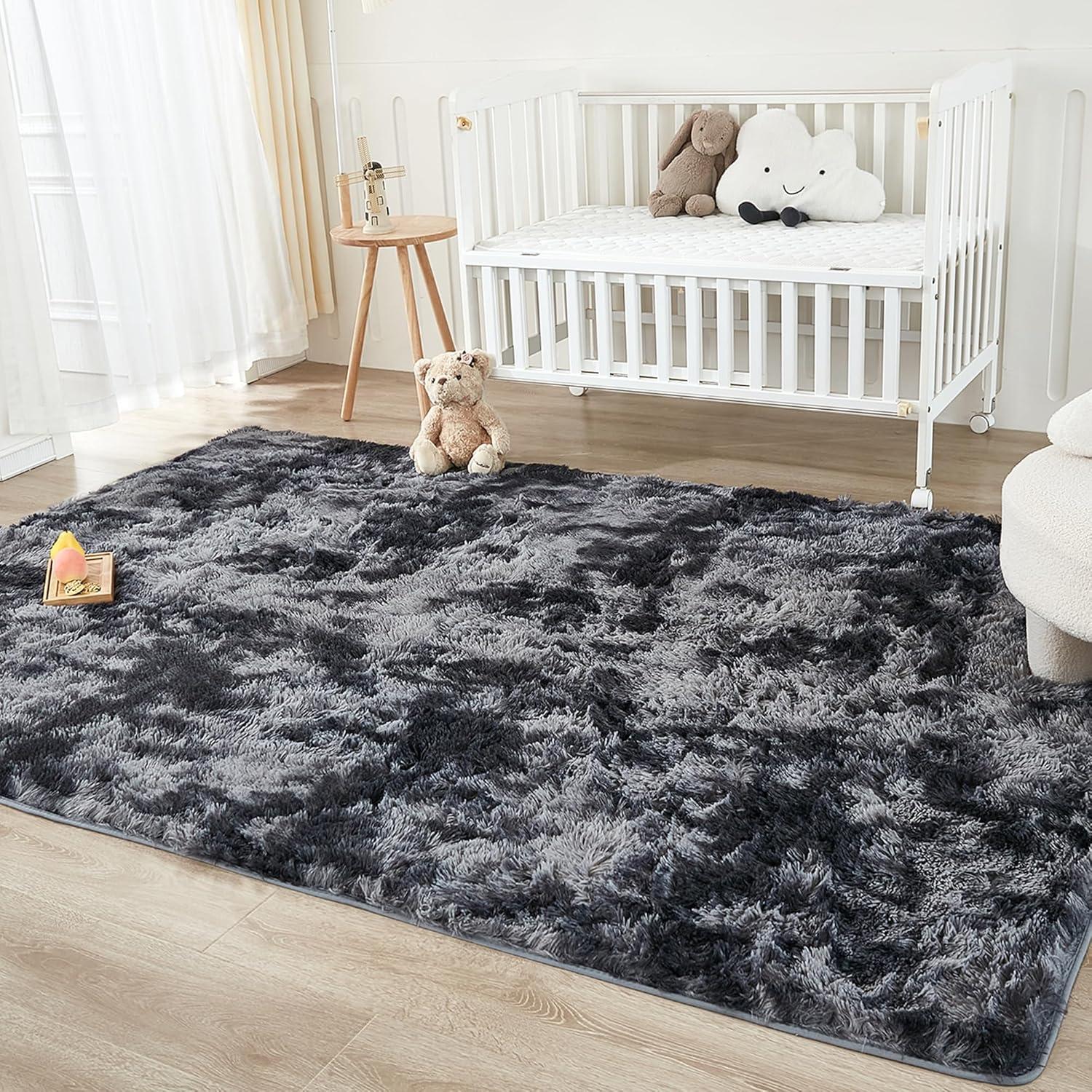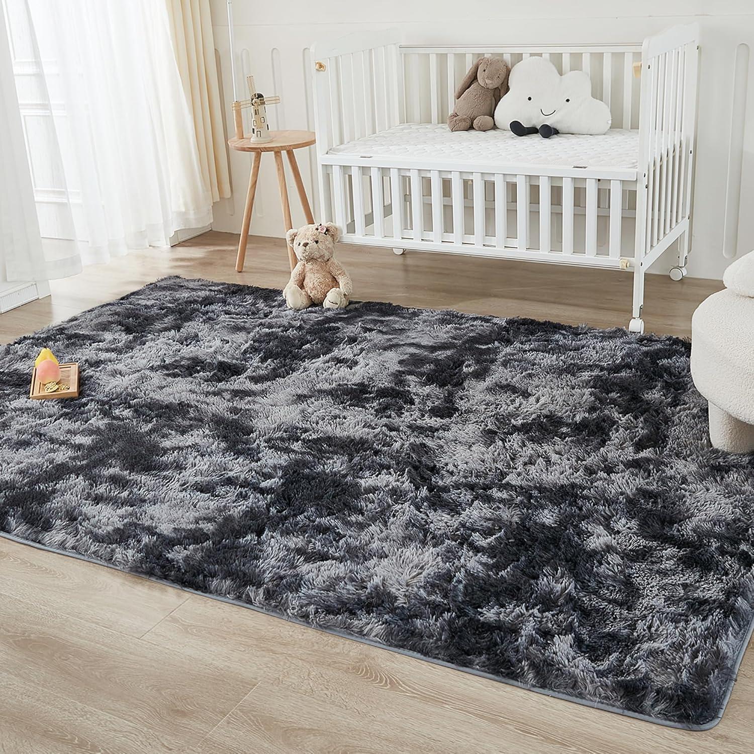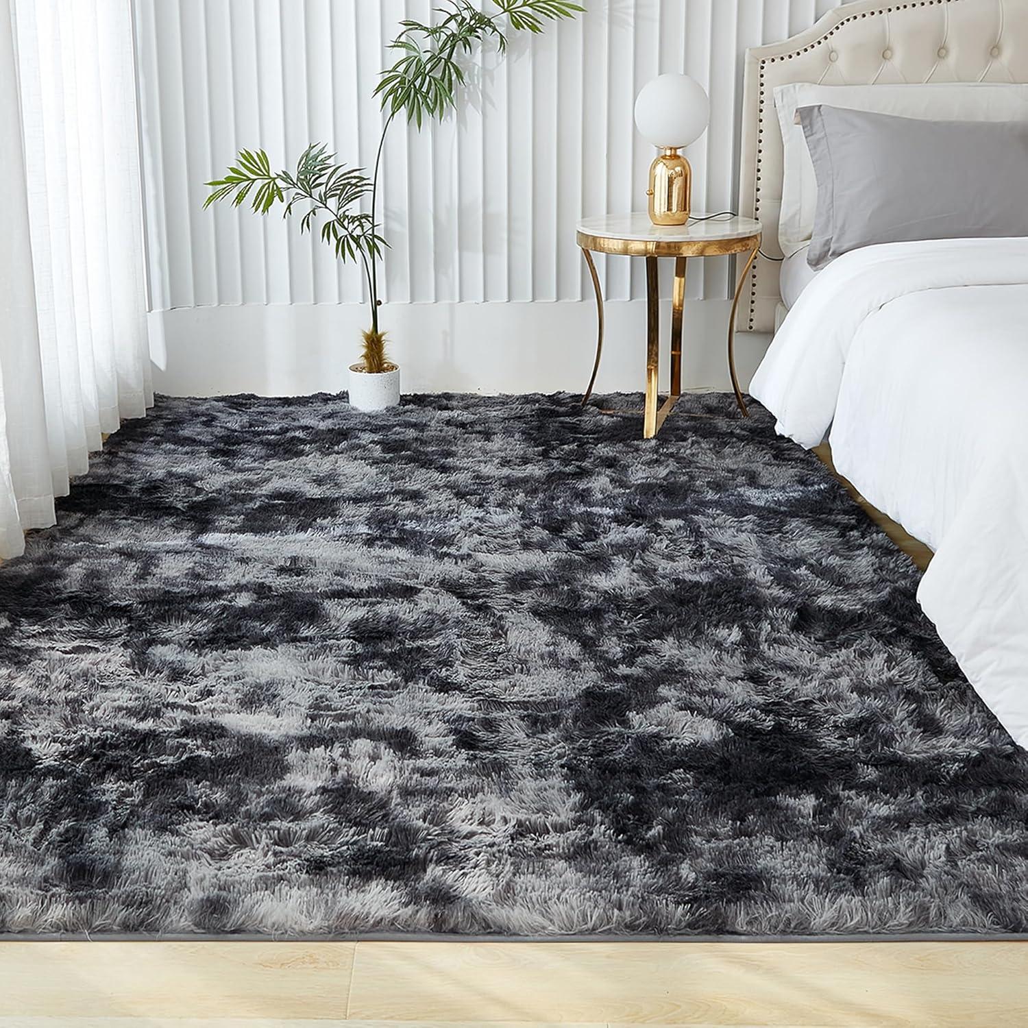 Andency Cream Soft Area Rugs for Living Room Bedroom, 4×6 Fluffy Shaggy Bedside Rug, Non-Slip Large Shag Fuzzy Plush Carpets for Bedroom Kids Dorm Nursery Home Decor Aesthetic(Tie-dyed Dark Grey)