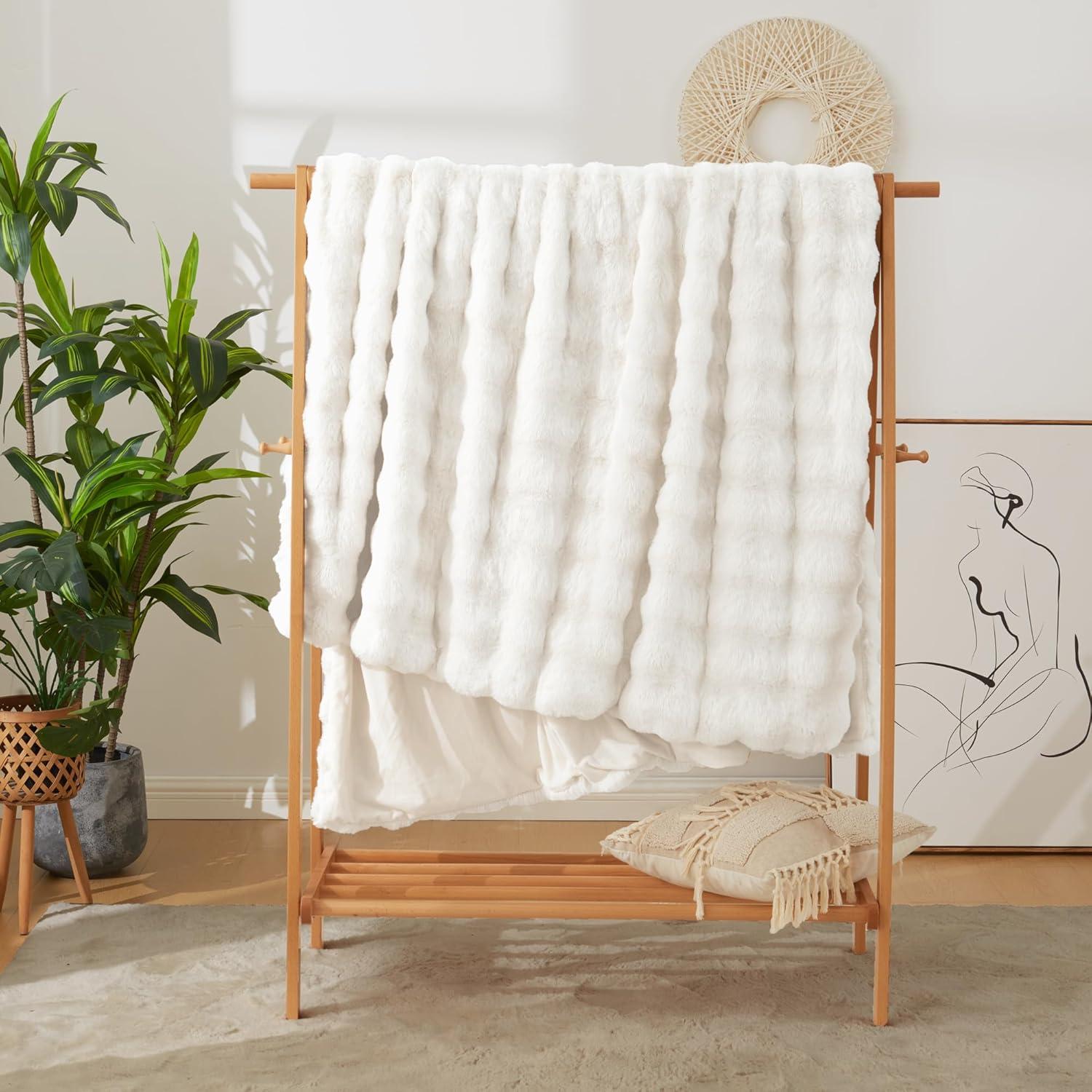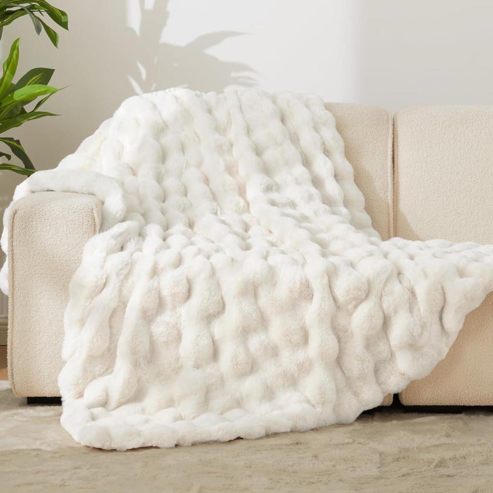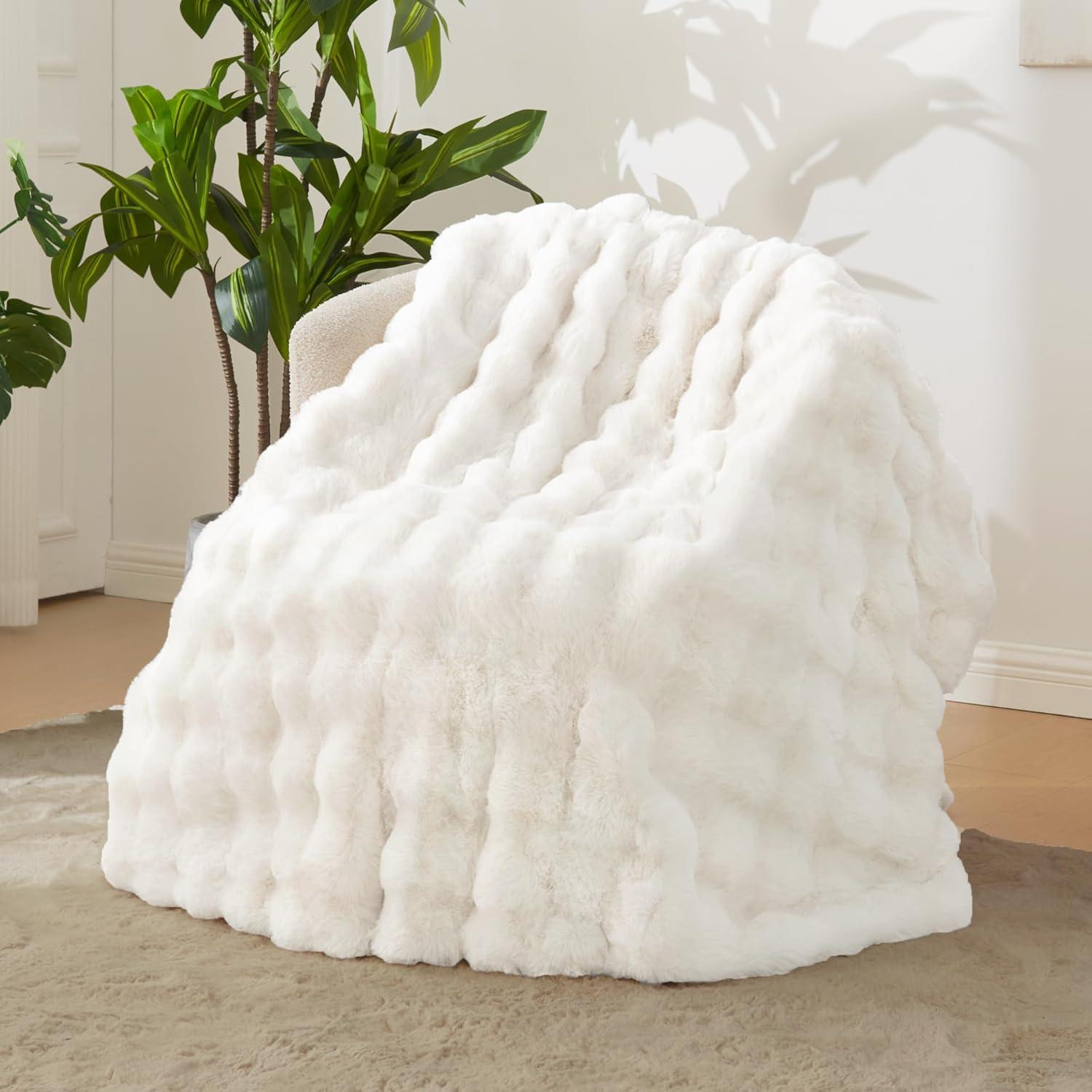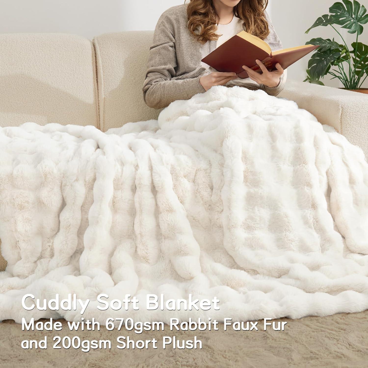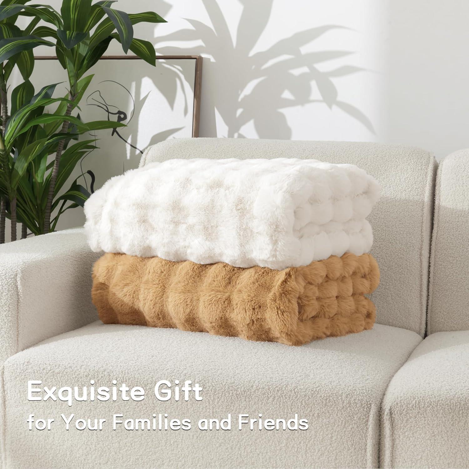Exquisite Chunky Blanket for Gifting: The faux rabbit fur throw blanket with bubble texture ensures maximum warmth and comfort in your bedroom on chilly nights. Anyone who receives this soft blanket will be pleasantly surprised and love it!