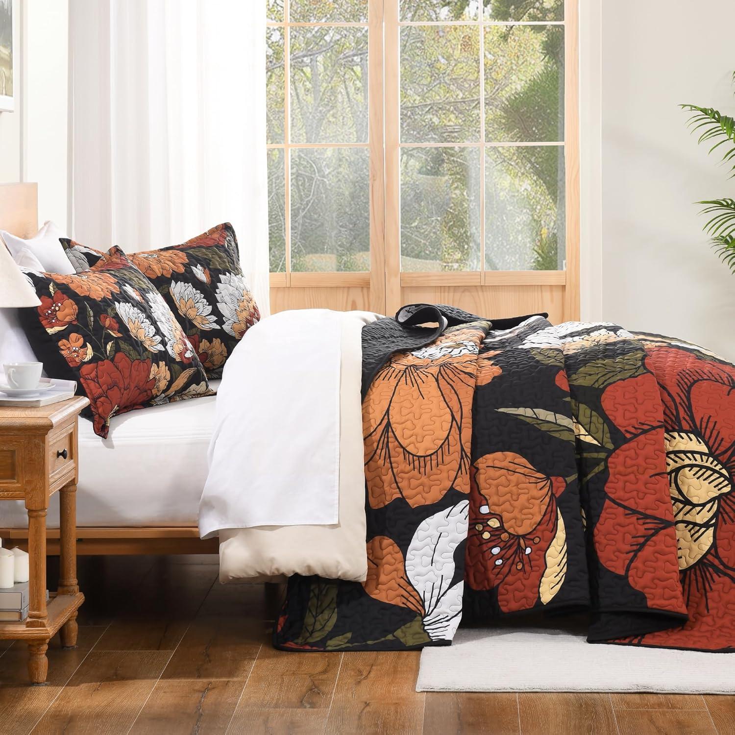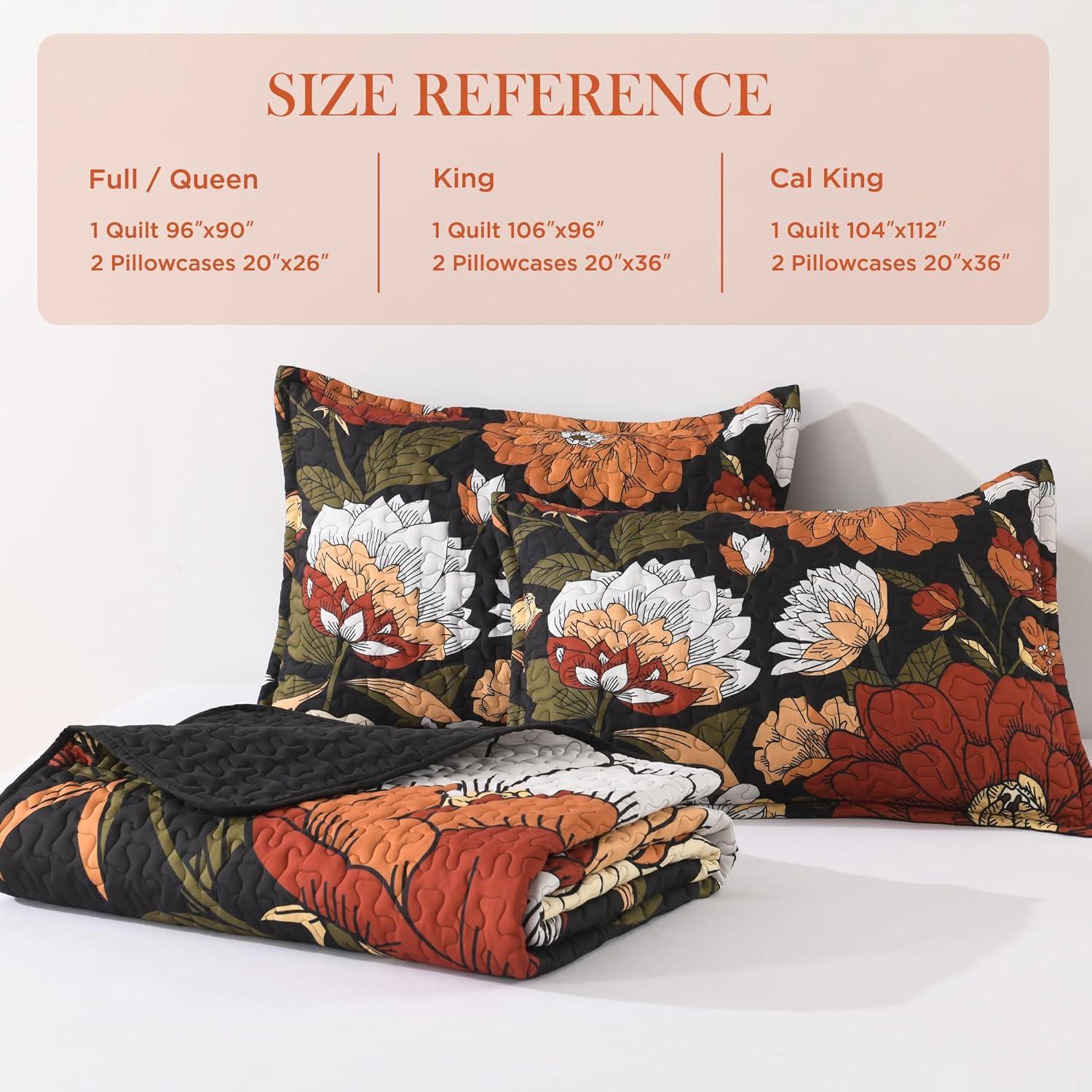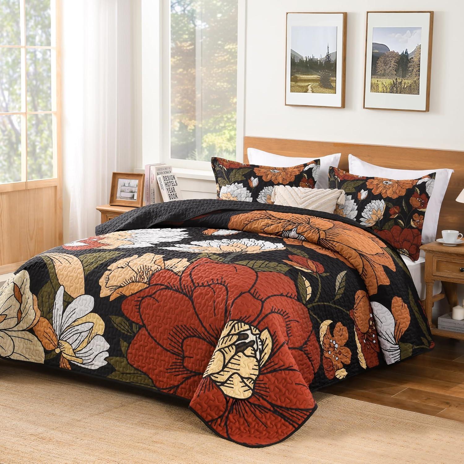 [Boho Floral Quilt]Andency boho floral bedding quilt stands out with its dedicate black botanical design, adding vibrance to your bedroom. Versatile and stylish, it complements any decor, turning your bed into a work of art. Reversible for dual looks: bohemian florals on one side, timeless solid white on the other. Unlike common designs, our farmhouse bedspread set pops with a vintage printed flowers and leaves—delivering eye-catching vibrant style and touchable softness in one.