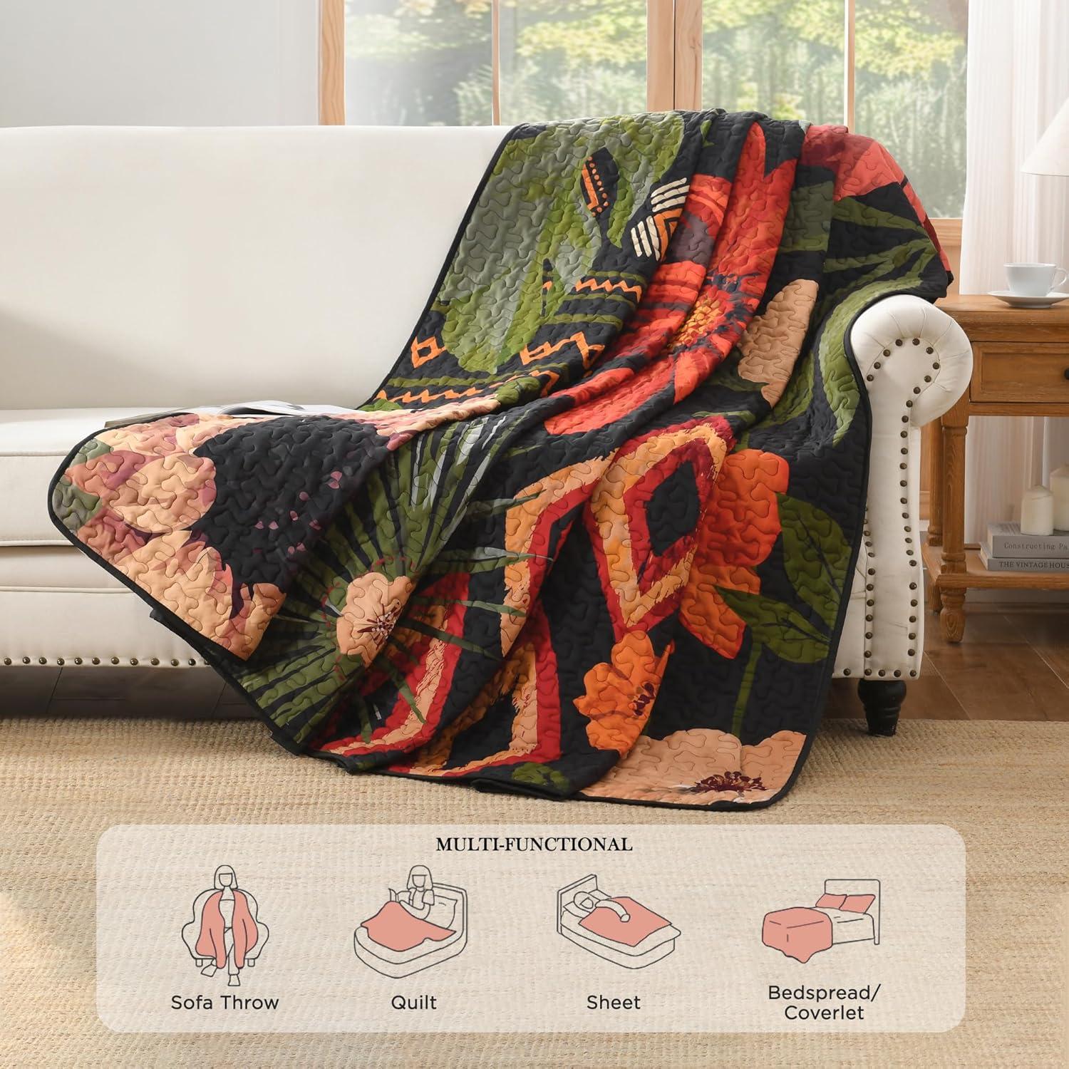 [All-Season Versatility]This elegant floral bedding quilt set is designed for year-round use. Use it as a lightweight quilt, bedspread or coverlet in summer, layer it for extra warmth and beauty in winter, or keep it as a cozy throw blanket. This boho bedspread effortlessly fits every need, merging style and coziness season after season. It will be suitable and upscale for any room in your house, such as a bedroom, living room, guest room, children's room.