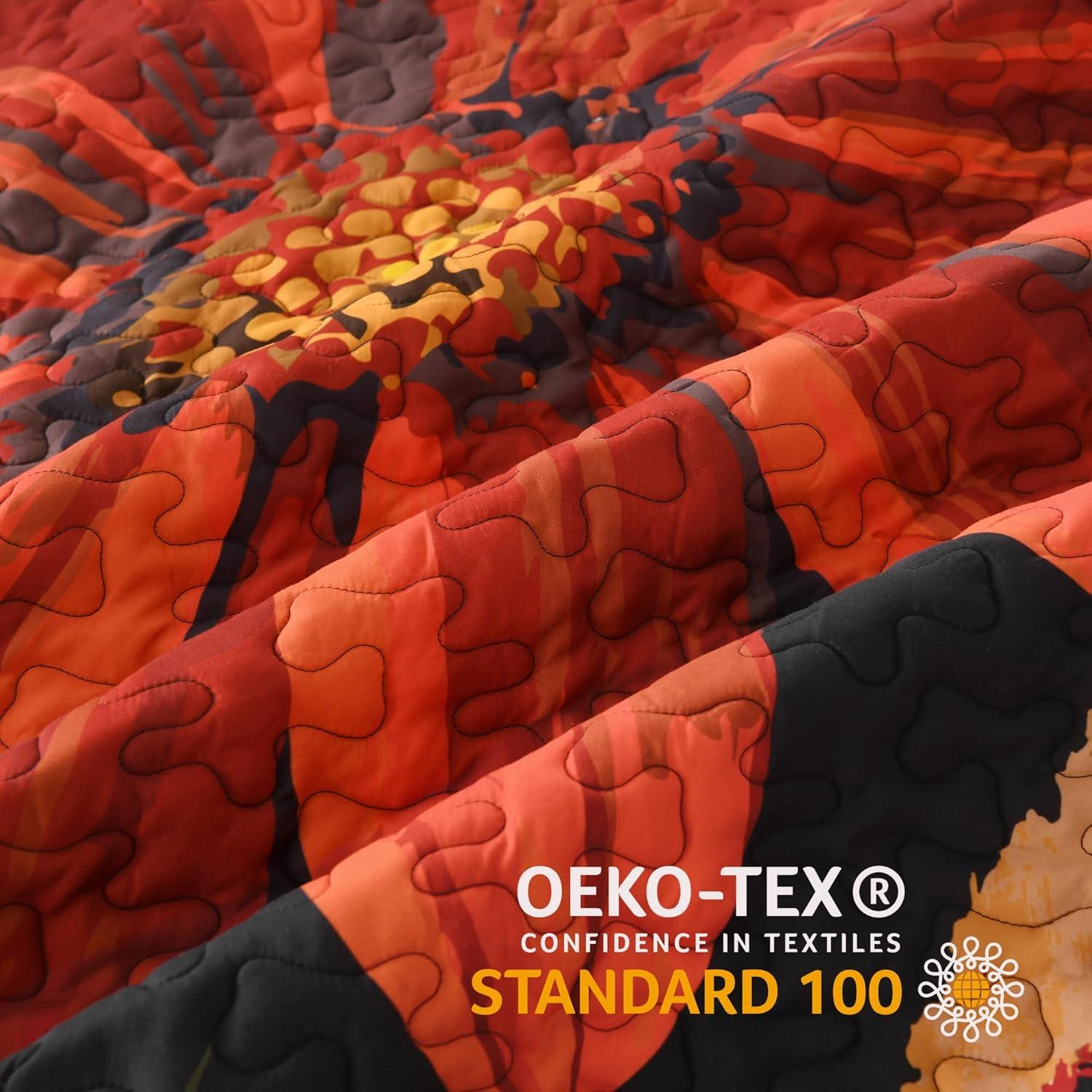 [Easy Care]Machine wash gently and cycle with cold water. Do not bleach. The king quilt resists fading, shrinking, and wrinkling, maintaining its softness and shape wash after wash for hassle-free maintenance. Our king bedspread comforter cover may come slightly wrinkled because of the vacuum sealed bag. Please put it in the sun and tap gently for fluffy.