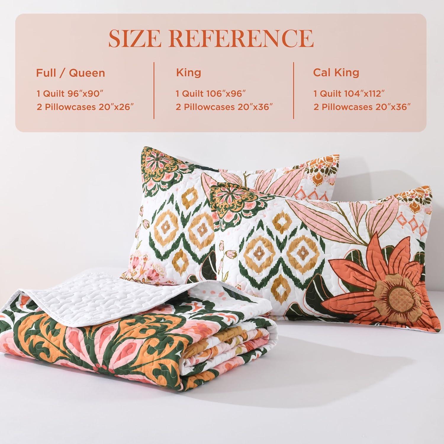 [All-Season Versatility]This elegant floral bedding quilt set is designed for year-round use. Use it as a lightweight quilt, bedspread or coverlet in summer, layer it for extra warmth and beauty in winter, or keep it as a cozy throw blanket. This boho bedspread effortlessly fits every need, merging style and coziness season after season. It will be suitable and upscale for any room in your house, such as a bedroom, living room, guest room, children's room.