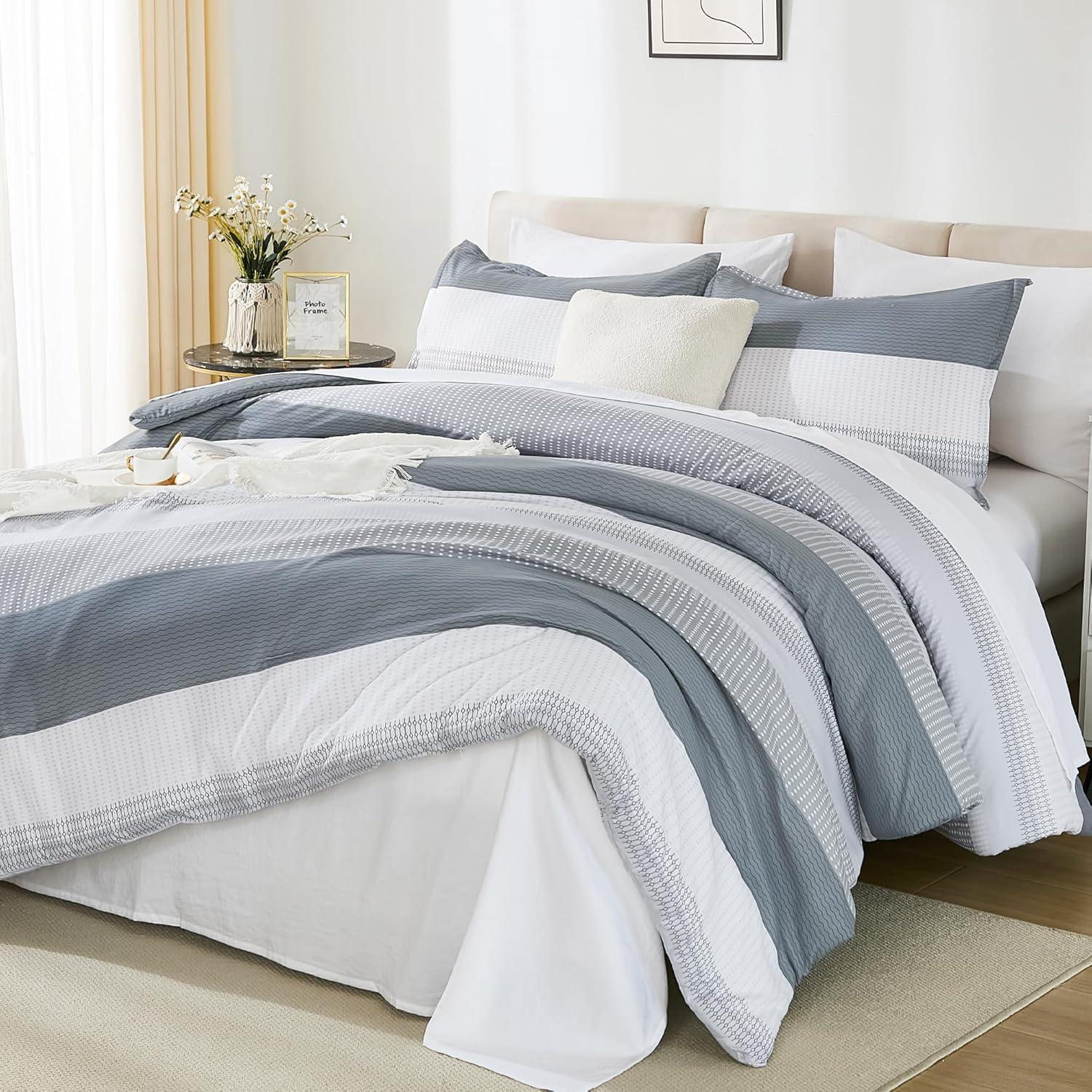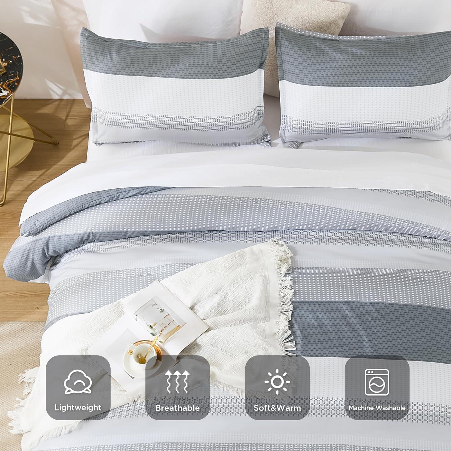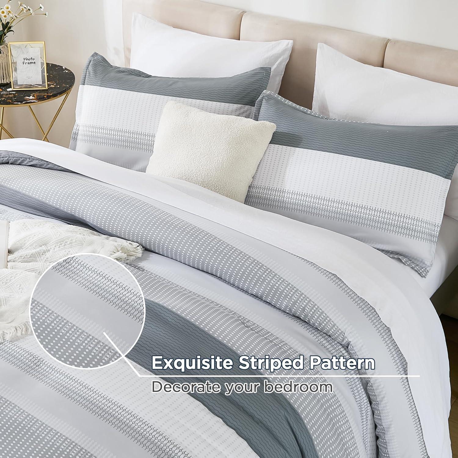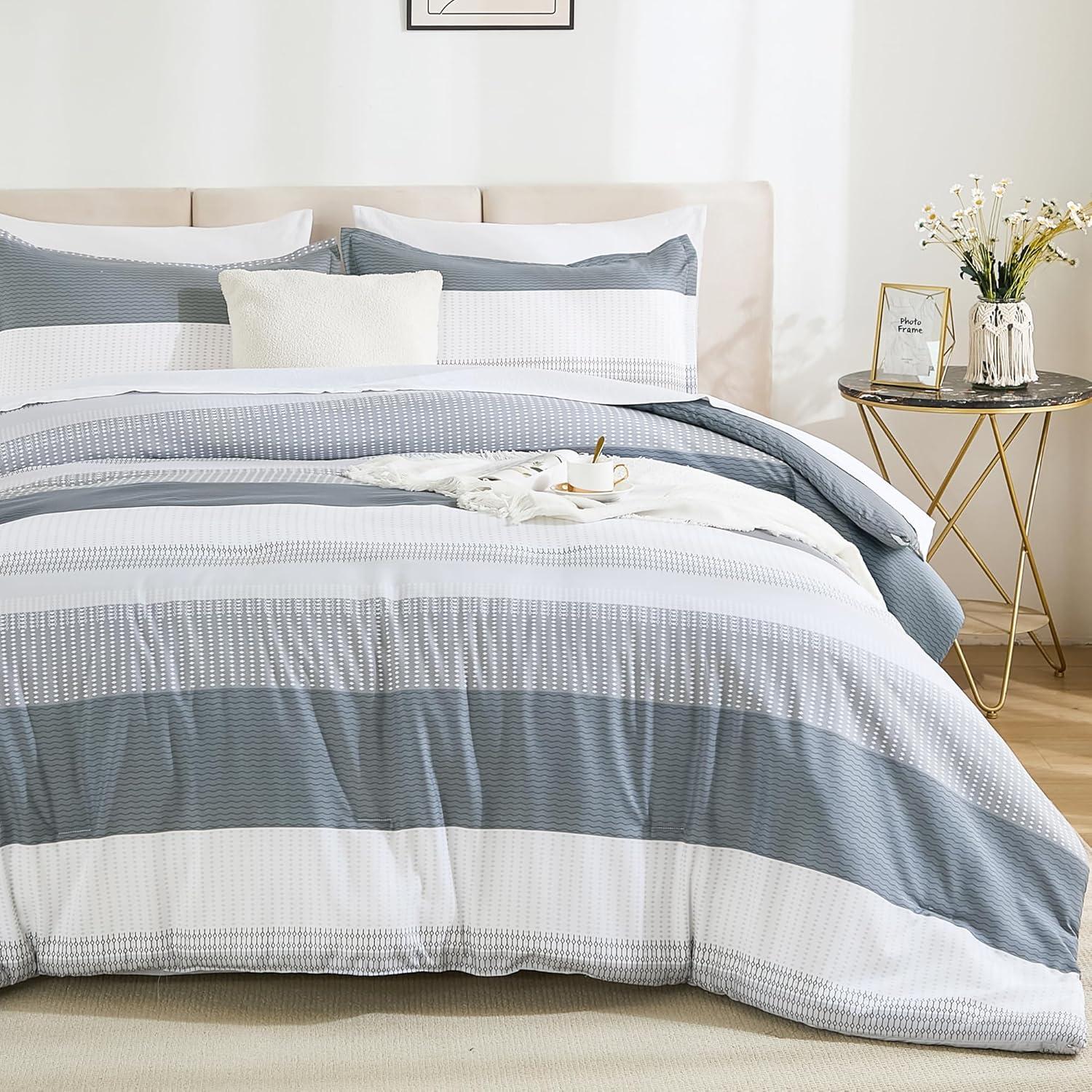 【Premium Microfiber】: Our striped comforter is crafted with 100% breathable high-quality microfiber filling, offering excellent fluffy performance and a lightweight feel. It provides a cloud-like sleep experience for sleepers