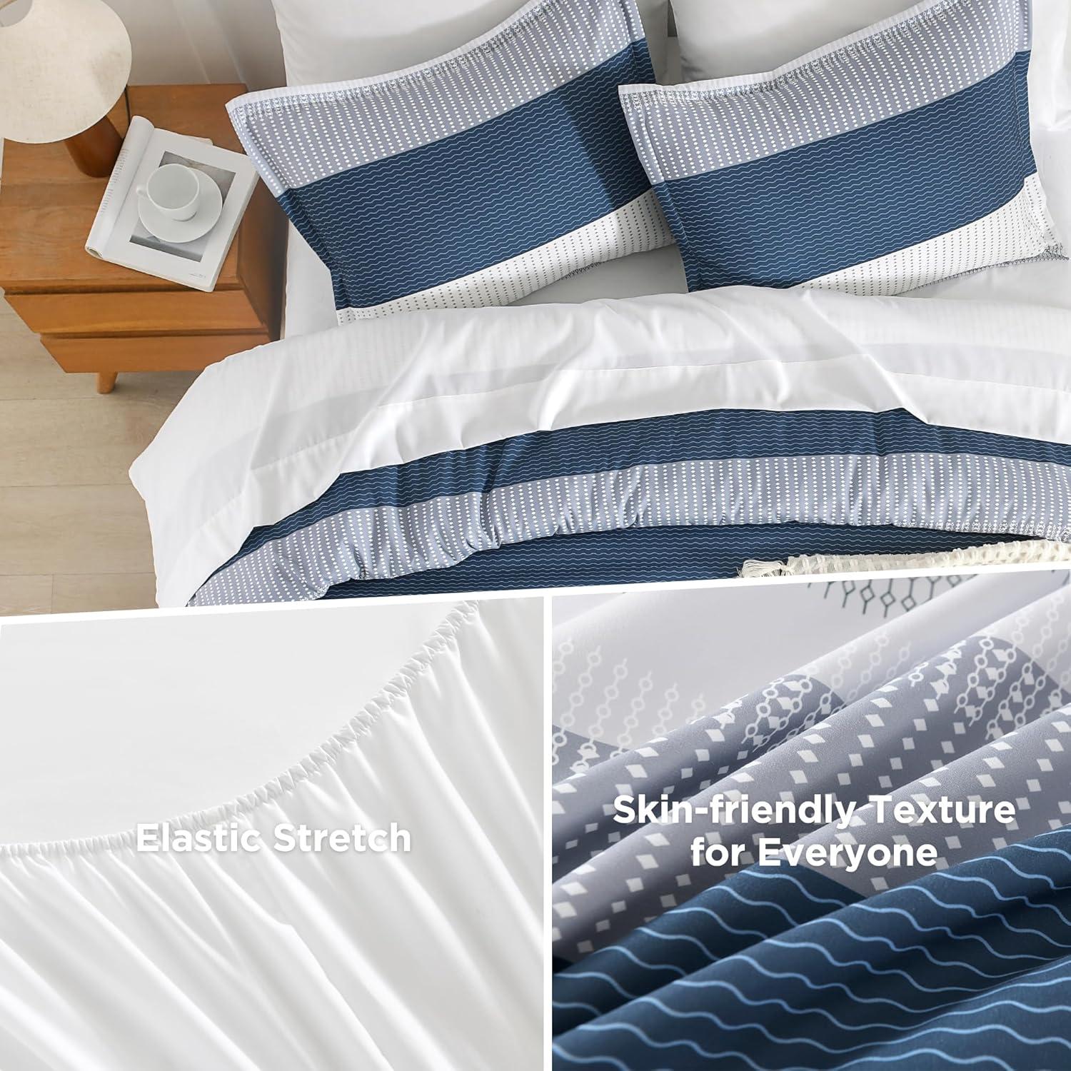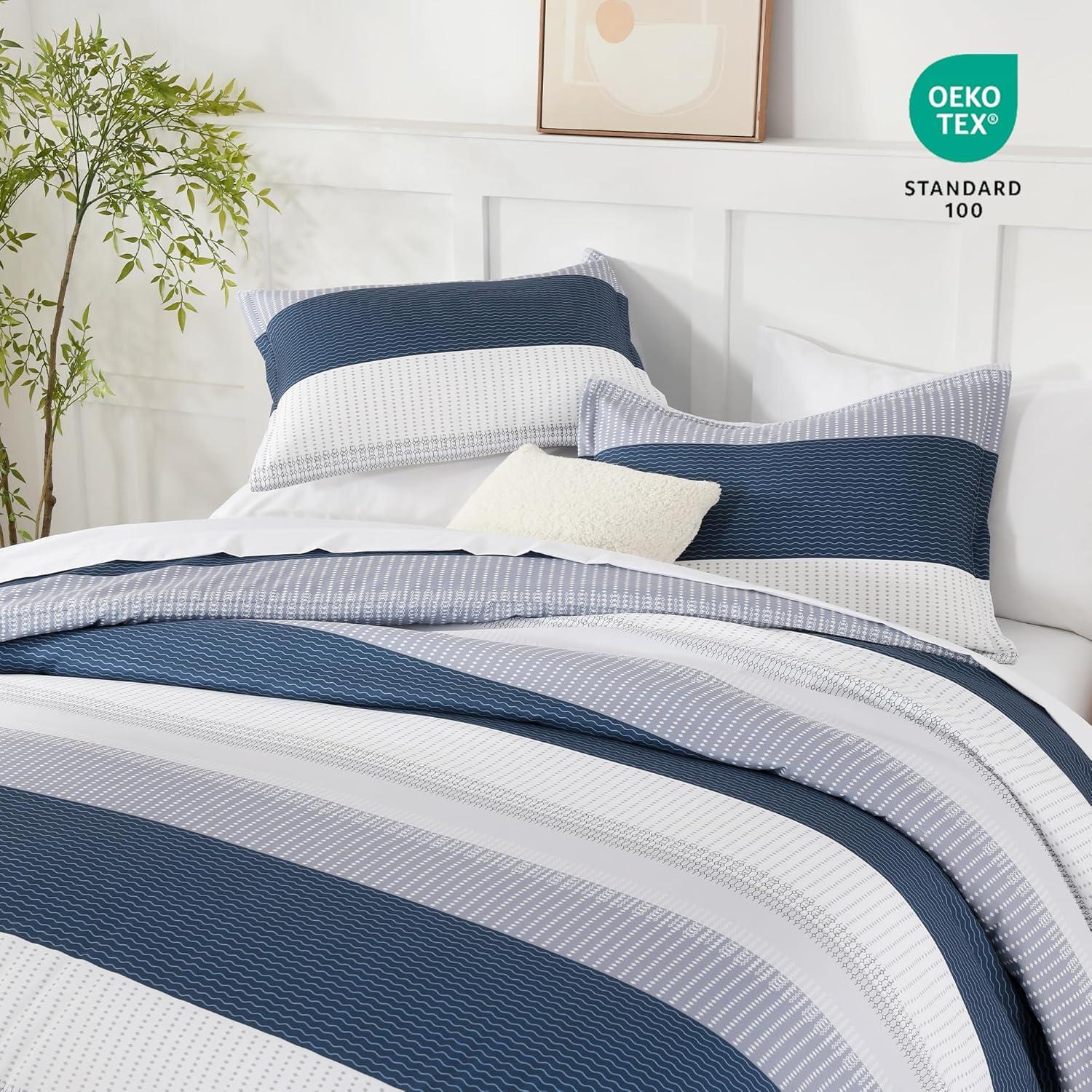 【Excellent Craftsmanship】: The hidden tight stitching process of striped bedding sets ensures the filler remains securely in place, enhancing its durability. The use of reactive printing and dyeing technology ensures that the color of the comforter sets bright and prevents fading
