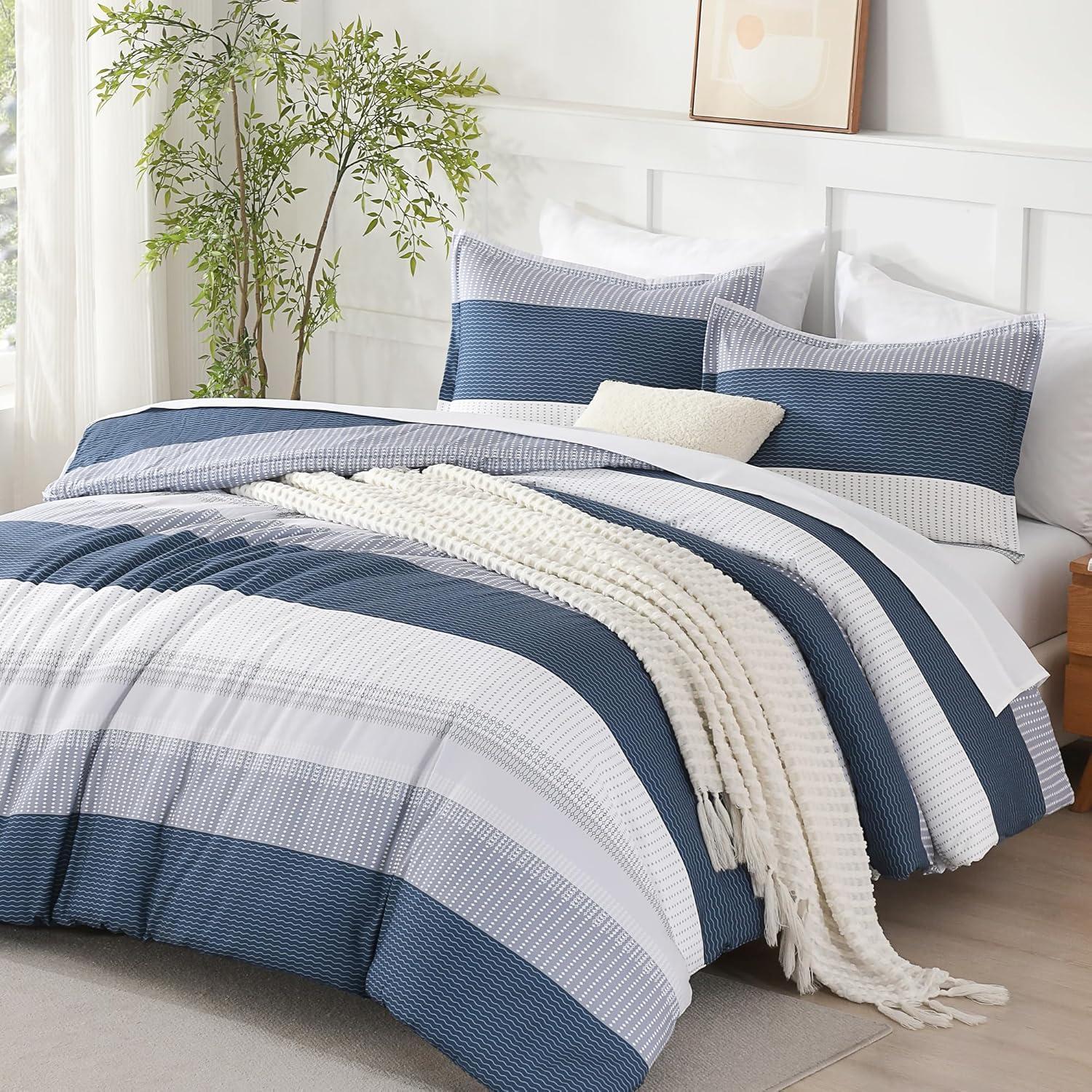【Premium Microfiber】: Our striped comforter is crafted with 100% breathable high-quality microfiber filling, offering excellent fluffy performance and a lightweight feel. It provides a cloud-like sleep experience for sleepers