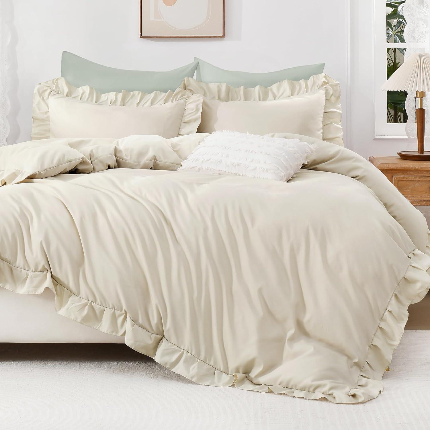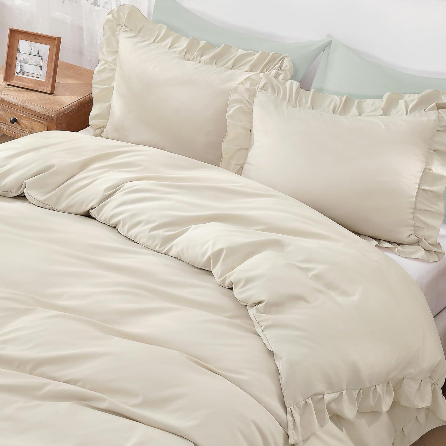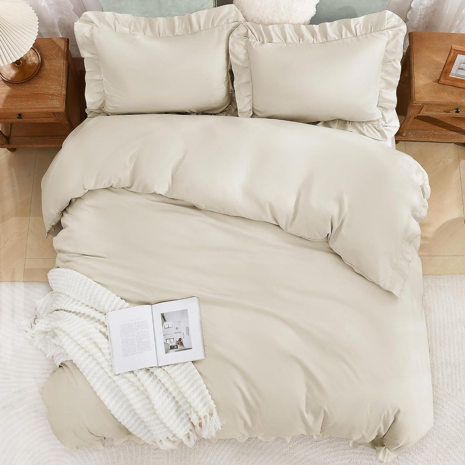 Elegant Ruffle Design:Enhance your bedroom with this duvet cover featuring delicate vintage ruffle detailing; The elegant fringe adds sophistication to farmhouse, shabby chic, and French country decor styles