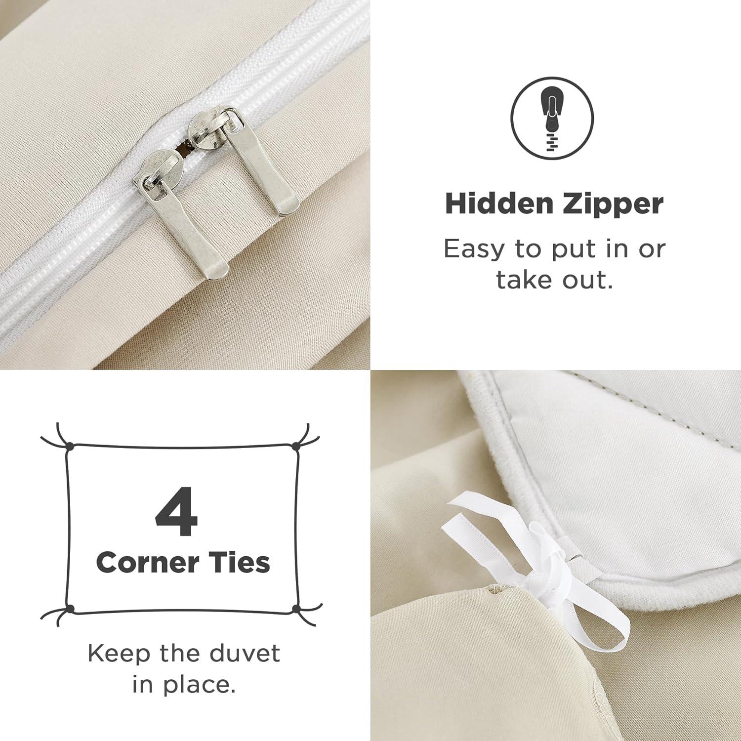 Convenient Zipper & Corner Ties:Features a hidden zipper for easy comforter insertion and four interior ties to secure your duvet in place; The duvet cover stays perfectly positioned all night long