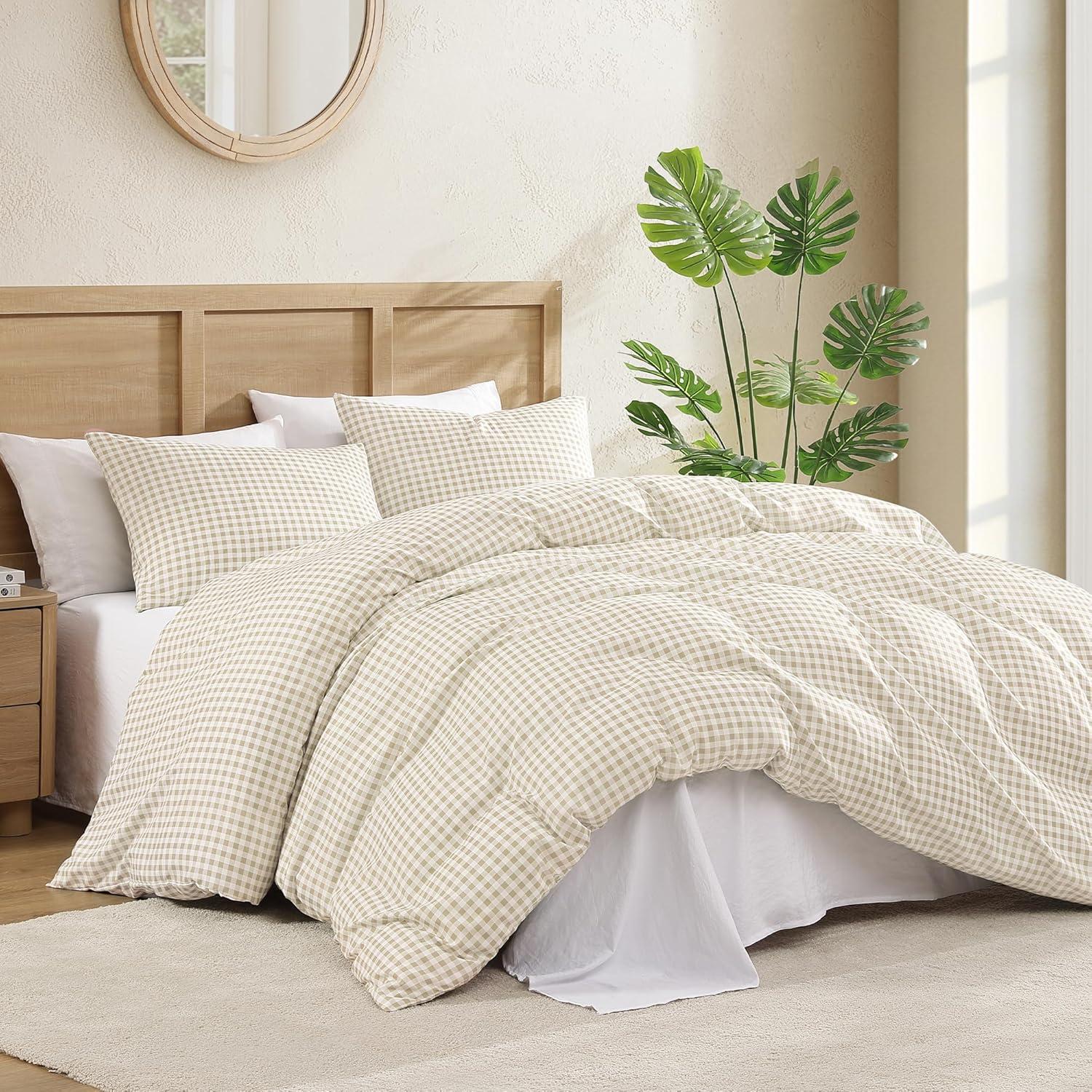 Exceptional Softness: Crafted from premium pre-washed microfiber, this gingham duvet cover full size provides exceptional breathability and ultra-soft comfort for a restful night's sleep. Lightweight yet cozy, it's perfect for year-round use.