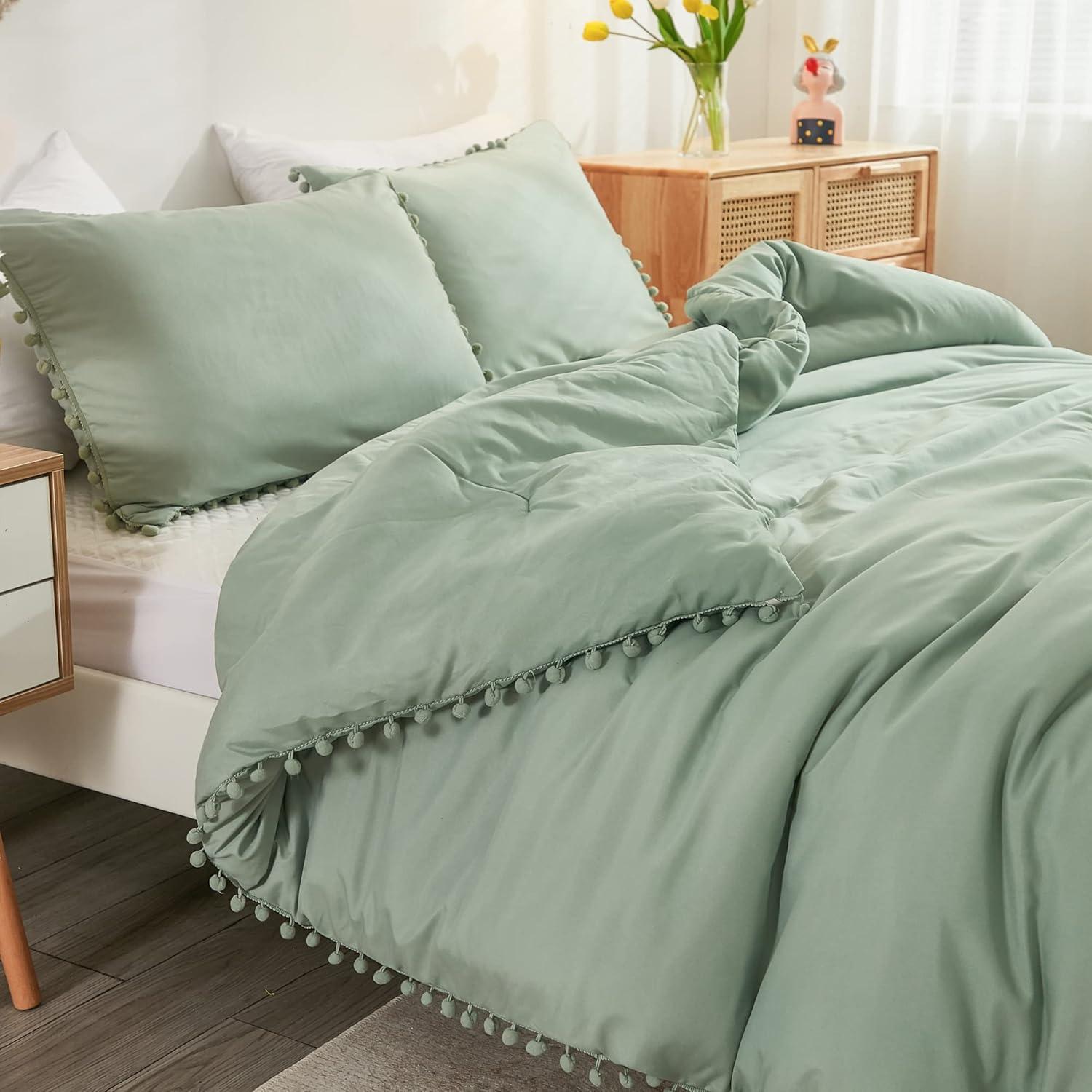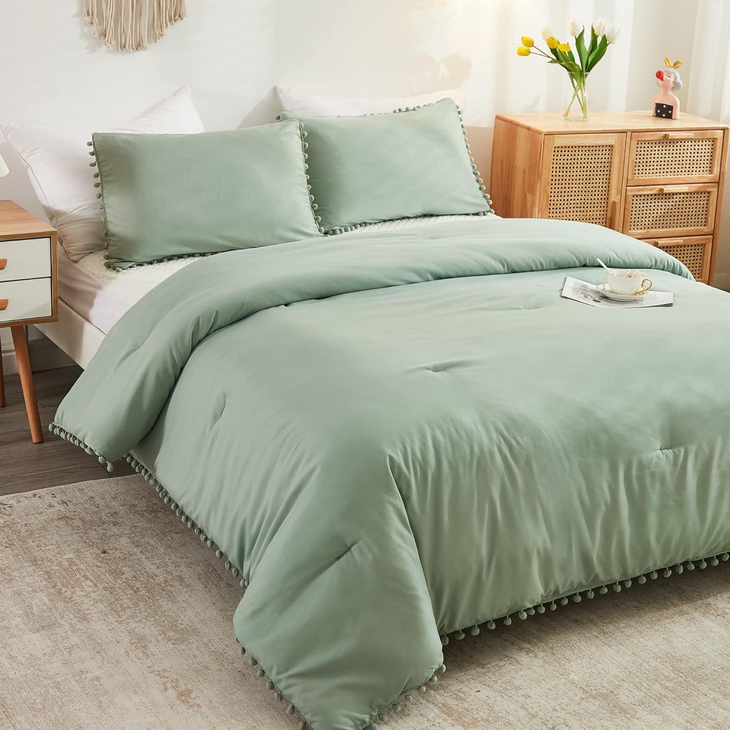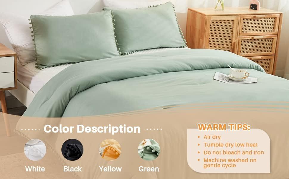 [ Cute Pompoms Design] Each pompom is handmade to ensure a beautiful appearance and outstanding quality, bringing you the visual enjoyment of beauty. The decorative fringe pom on the edge of the comforter added a whimsical cuteness to the bedroom. We believe you may be obsessed with this sweet set. Andency Comforter with Pompoms will be a great option for decorating your home.