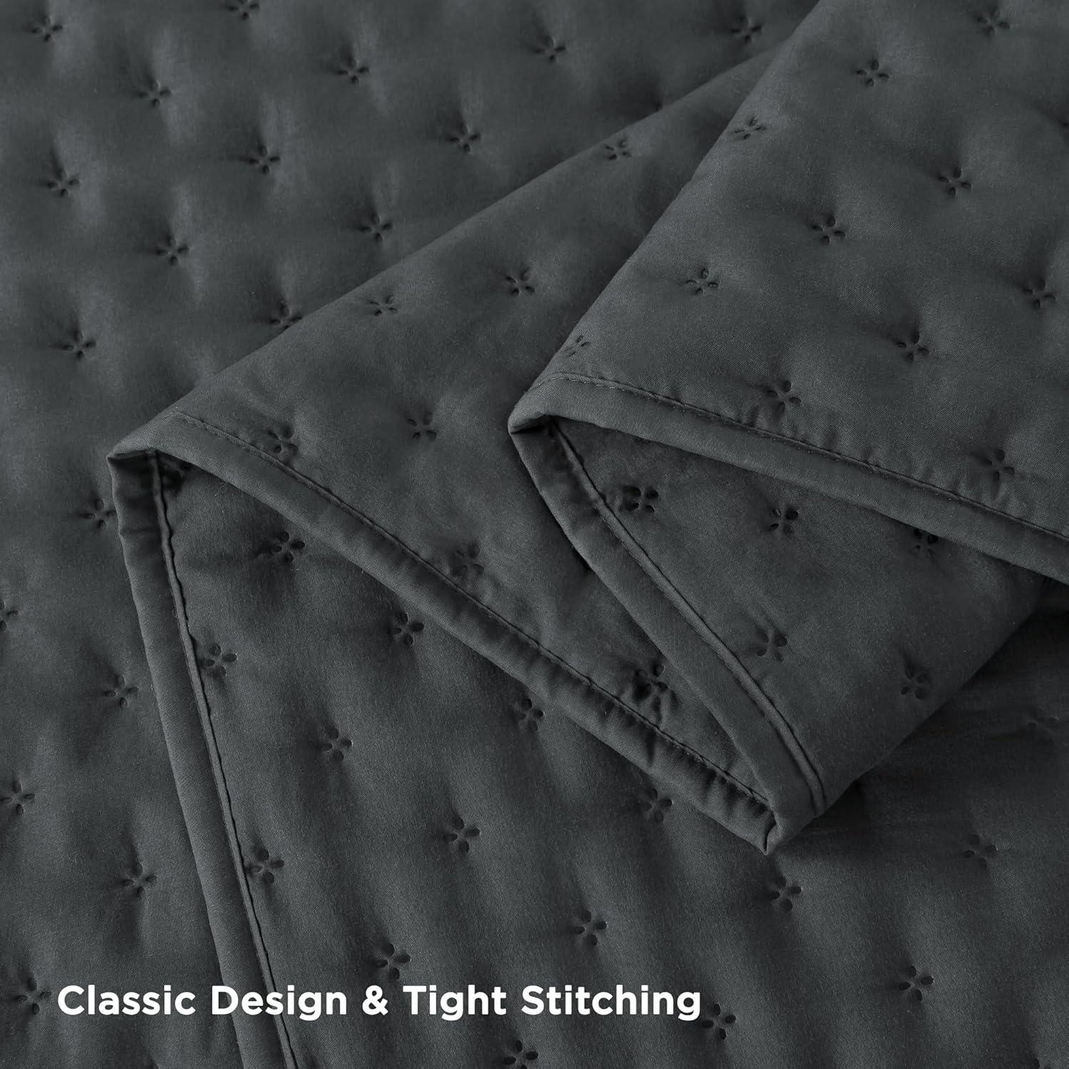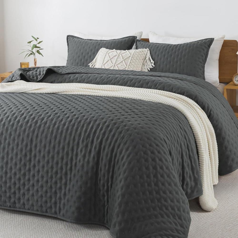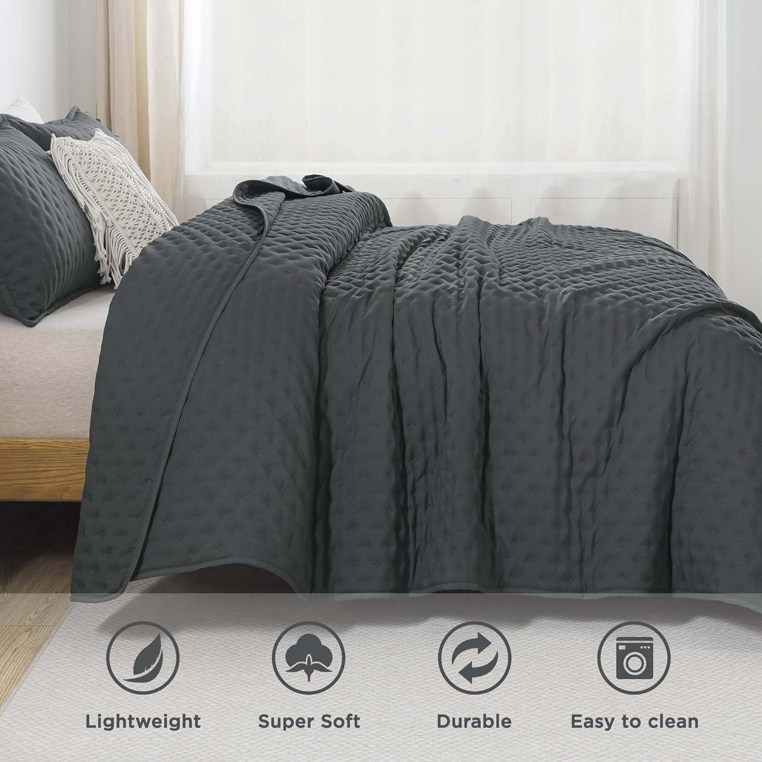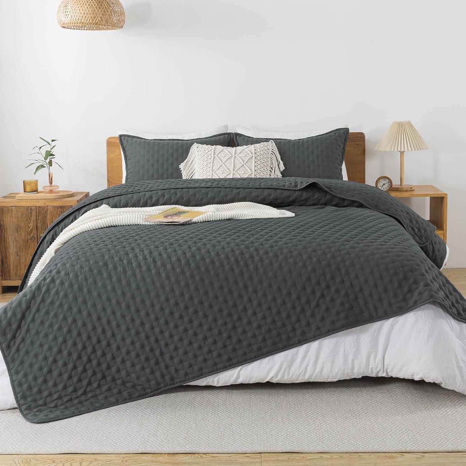 imageAndency Green King Size Quilt Bedding Set 106x96 Inch 3 Pieces Soft Lightweight Bedspread Coverlet Boho Summer Quilt King Size for All Season1 Quilt 2 Pillow ShamsDrak Grey