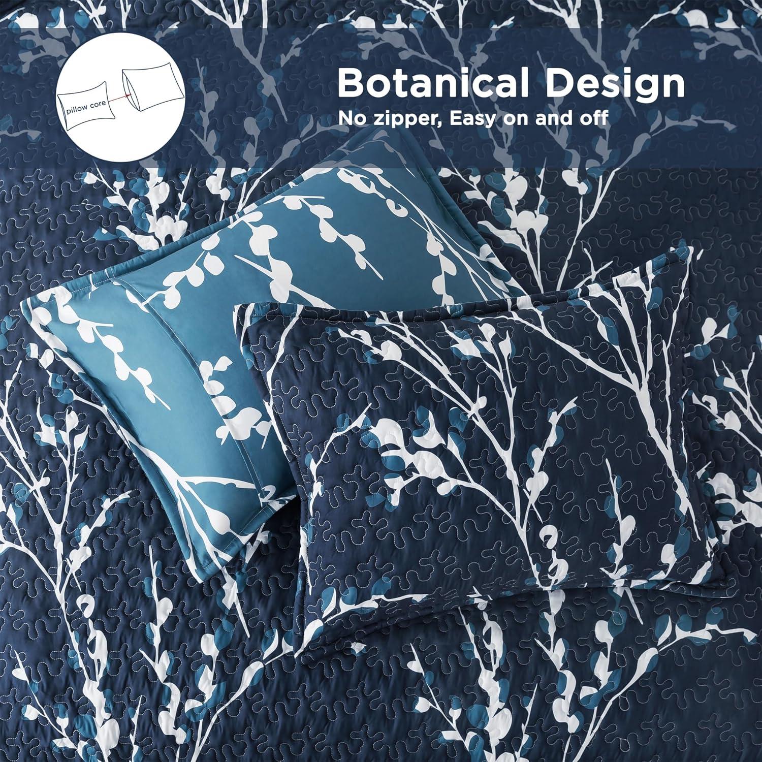 imageAndency Green Quilt Queen Size 96x90 Inch 3 Pieces Floral Lightweight Bedspread Microfiber Reversible Flower Quilted Coverlet with 2 Pillowcases for Men WomenNavy
