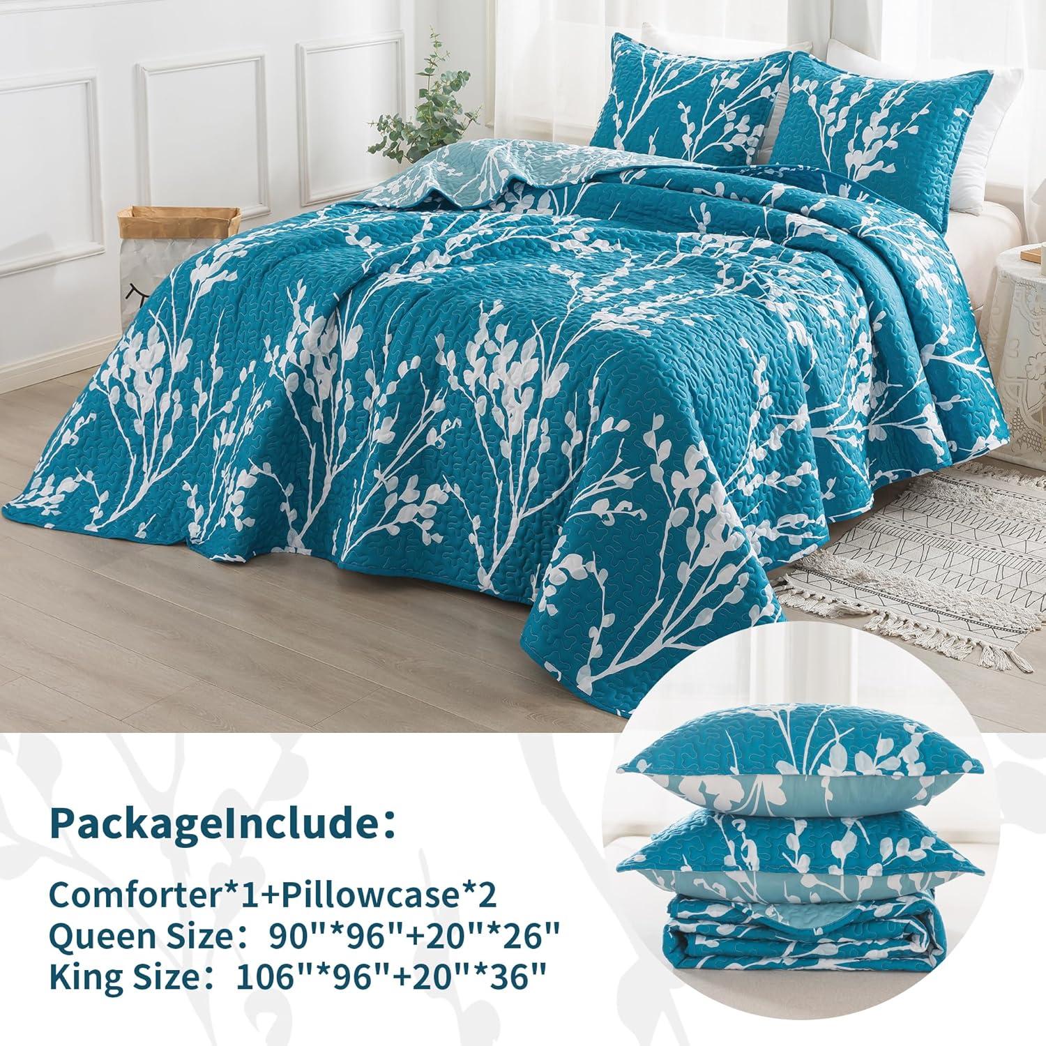 What You Can Get: The branch quilt set includes 1 quilt (96×90 inch) and 2 standard pillowcases (20×26 inch) without pillow-insert. Because of the Vacuum-package, please wash and tumble dry it at Low Heat or expose it to sunlight and tap it gently.
