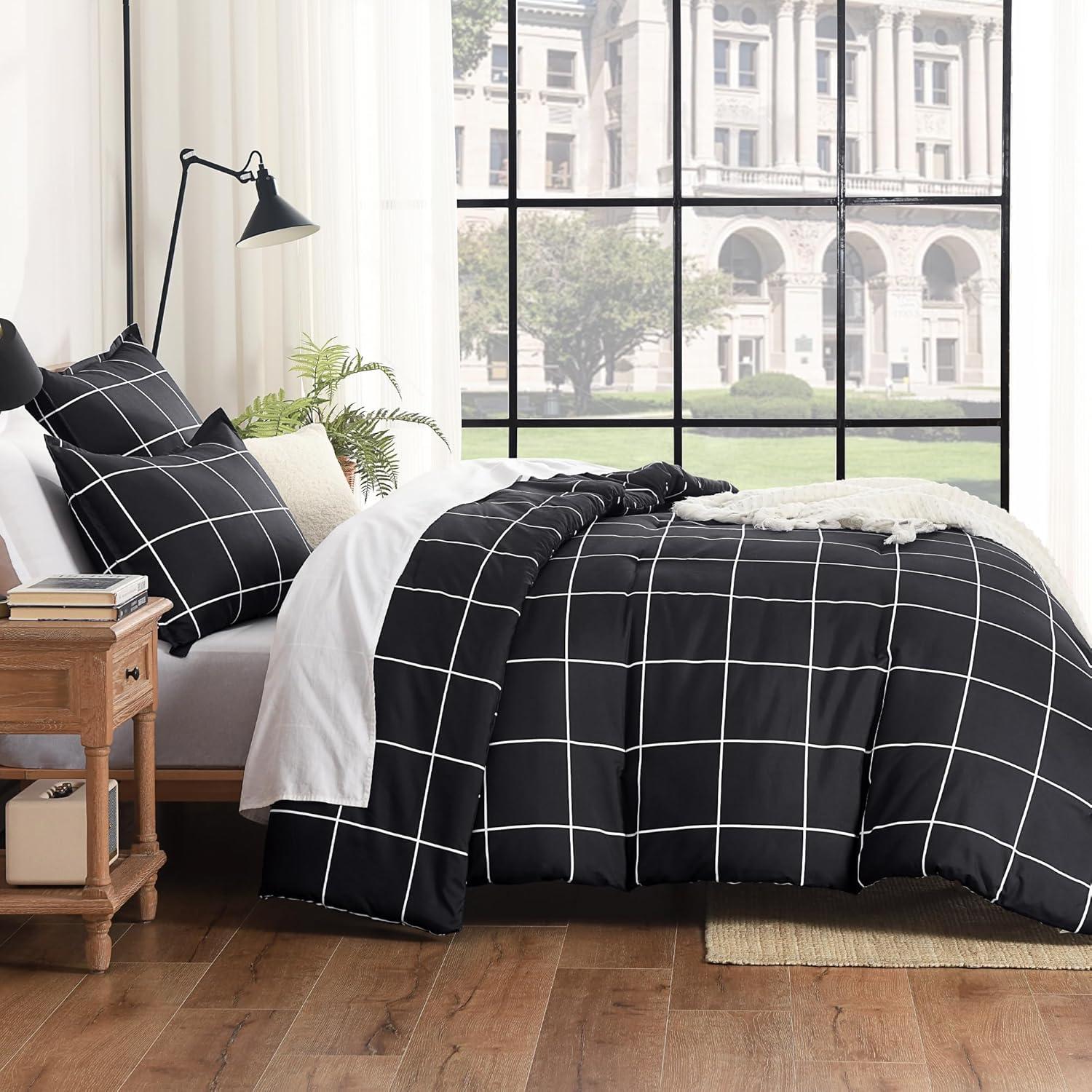 【Soft Microfiber Fabric】This gray plaid comforter set is made from high-quality microfiber, gives you the ultimate soft and cozy touch feeling, keeps you comfortable all through the night for a good and sound sleep. The microfiber comforter is all-season useable.