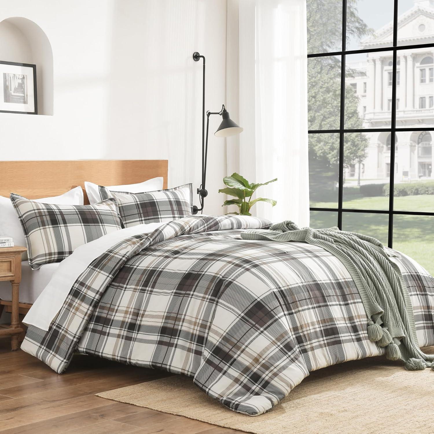 【Soft Microfiber Fabric】This gray plaid comforter set is made from high-quality microfiber, gives you the ultimate soft and cozy touch feeling, keeps you comfortable all through the night for a good and sound sleep. The microfiber comforter is all-season useable.
