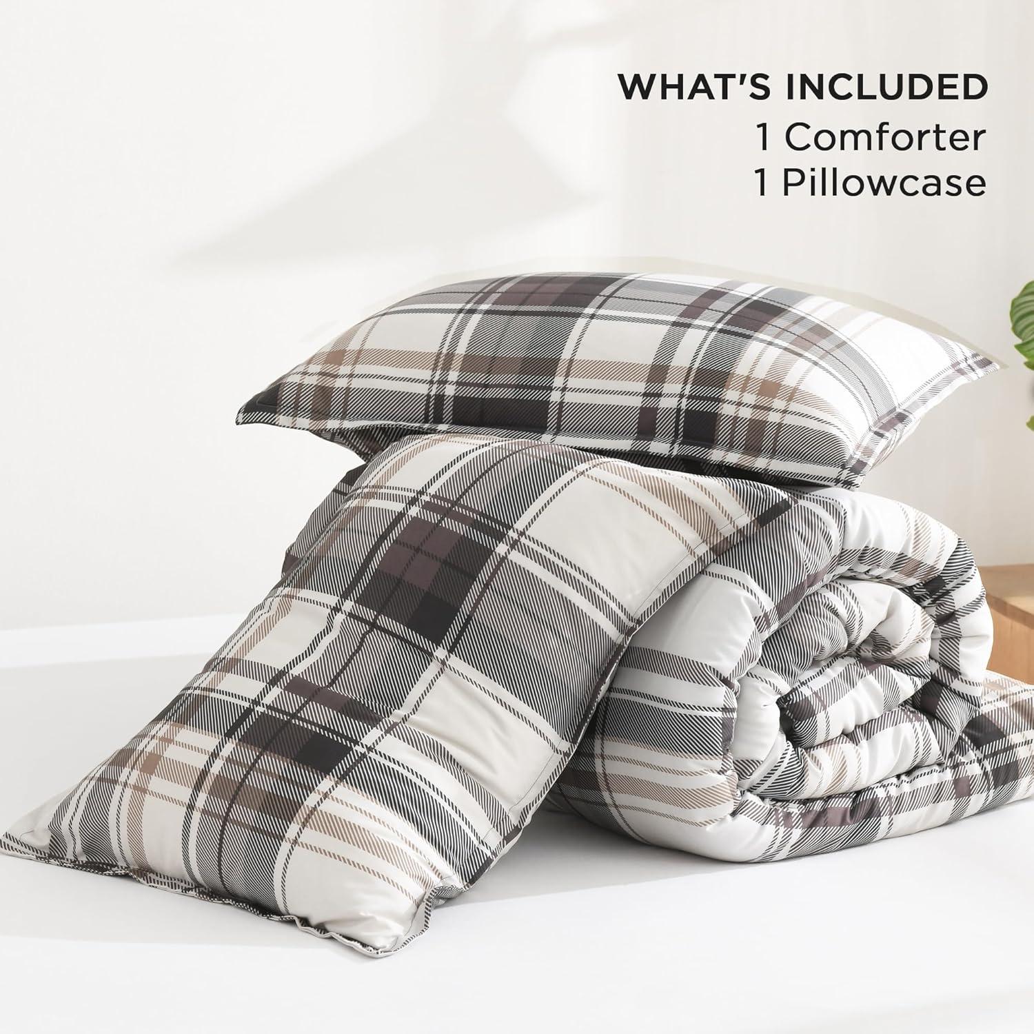 【Plaid Comforter Set】Our bedding set comes with 1 Light Gray plaid comforter and 2 pillowcases. You don't need extra cover anymore, which can save your time for change bedding covers. You can conveniently get a bedding set in one single package rather than purchasing each item separately which costs more money.