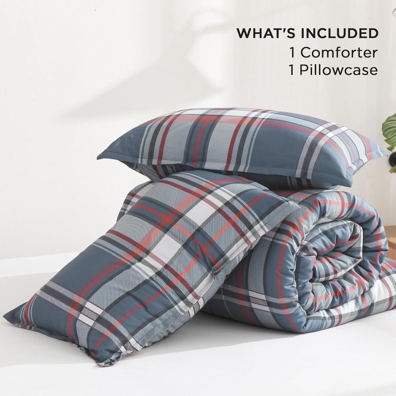 【Plaid Comforter Set】Our bedding set comes with 1 Light Gray plaid comforter and 2 pillowcases. You don't need extra cover anymore, which can save your time for change bedding covers. You can conveniently get a bedding set in one single package rather than purchasing each item separately which costs more money.