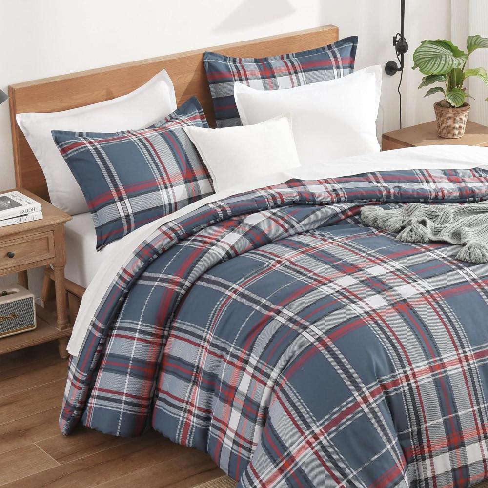 Andency Grey Queen Comforter Set, 3 Pieces Grey White Buffalo Check Plaid Bedding Comforter & Sets, Light Gray Soft Lightweight Fluffy All Season Bed Set(11 – Plaid – Navy Red)