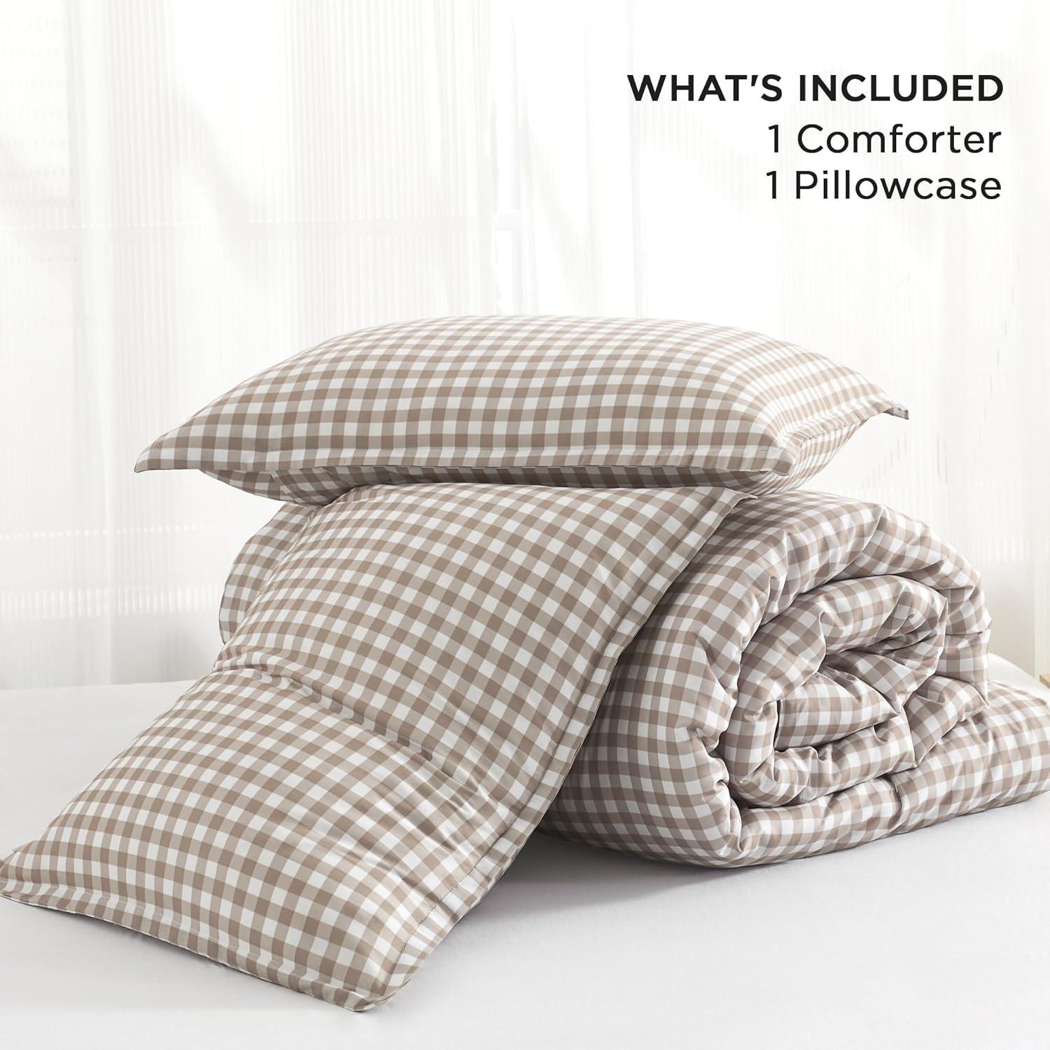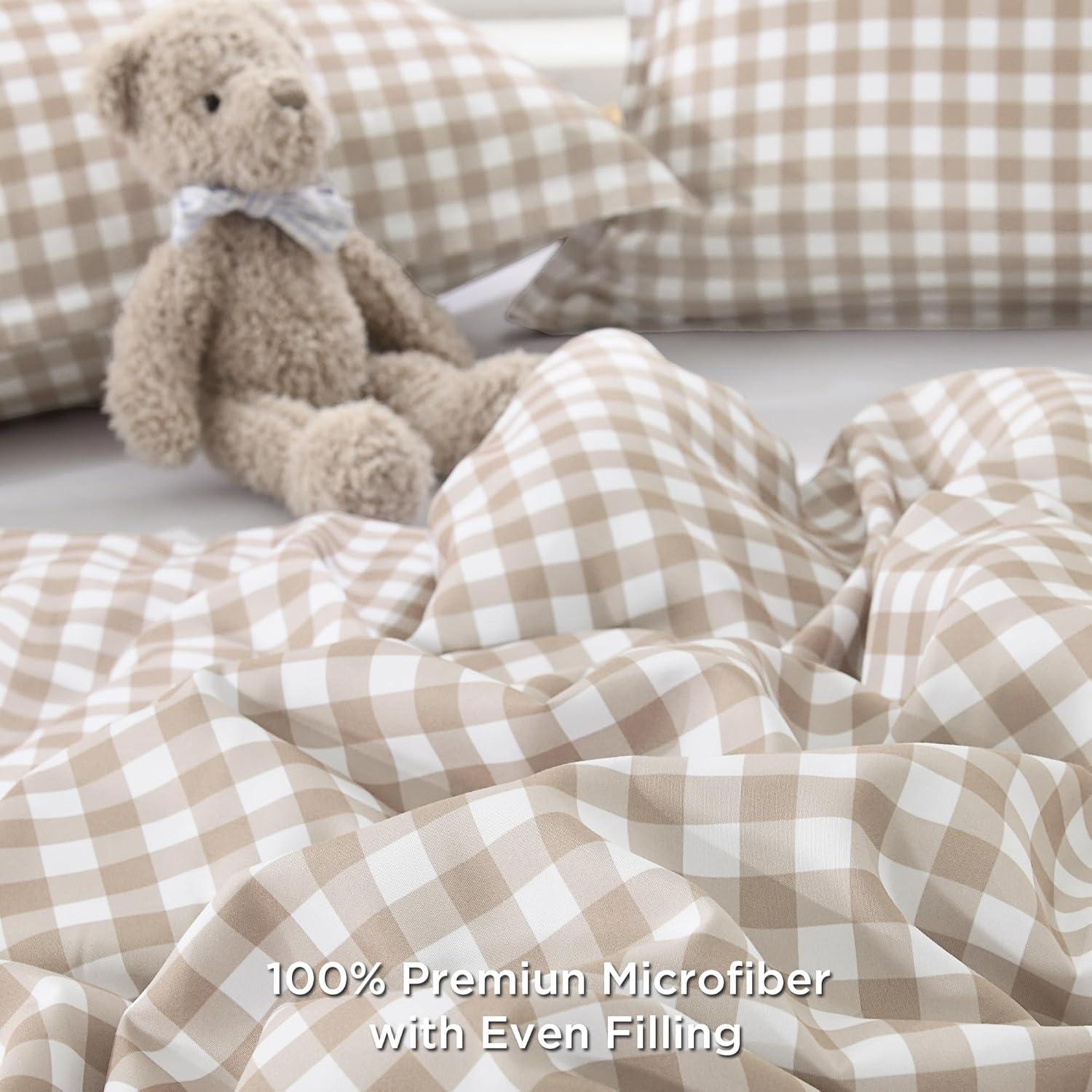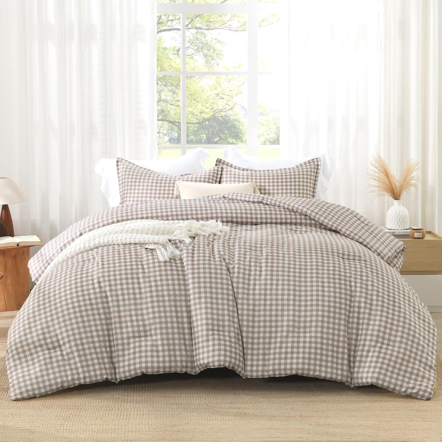 Andency Grey Queen Comforter Set, 3 Pieces Grey White Buffalo Check Plaid Bedding Comforter & Sets, Light Gray Soft Lightweight Fluffy All Season Bed Set(12 – Gingham – Tan)