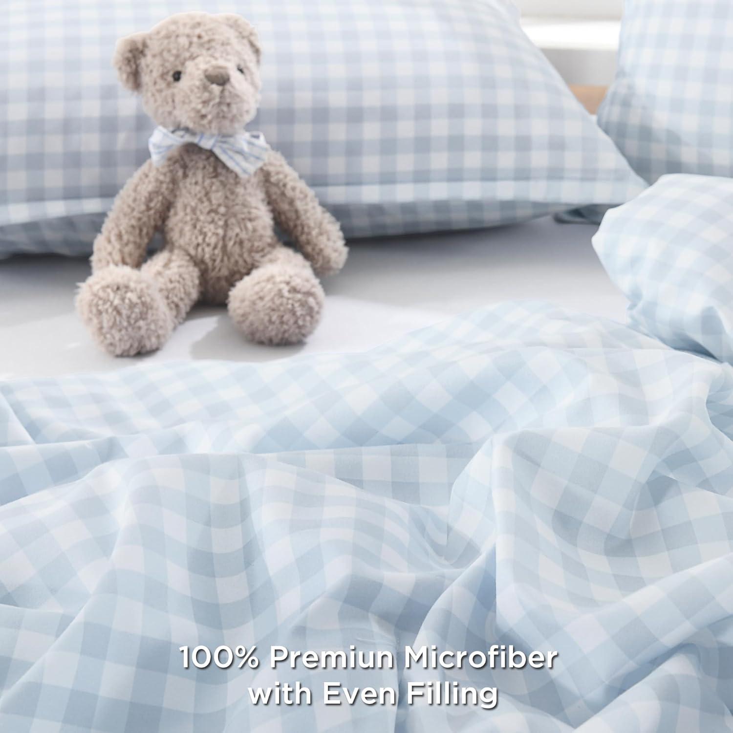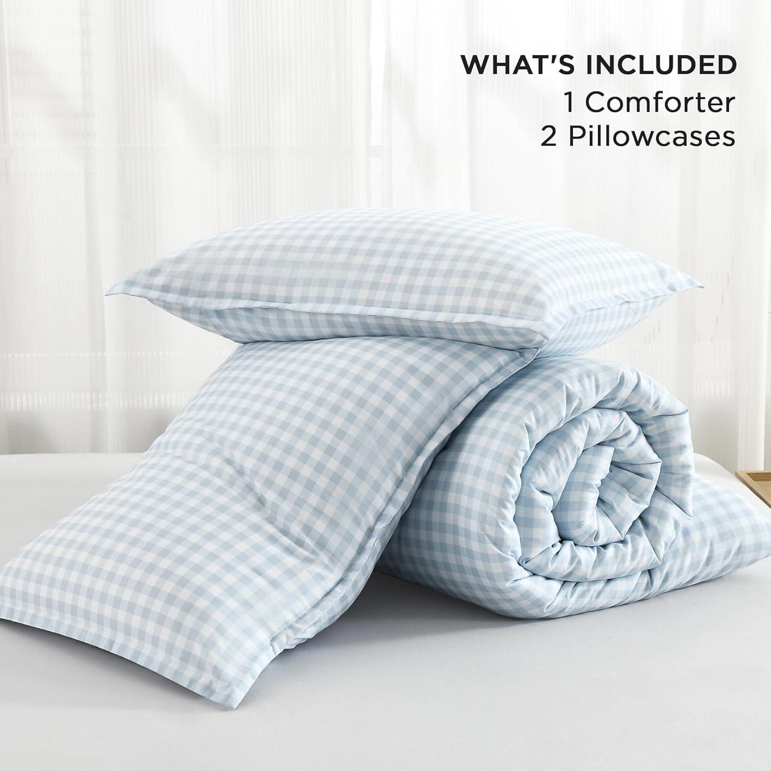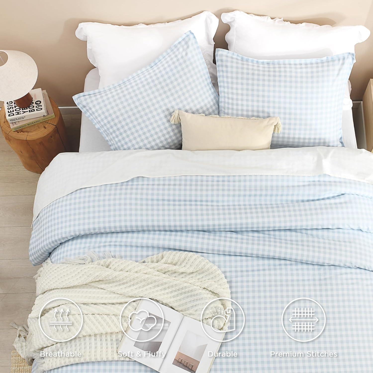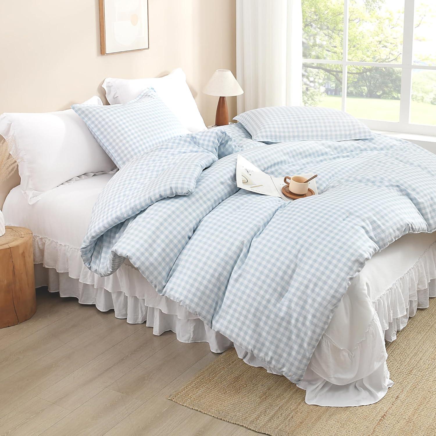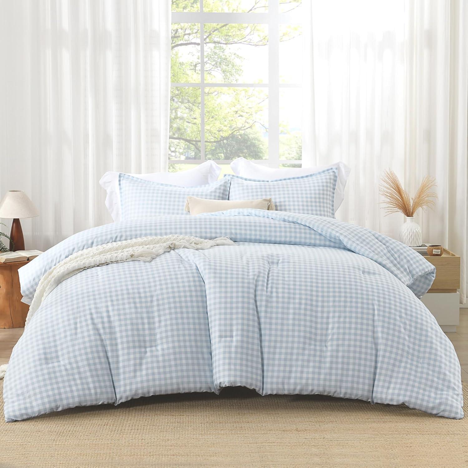 Andency Grey Queen Comforter Set, 3 Pieces Grey White Buffalo Check Plaid Bedding Comforter & Sets, Light Gray Soft Lightweight Fluffy All Season Bed Set(13 – Gingham – Blue)