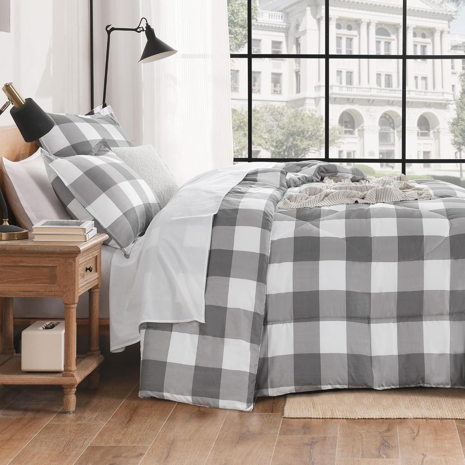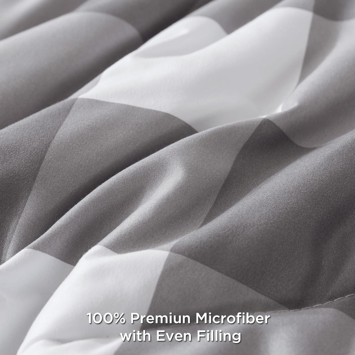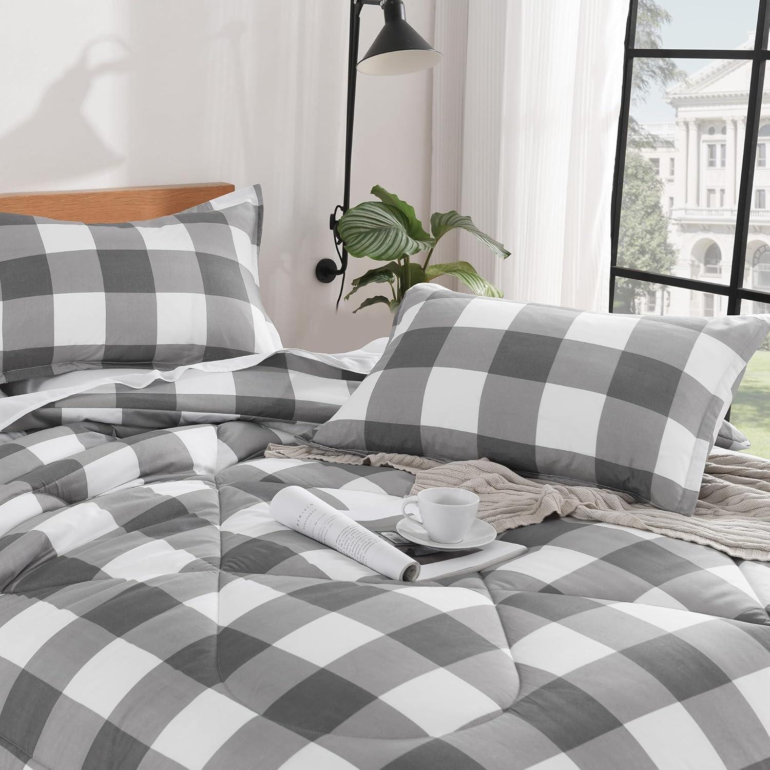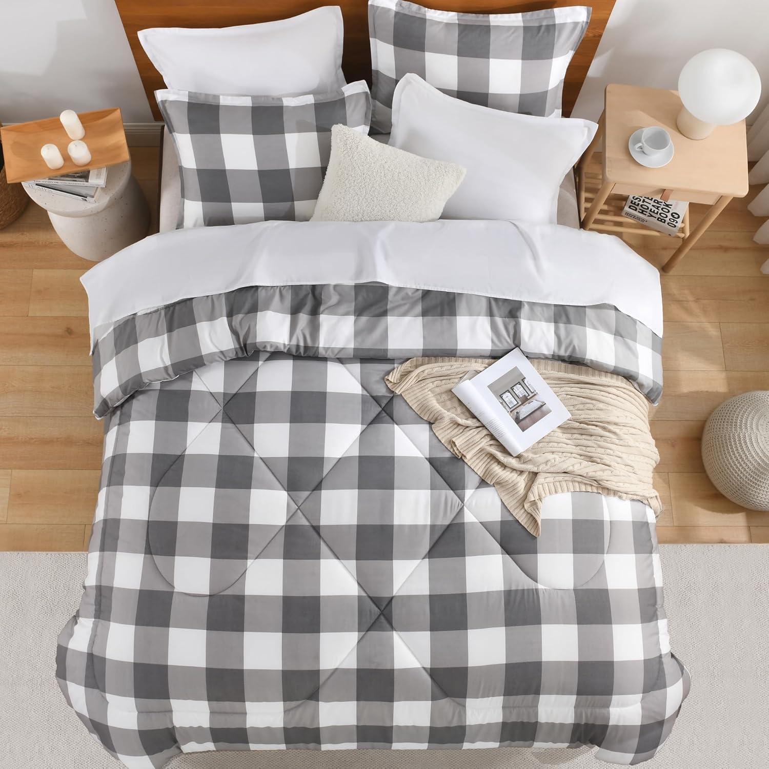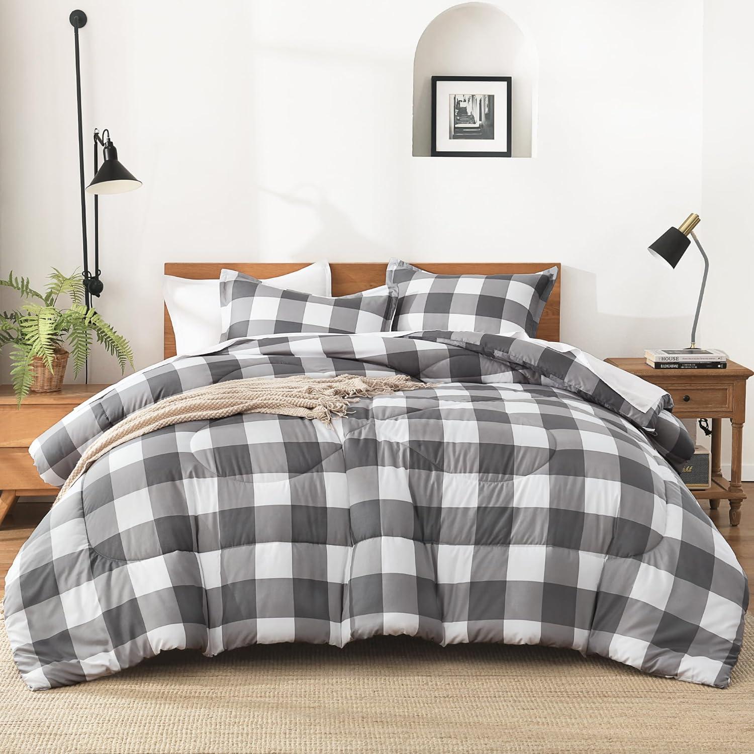 【Soft Microfiber Fabric】This gray plaid comforter set is made from high-quality microfiber, gives you the ultimate soft and cozy touch feeling, keeps you comfortable all through the night for a good and sound sleep. The microfiber comforter is all-season useable.